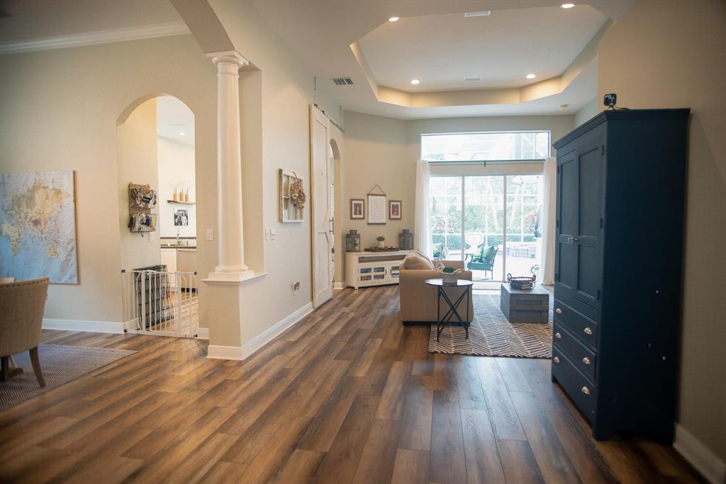 Immaculate Bordeaux Model! Move in ready 4 Bedroom 3 Bath one-story home with 2 car garage. Backyard oasis with a screened heated salt water pool and spa with custom lighting and covered patio. Split bedroom plan for privacy. Master has 2 custom walk in closets, twin sinks and roman tub. Kitchen with white cabinets, stainless steel appliances, granite countertops and breakfast bar overlooking the family room and pool area. Newly painted inside and outside. Updated hurricane rated front door. Saturnia is an upscale community with amenities that include a manned-gated entrance, resort style pool, tennis courts, modern clubhouse, fitness center and children's playground. Don't miss out on this beautiful property!
