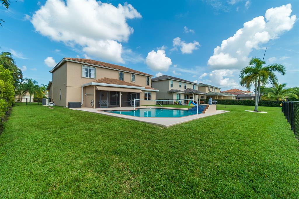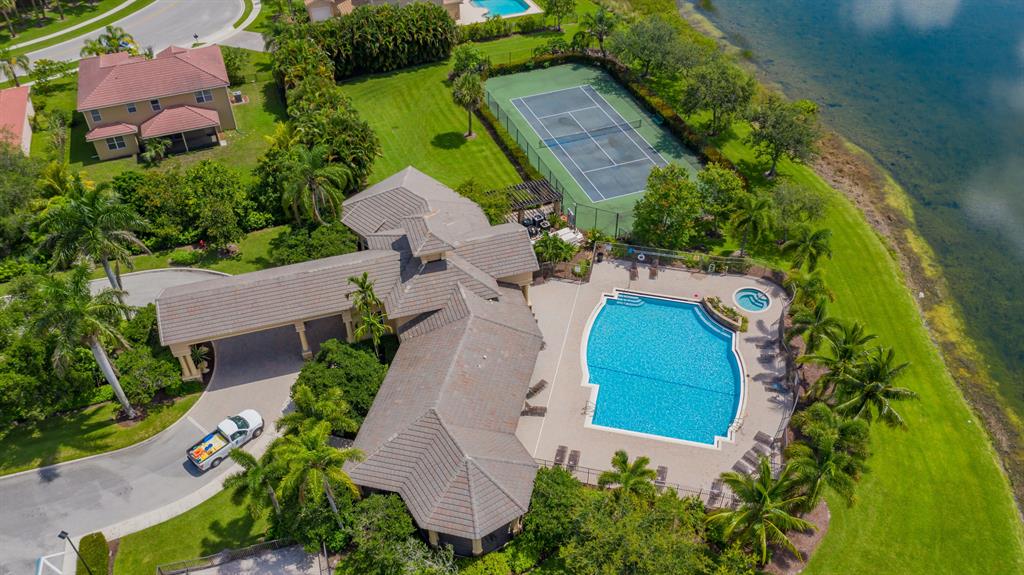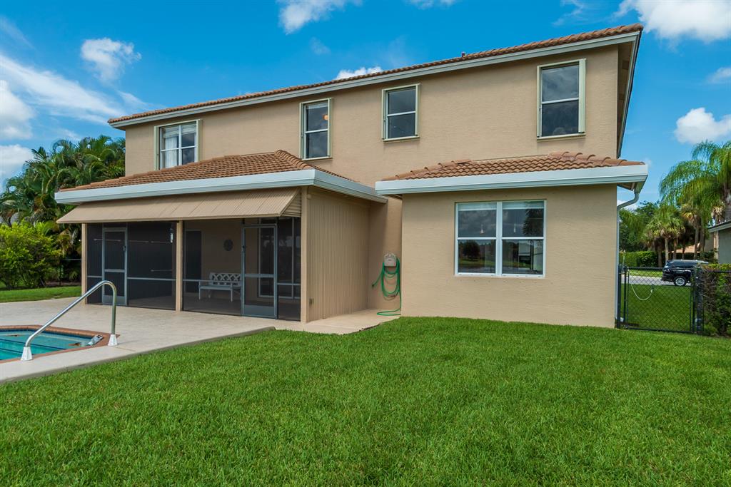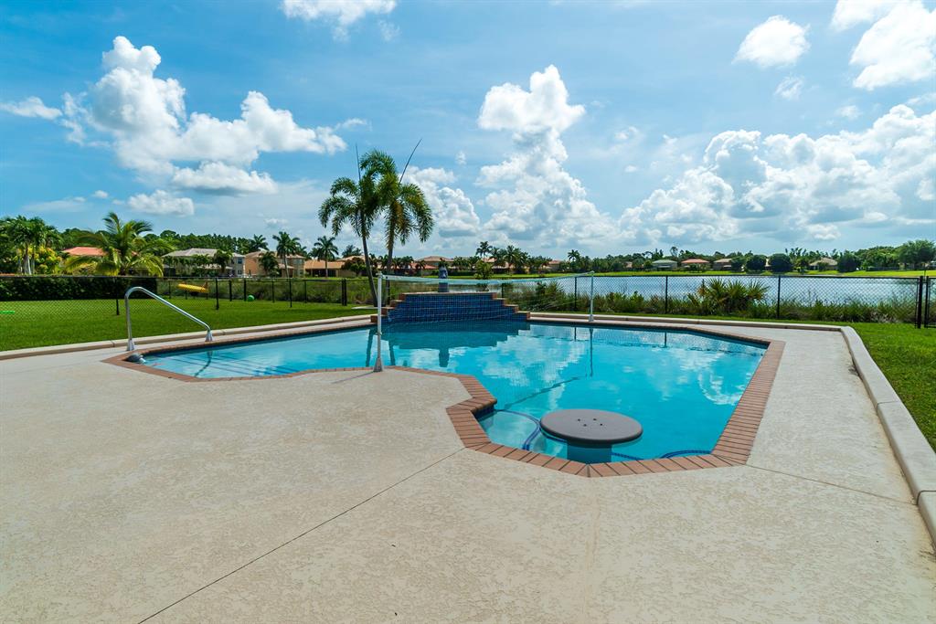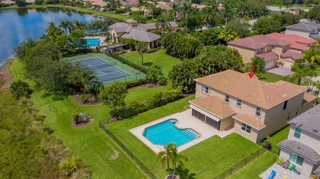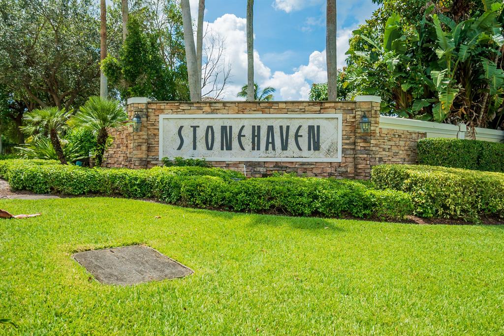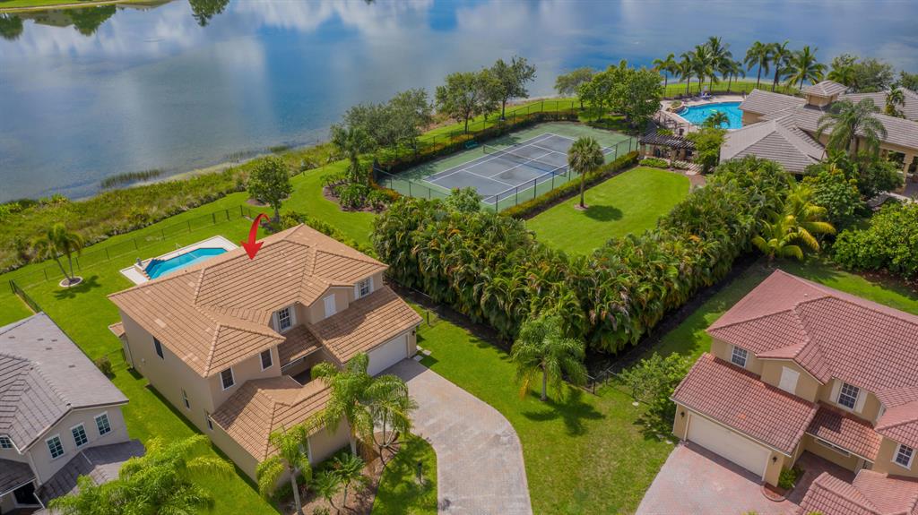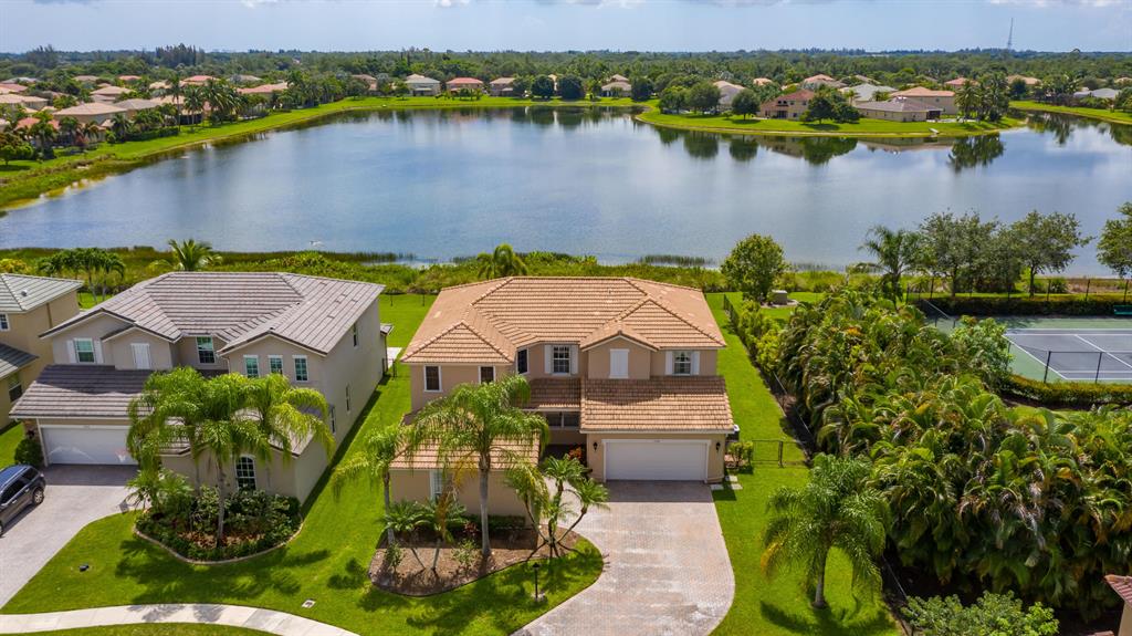 One of a kind 5/3/3 home with spectacular lake views, located in the manned gated community of Stonehaven. Enjoy this tropical paradise with a large pool, nice sized fenced-in backyard and covered screened patio. Come inside and enjoy the spacious design with 20 ft high ceilings, oversized kitchen and large master bedroom. There is a guest suite on the first floor for added convenience. Property sits on a very unique lot with a long driveway and just steps away from the tennis courts and the club house. Stonehaven is located close to shops, medical facilities, and restaurants. It is minutes away from the beach and Palm Beach International airport. Measurements are approximate. All information deemed reliable but not guaranteed.