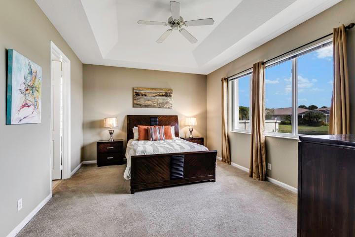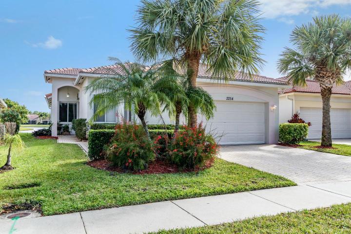 Water, water everywhere. You deserve breathtaking water views & sunrises--- and this is it. Move-in ready, this 3 BR/2 bath/2 car garage CBS home has accordion shutters for hurricane protection, newer AC/HVAC unit, hot water heater, water filtration system, generator hook up to electric panel, newer washer, dryer, fridge, range, microwave + dishwasher. HOA includes premium cable, high speed internet, lawn care, pest control, security system + more. Baywinds is *PET-FRIENDLY* + resort-like without costly memberships; if you're wanting an instant social life, there are constant events in the clubhouse. Enjoy 6 tennis courts, 3 heated pools, ballroom, arts/crafts, fitness classes + close to PBI airport, shopping, golfing, beaches, restaurants, medical facilities + parks. Call today!