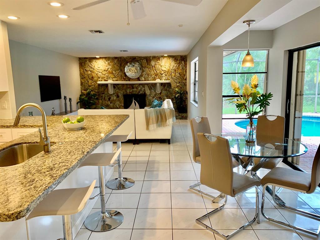 Beautifully updated/renovated 4 bedroom and 2 bath home in central Boca Raton! 1 year old tile barrel roof! Updated open kitchen with views of pool and patio. Newer baths with access to pool area. Family room with wood burning fireplace! Huge laundry room with plenty storage! 2 car garage! Storm shutters! Lovely gated community with tennis and play area, small park, private street! Wonderful central Boca location, close to all the best shopping district in Boca and major roadways. Good schools! Must be seen.