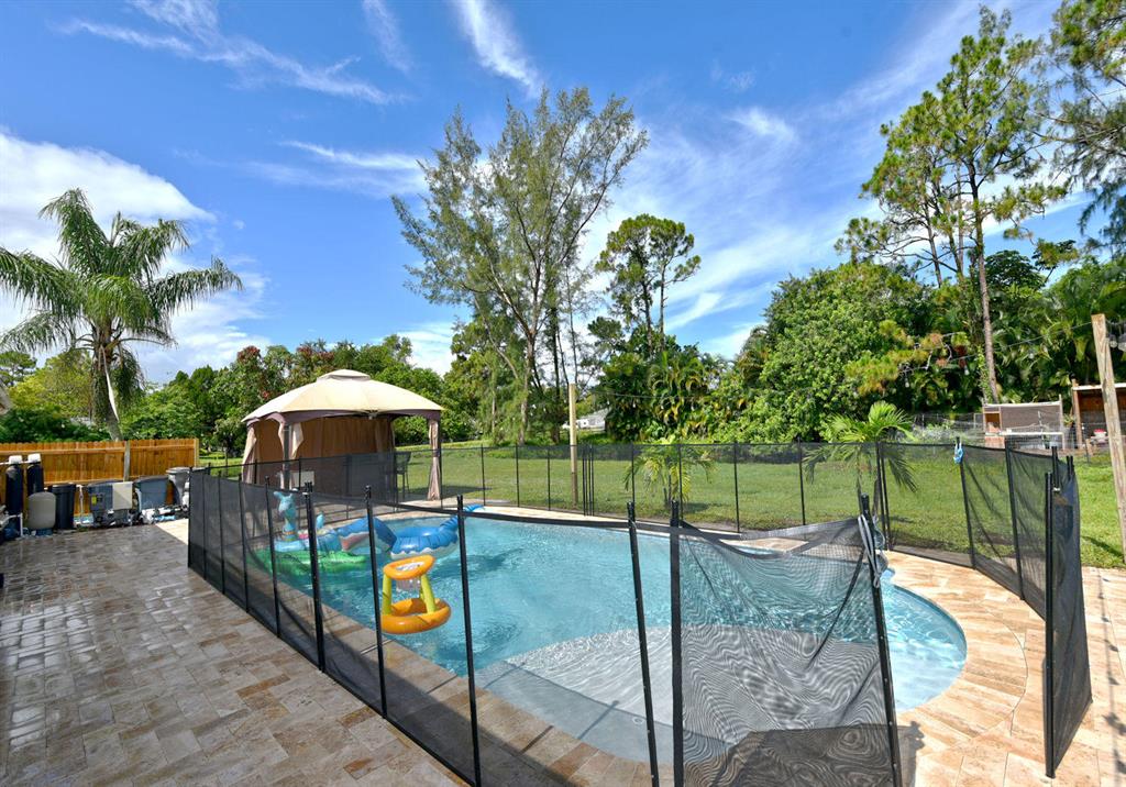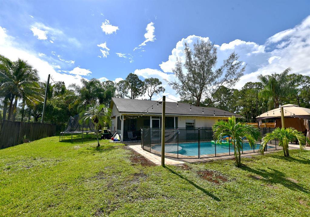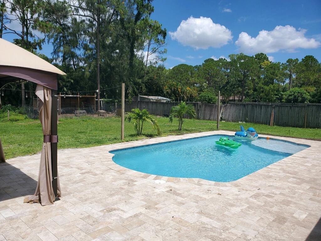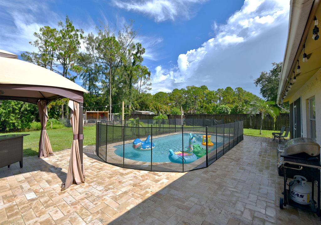 4/2 CBS home with gorgeous new salt water pool and paver deck located on a fully fenced lot on a paved road. Inviting open kitchen done in 2-14-2015 has SS appliances, granite counters and LED recessed lighting. Tile flooring throughout. AC 2017. Alarm system. Screened in patio. Pond. Newly completed expanded drain field. Plenty of room to bring boats, RV's, pets etc.