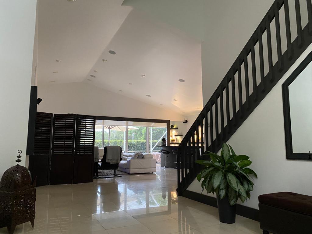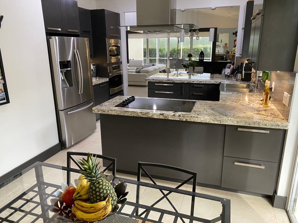 Very desirable home in BOCA POINTE. Totally renovated. Contemporary finishes. Modern kitchen with stainless steel appliances, custom cabinets and granite counters. Wet bar. Surround system, Beautiful golf view. Master bedroom downstairs. Bedroom/study downstairs plus bathroom. Two bedrooms upstairs with J&J bathroom. Custom closets and doors. New garage door (remote/cellphone operated). Marble and laminated flooring throughout. Electric roll-down shutters. Brand new exterior paint 06/2020 Country club membership available but not mandatory. THIS IS A MUST SEE! BRING THE OFFERS!!