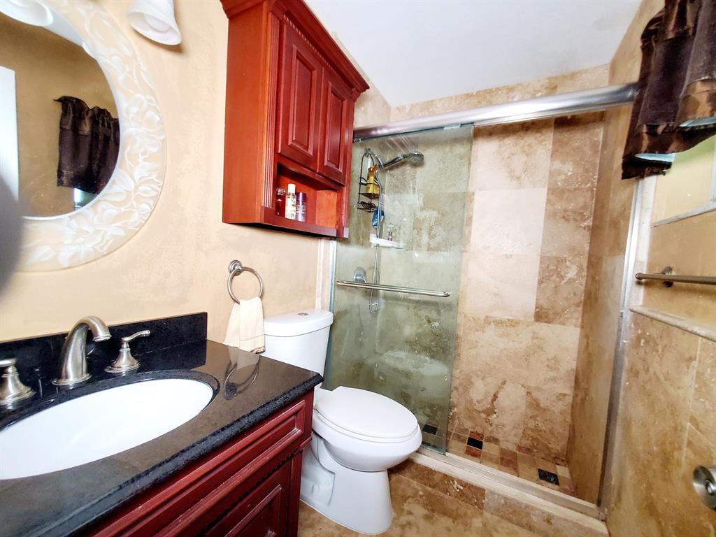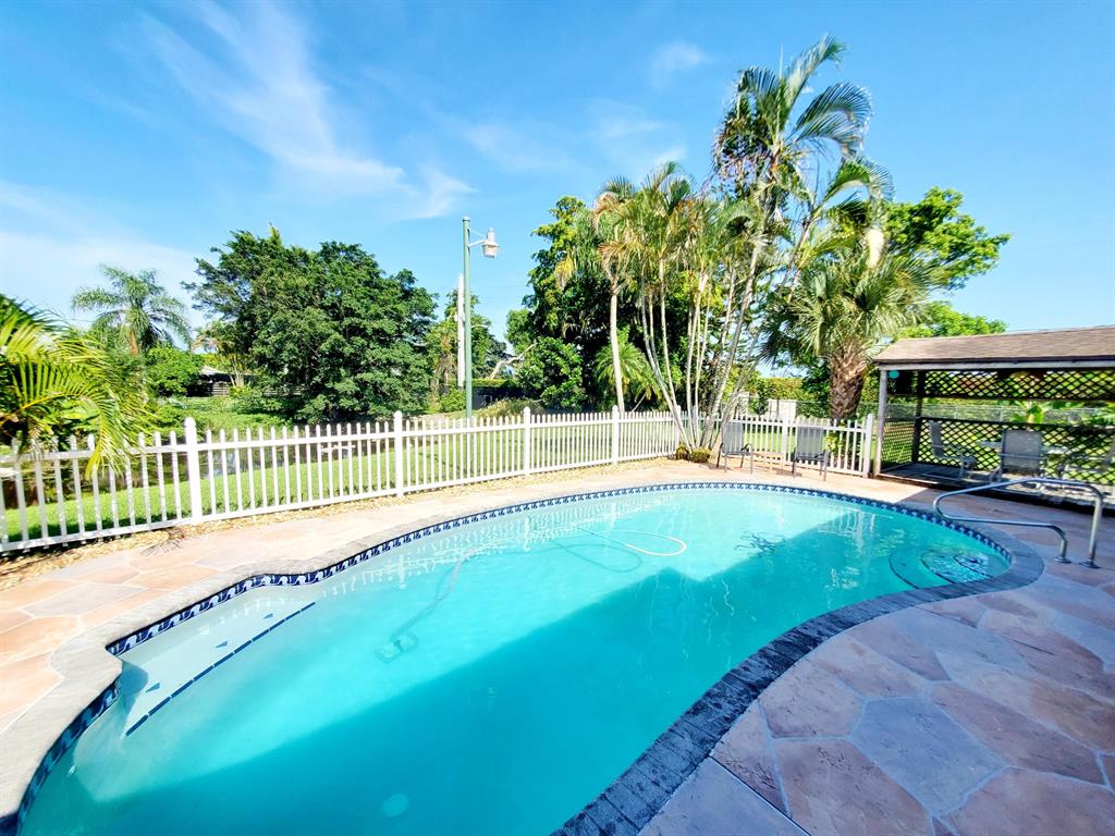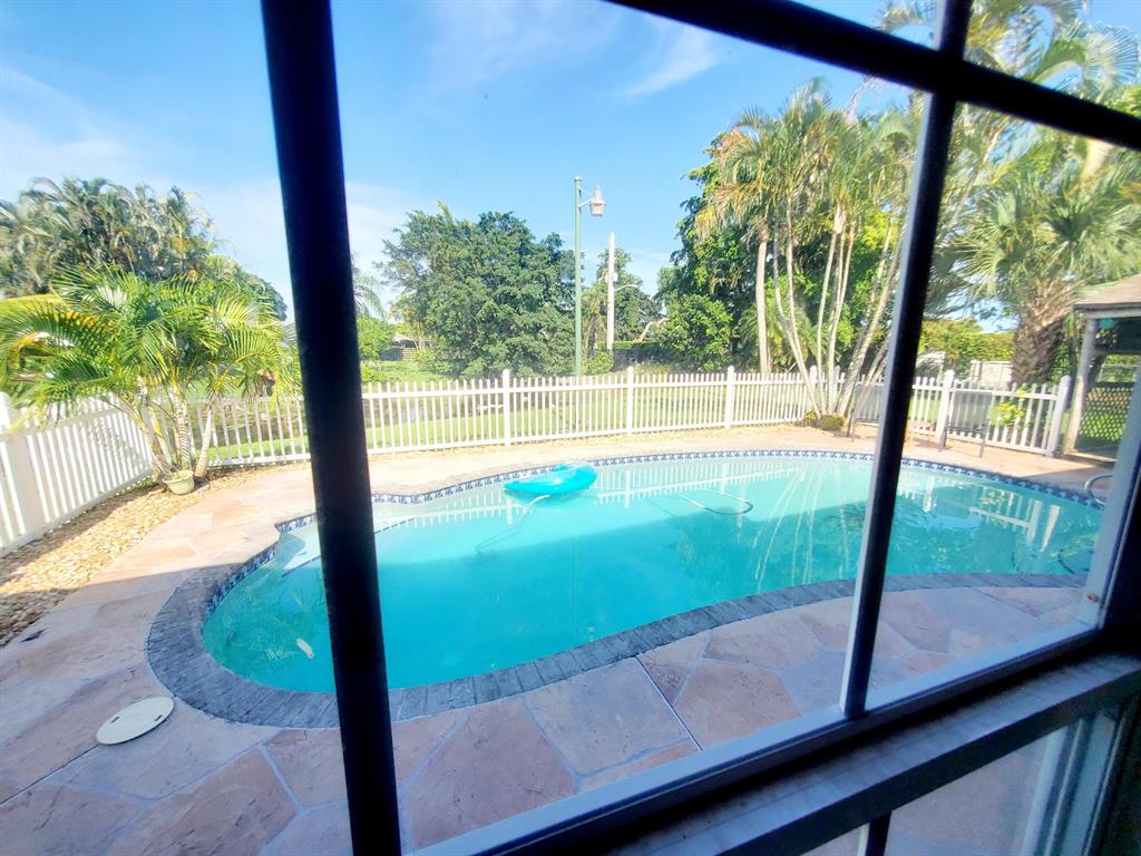 Private pool retreat in the heart of Boca! Move in ready home, in a quiet neighborhood, and just in time for school. This stunning house located on a cul-de-sac, boasts a pool side retreat with a totally private back yard, on the water, with no neighbors behind you! Open floor plan with 3 bedrooms and 2 full baths, and well as large family room over looking the pool and screened sunroom, and full-size patio situated on a 1/4 acre lot. Marble floors throughout the common area and the bedrooms have wood. Bathrooms have been updated with marble and new fixtures. Kitchen is real wood with granite counters and black appliances. Large living room that has plenty of room for your big screen TV and sectional couch. Extra-large pool with a fenced yard, overlooking the water, and lots of trees with