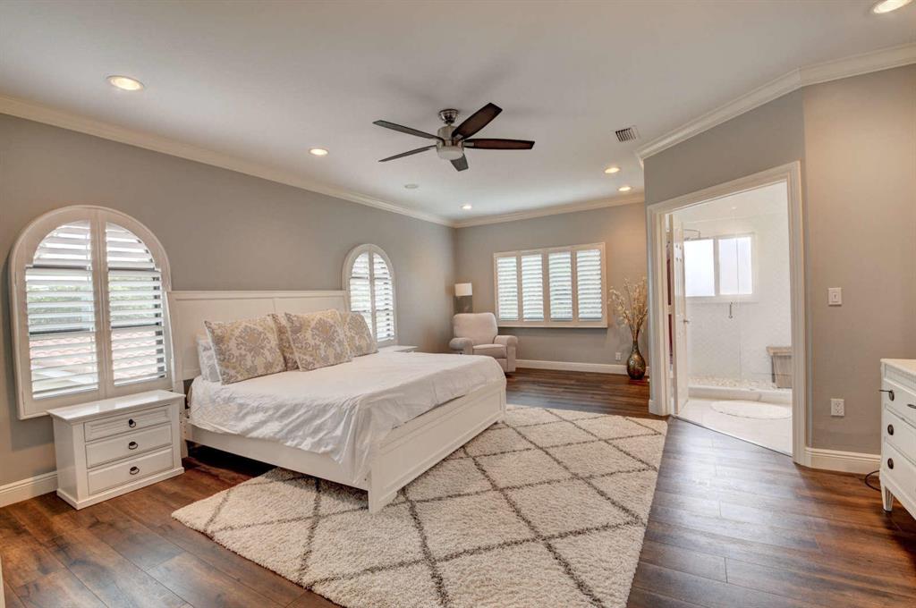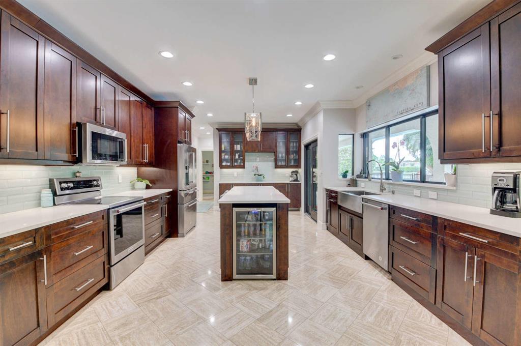 Gorgeous fully updated 4/4 corner lot in the highly sought after neighborhood of New Floresta. You'll love the open floor plan, separate office plus bonus room with views of the resort-style pool, jacuzzi and adjacent serene pond. The expansive kitchen boasts a huge island, added bar fridge, and a large pull out pantry. Upscale details abound in this beautiful home including marble floors, hurricane windows and doors, crown molding, new salt water pool system, and a brand new master bath. Enjoy the convenience of ensuite bathrooms, walk-in closets and an abundance of natural light. Outside the covered patio is truly an oasis with lush tropical plants, a large side yard, mature fruit trees, and a 12'' privacy ficus fence. A+ rated schools and easy access to I-95 & Turnpike.