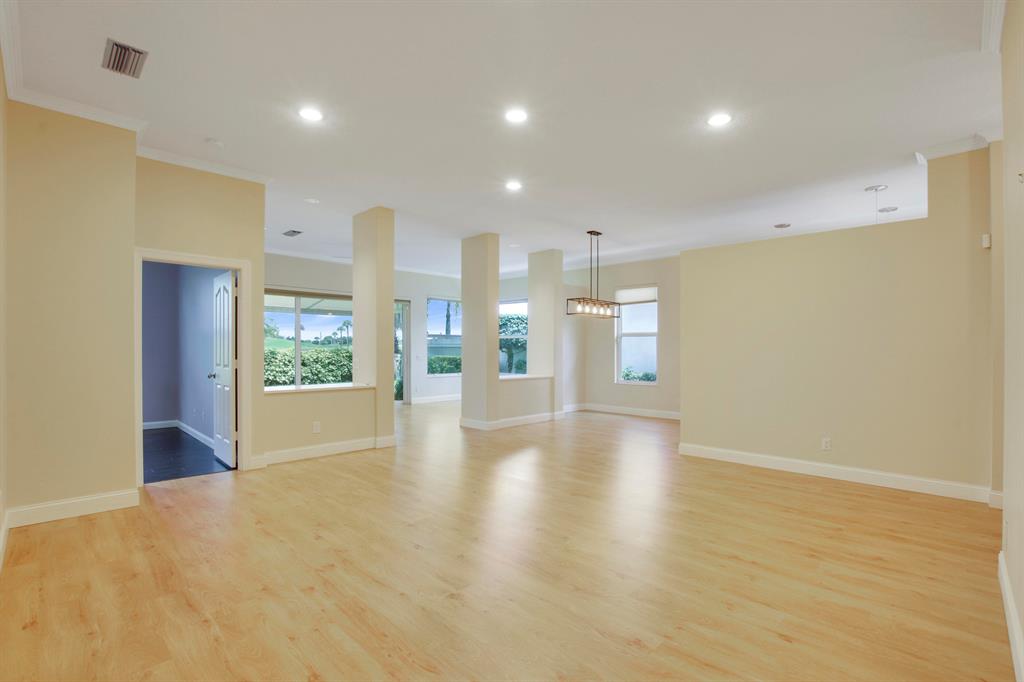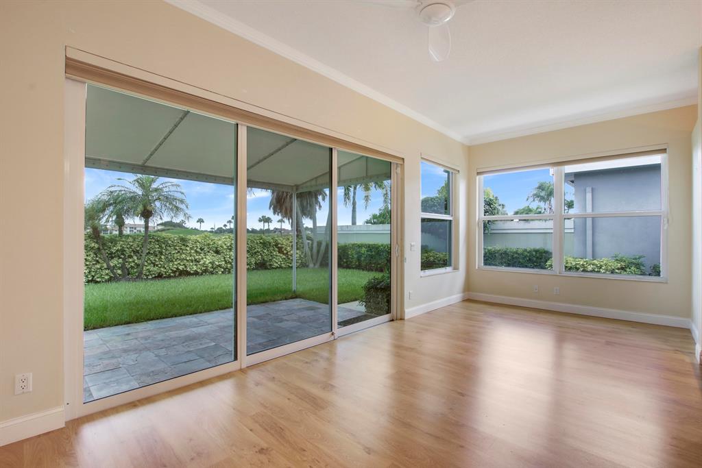 TOTALLY Remodeled home with all IMPACT glass through out , new custom wood cabinetry, crown molding, gorgeous high gloss porcelain and wood flooring througout, Gormet Kitchen with granite counters and all new appliances.. The Hampton model offers an open concept floor plan with a family room, living area, dining room. master bedroom, built in his and her closets, large master bath with walk in shower, separate tub, and 2 car garage. New A/C and newer roof. Outdoor awning covered patio overlooking the golf course with westerly exposure. No Mandatory membership!! Bear Island is a 24 HR manned/ gated community with a superb location near the airport, beaches, downtown WPB,, whole foods, outlet malls , Only 227 homes in the community with access to 3 parks, 2 pools, tennis , ect.