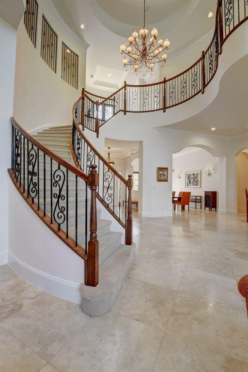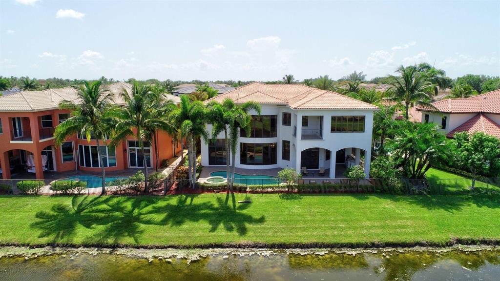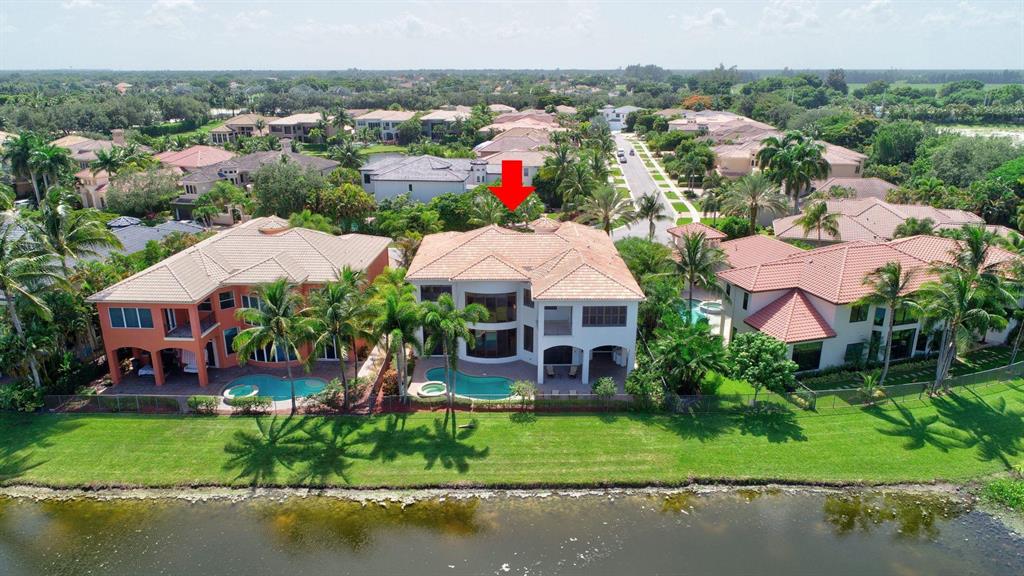 Breathtaking 6 BD/5 BA/2 HB + office home with an idyllic pool and lakeview. Each bedroom has an ensuite bath. Enough space for everyone! First story has a gas fireplace; a full wet bar great for entertaining with a beverage refrigerator and sink; the office with beautiful hardwood floors; and 2 of the 6 bedrooms, one of which has a cabana bath. The kitchen is furnished with two ovens, a gas stove with 5 burners, plenty of storage, breakfast nook and desk space.The second story has two lofts that overlook the living room. Space for a second washer and dryer hookup. Currently set up as a media room, the first of the four upstairs bedrooms has a sitting area or bar and an en-suite half bath.