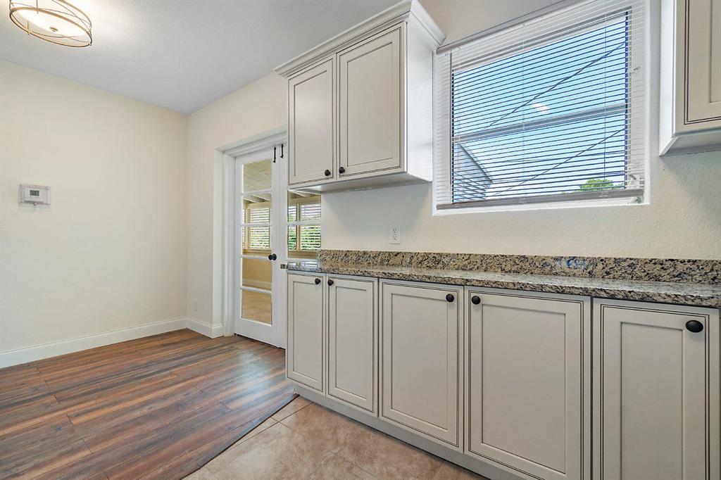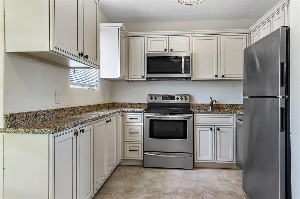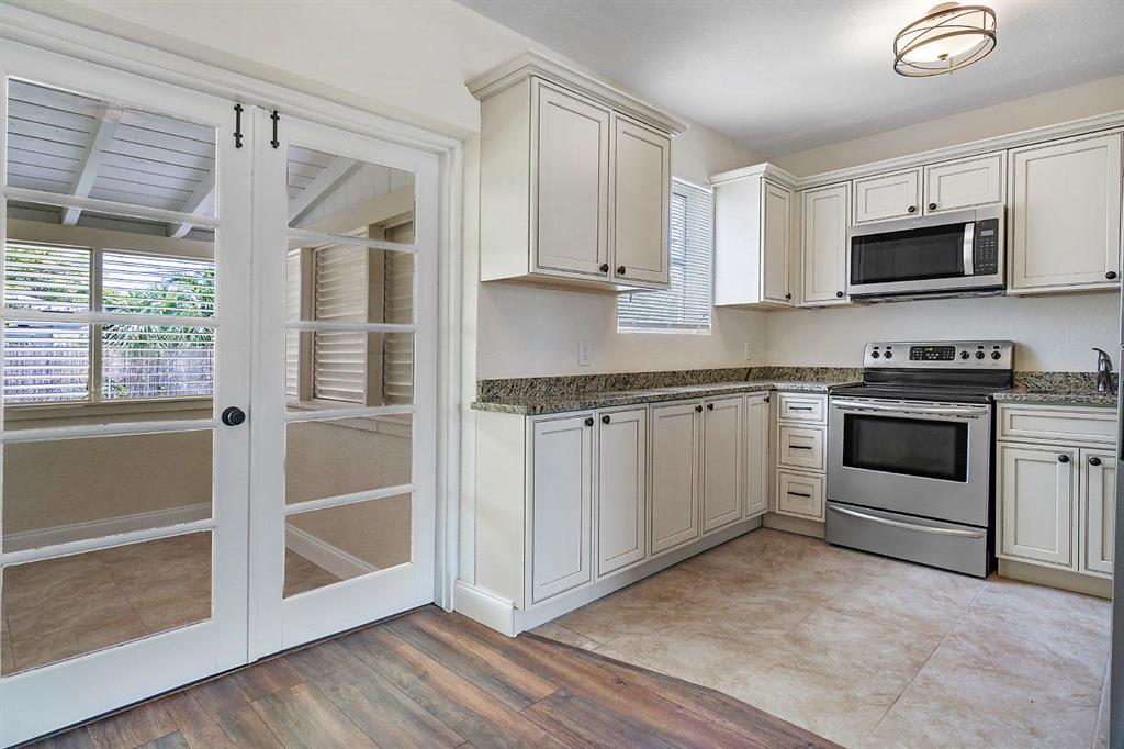 Quaint two bedroom 1 bath renovated home with updated kitchen and bathroom. New flooring throughout. Kitchen has cream cabinets, granite counter tops and stainless steel appliances, which opens to large porch. One car garage and private yard. Great starter home!