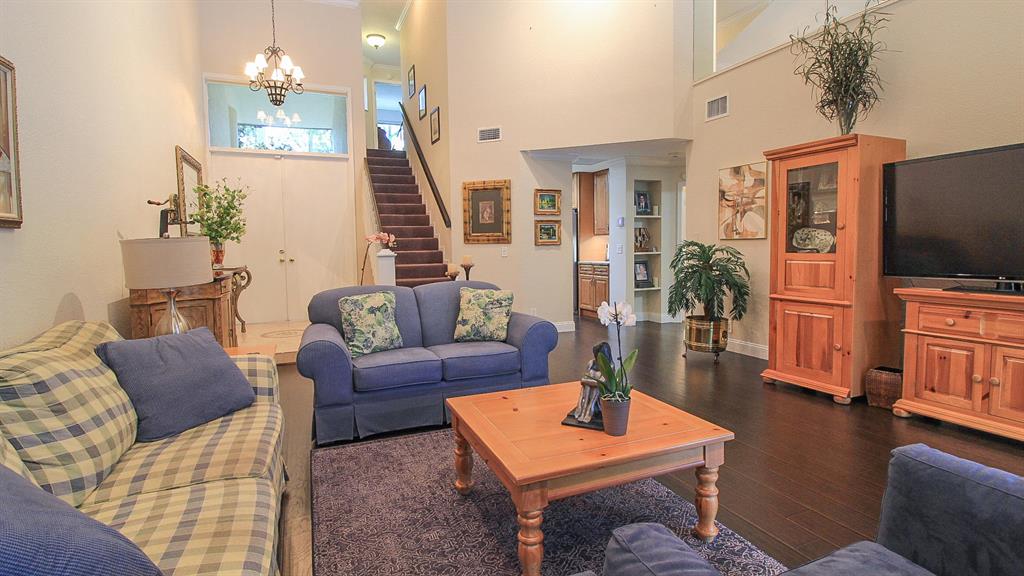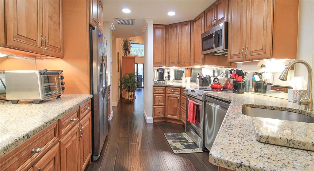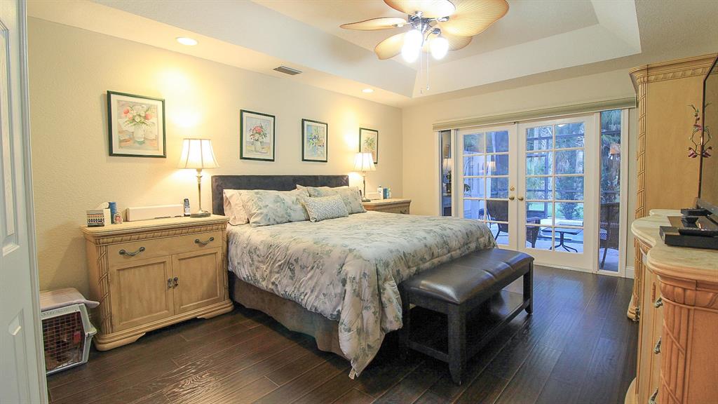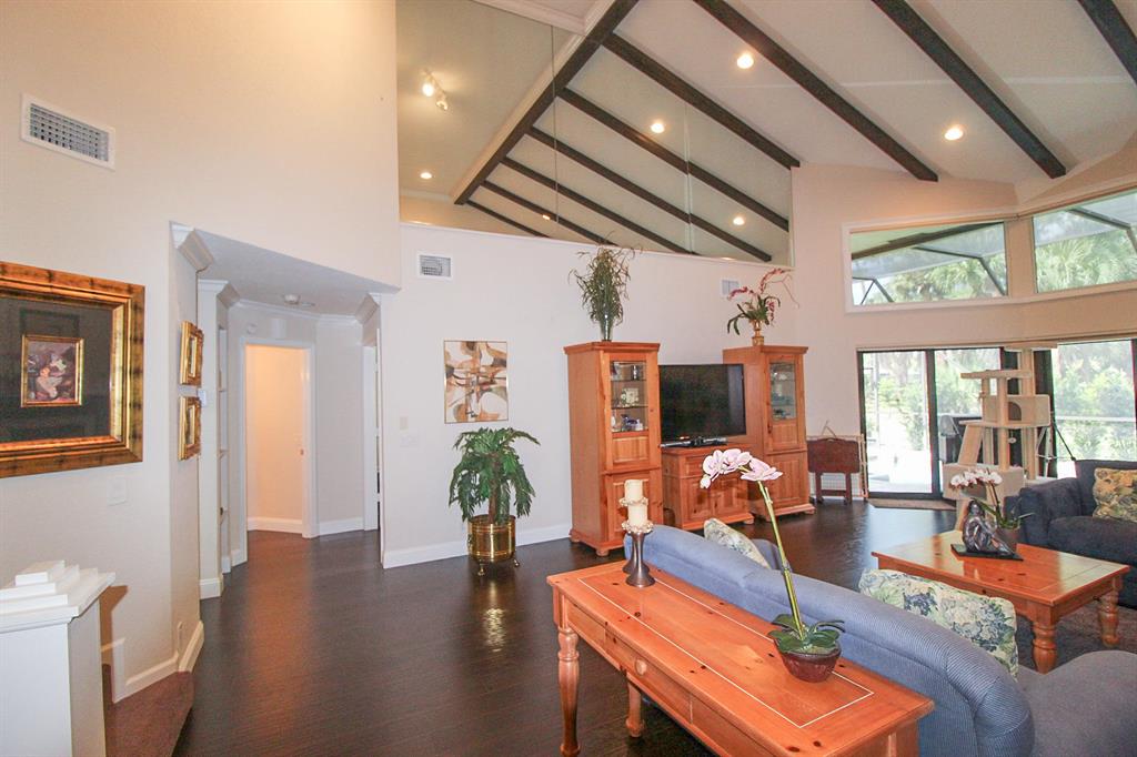 Luxurious Villa featuring expansive green spaces, and a screened, heated pool! 3 Bedrooms 2.5 Baths with 2 Car Garage! Master Suite is on the first floor and features walk-in closets, and dressing area. Plus Master features French doors out to the pool! Luxurious Master Bath! Remodeled with top-notch upgrades and finishes, including Granite Eat-in Kitchen with Stainless Steel Appliance package, gorgeous wood cabinetry, and under cabinet light to accent! Spacious Living areas featuring soaring ceilings w/crown molding and decorative accents! Wood laminate flooring. Mirrored Wall accents. Solar Tint on the windows. New gutters all around. Newer A/C, Newer Water Heater, New pool Pump. Working fireplace accented with Marble tile, & a granite mantle! Clever Motorized Blinds on remote! (cont)