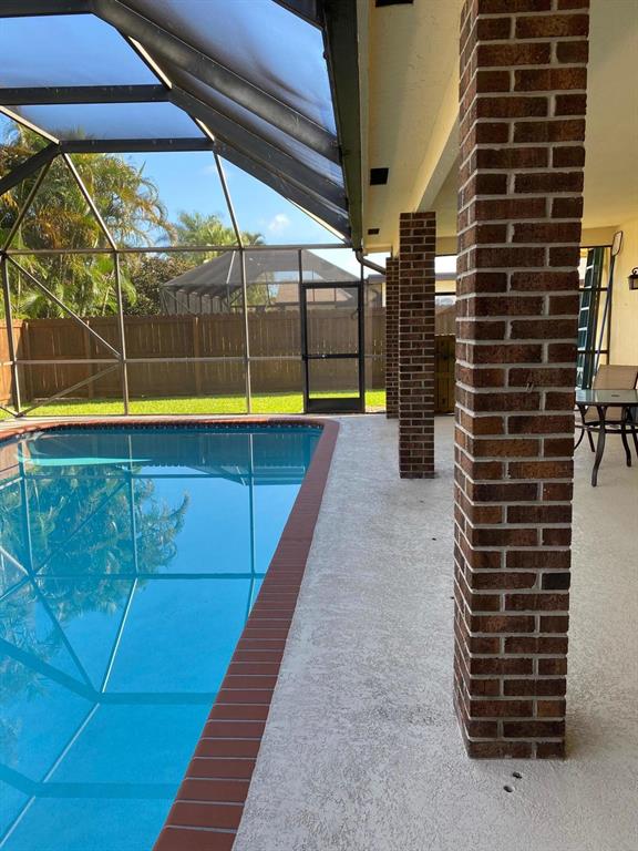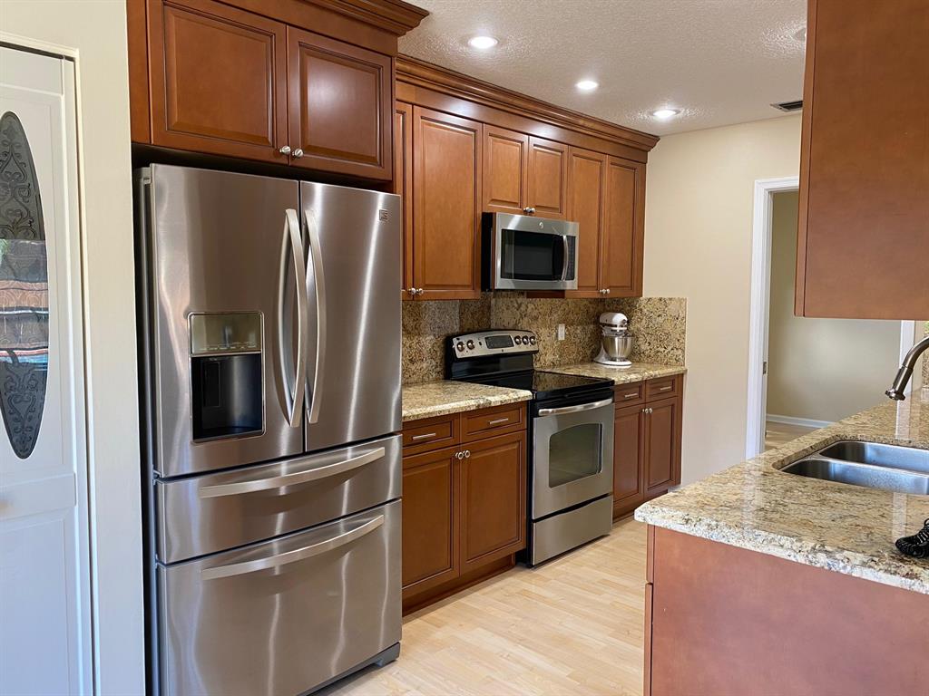 Perfectly located and updated 3 bedroom 2 bath 2 car garage residence with private screened pool and large covered patio. Updated stunning kitchen with granite countertops, S/S appliances and full-size pantry. Spacious and bright open floorplan with large family room and gorgeous light maple flooring throughout. Roof new in 2018. Hurricane impact windows. Generous closet space. No carpet and no popcorn. Pool and Kool decking renovated in 2019. Upgraded paved driveway, hurricane garage door, A/C, Water Heater and solar pool heater. Fenced yard with custom gates. 8'x8' Deck off kitchen. Gutters new in 2019. Lush landscaping with mature shade trees and tropical plants including plantain tree. Hurricane panels for sliding doors and impact windows. Low HOA, security patrol and A-rated schools.