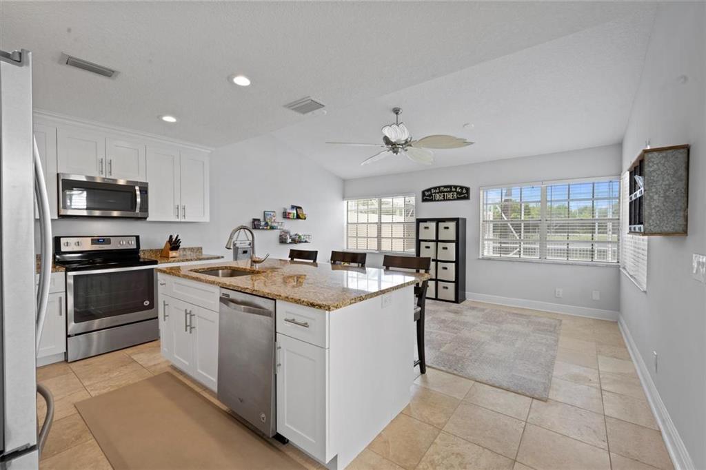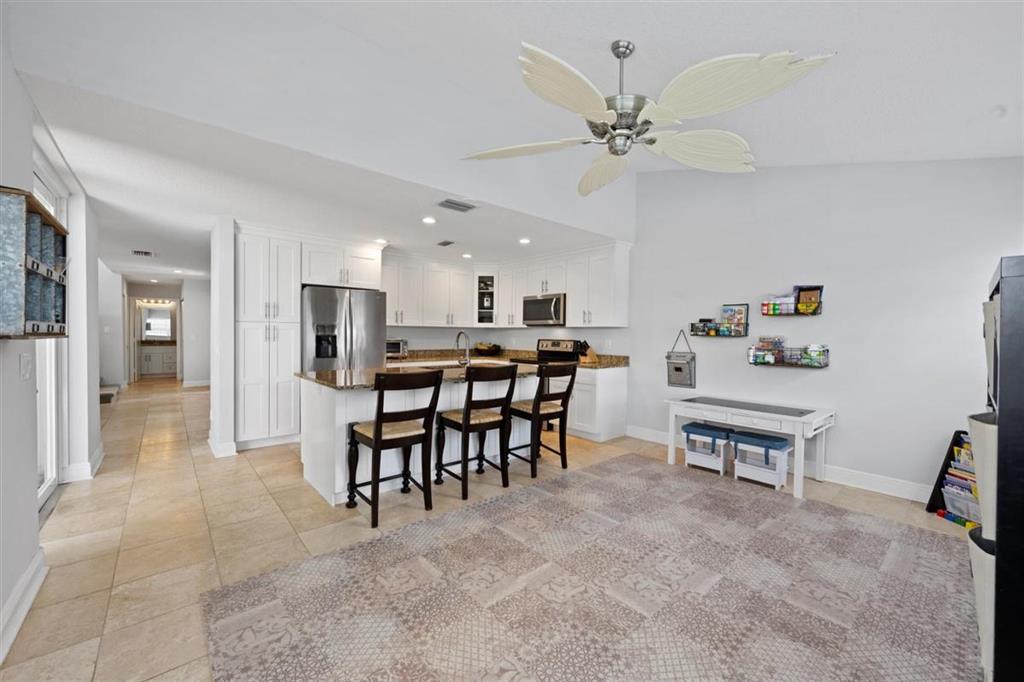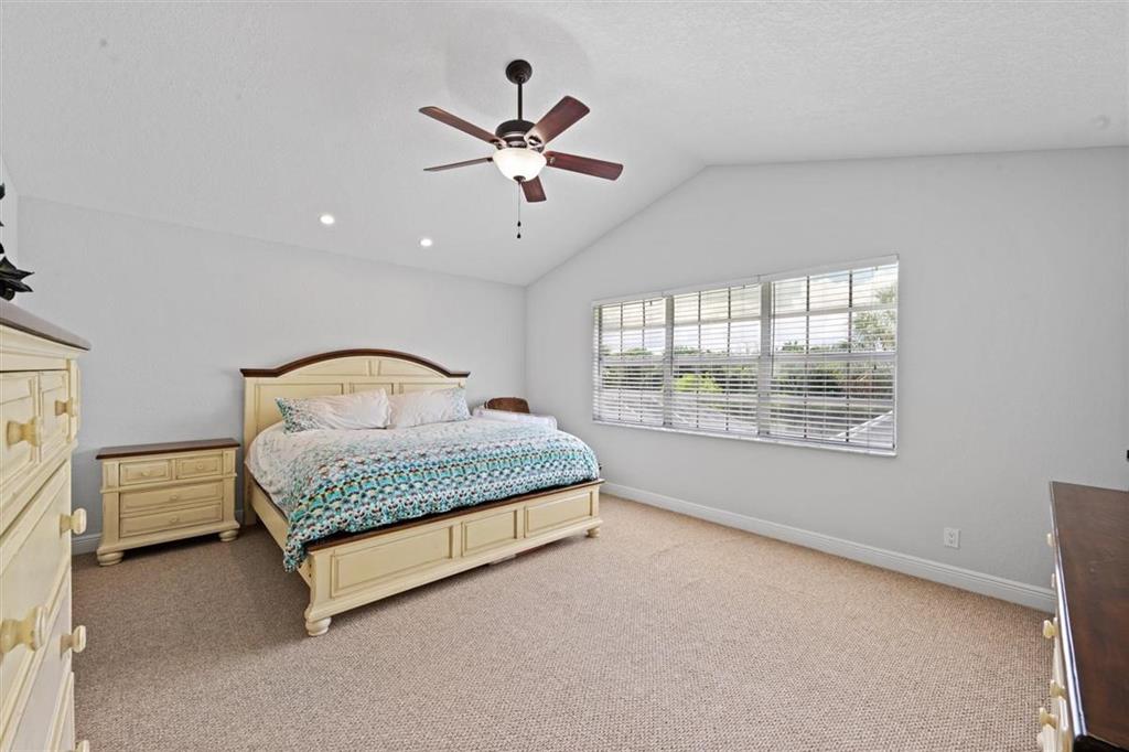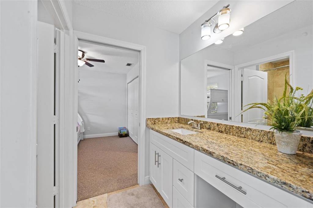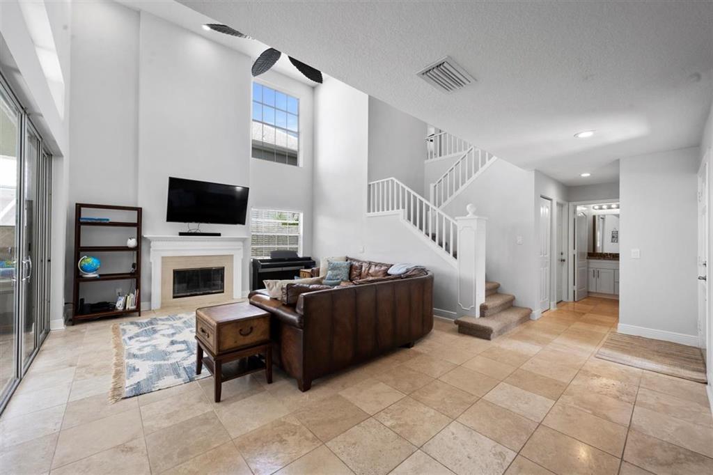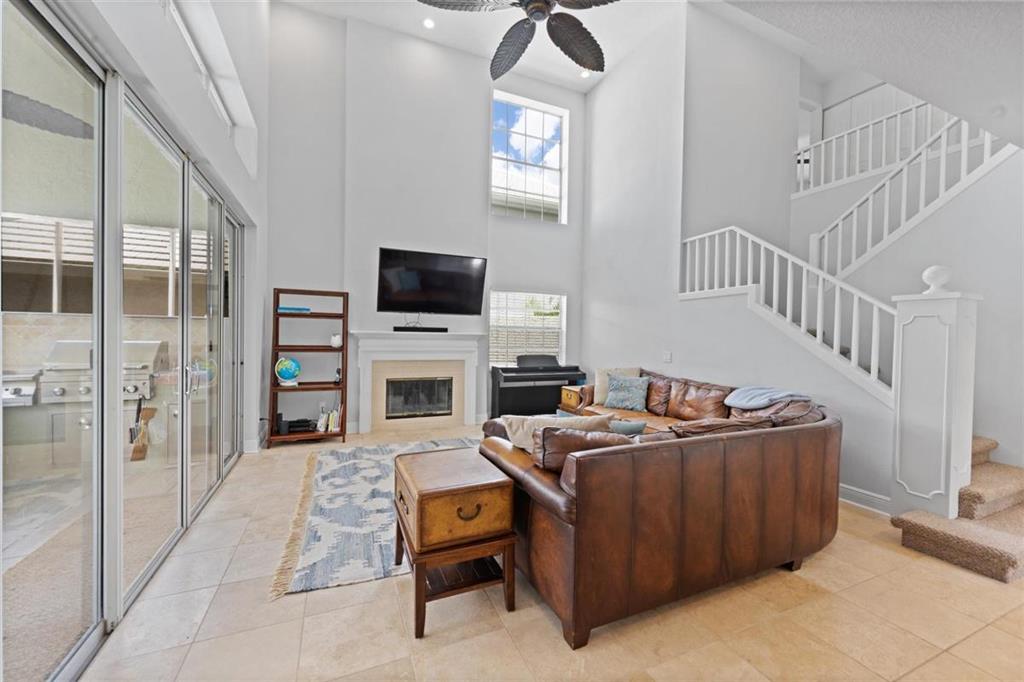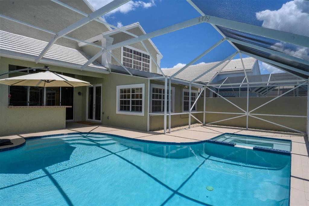Stunning LAKEFRONT home in Breakers West in West Palm Beach. Large screened patio with lovely pool overlooks scenic lake. Updated within last 4 years, this beautiful home features NEWER ROOF (2017), living room with high ceilings, fireplace along with stone flooring throughout main living areas. Chef's kitchen with white shaker style cabinets & stainless steel appliances opens for sunny family room. French Doors from the kitchen open to the built-in summer kitchen and bar area for convenient outdoor grilling. With spacious living areas on main floor and all the bedrooms upstairs, this floor plan provides privacy and seclusion for the bedrooms from the common areas downstairs. Master Suite is a peaceful retreat with its vaulted ceilings, 2 large closets & spa-like Master Bath