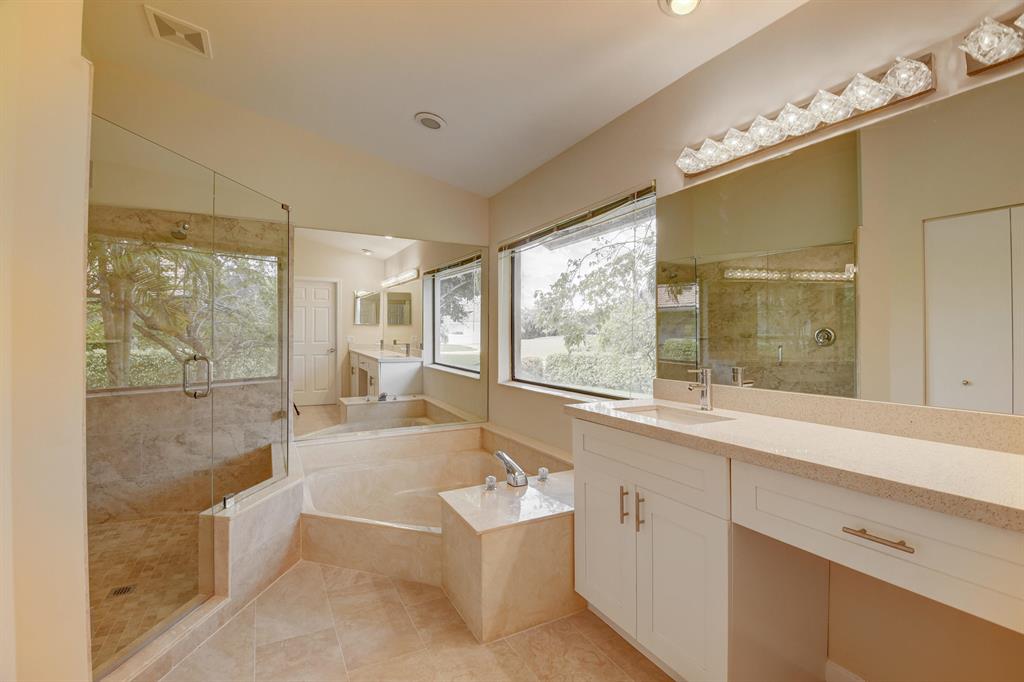 This lovely home is on a 14,000 +sq ft lot with a beautiful pool, golf and waterview. 2 large master suites, with exceptionallylarge his and her closets - convertible den -dual zoneA/C's - Large great room with CathedralCeilings - floor to ceiling windows - updatedkitchen add to the charm of this veryexceptional home. Roof was replaced in2019, Boca Woods features 2 championshipgolf courses - putting green - Driving range -TennisCourts - Pickleball Courts - Bocce ball also.Fitness Center with top of the line equipment - professional trainers - gourmet dining -heated pool - book clubs - large card rooms - professional entertainment -trips - valet parking for owners and guests and so much more. An affordable homein a very desirable Country Club. Boca W