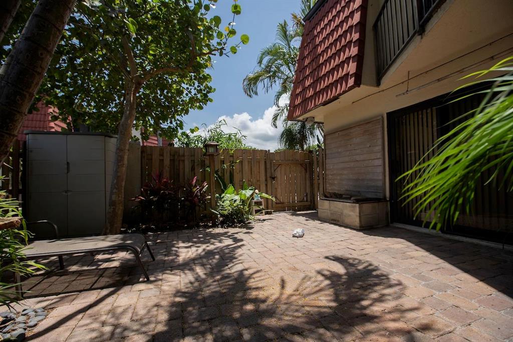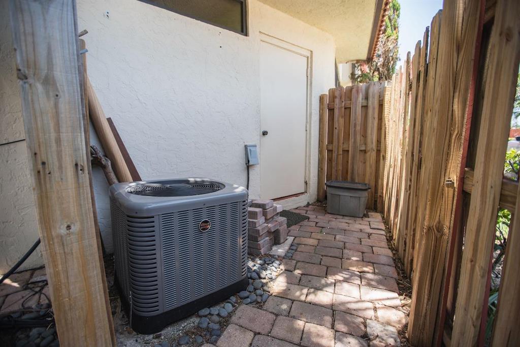 - Excellent location. Within 2 miles of PBIA, School Board, Post Office, Library, Water Mgmt District, Sheriff and 10 min from beach.- Burg & Devosta CBS built strong - New roof. Only 3-4 yrs old- Miami-Dade windows throughout. Good up to Cat 5 hurricane.- Emergency Fire Dept 1 mi away. Elem/Middle schools are within walking distance.- Home has SE exposure. Excellent for plants & shade- Parking spot is within 10' of patio- Outside patio 90% brick for areas to plant, and plenty of extras to make it 100% covered, lots of mature trees and shade- Patio Koi fish tank with waterfall element- Downstairs flooring 100% covered (bathrooms, closets, etc) with strong 16'' Porcelain tiles laid diagonally. Extra tiles also available from same stock.