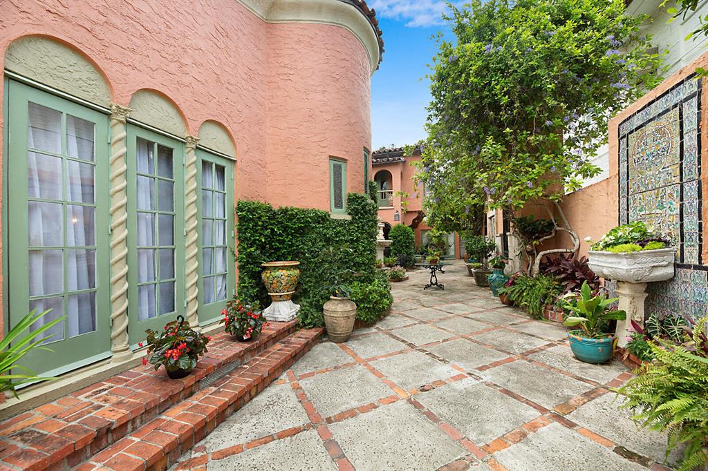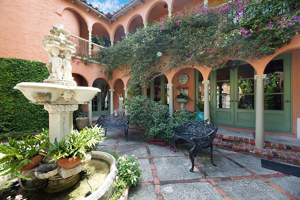 Casa De La Brisa ''house of the breeze'' was designed & built by renowned architect William Eckler. Eckler worked with Addison Mizner to create a number of significant historical homes in Palm Beach & West Palm Beach. Built as his own private residence Eckler spared no expense in including some of the most desirable architectural features of the time, This one of a kind 4 bedroom/4bath Mediterranean style home, abounds with charm and history. Just a few of the prominent features include vaulted cypress ceilings, Mizner tile, spiral stone staircase,working fireplace,interior balcony,exterior balcony over looking the court yard from the bedrooms,26 arches,28 stain glass windows, and numerous hand carved French doors leading out to the gorgeous fountained courtyards. The large gracious room