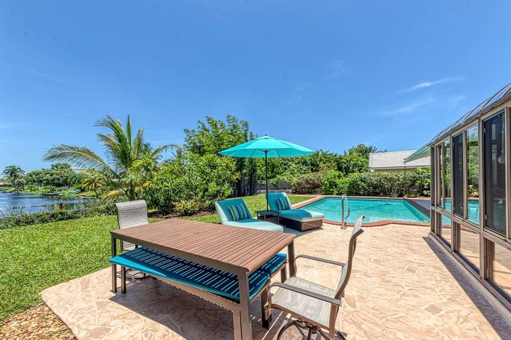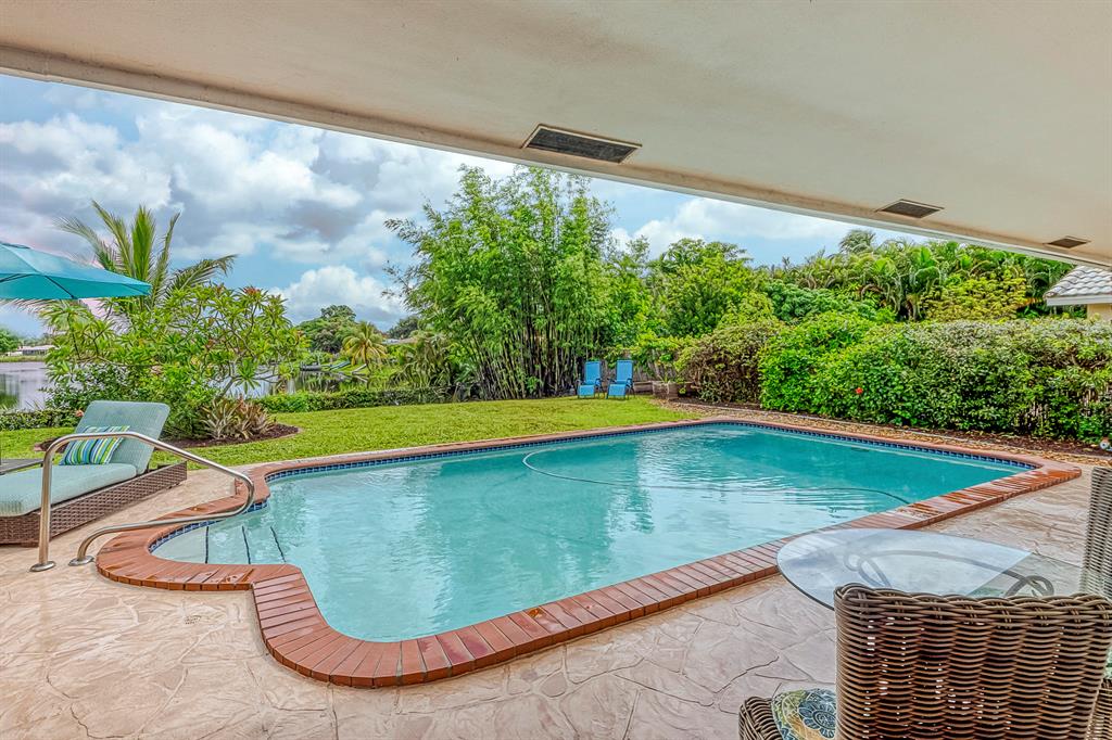 Rarely available east Boca property on wide view on east Boca's largest lake. New HEATED saltwater pool! Indigenous plants create a spectacular waterfront lifestyle and scenery. Interior laundry room. Combination of impact glass and accordion shutters. Glass enclosed solarium is the perfect respite to enjoy pool and lake views. 1 car garage on a quiet street. Walking distance to Boca's favorite elementary school. Just over 2 miles to Boca Raton beaches and waterfront restaurant. Many shops and restaurants approximately 1 mile from home. Large lot allows expansion . Electrical panel and A/C replaced.