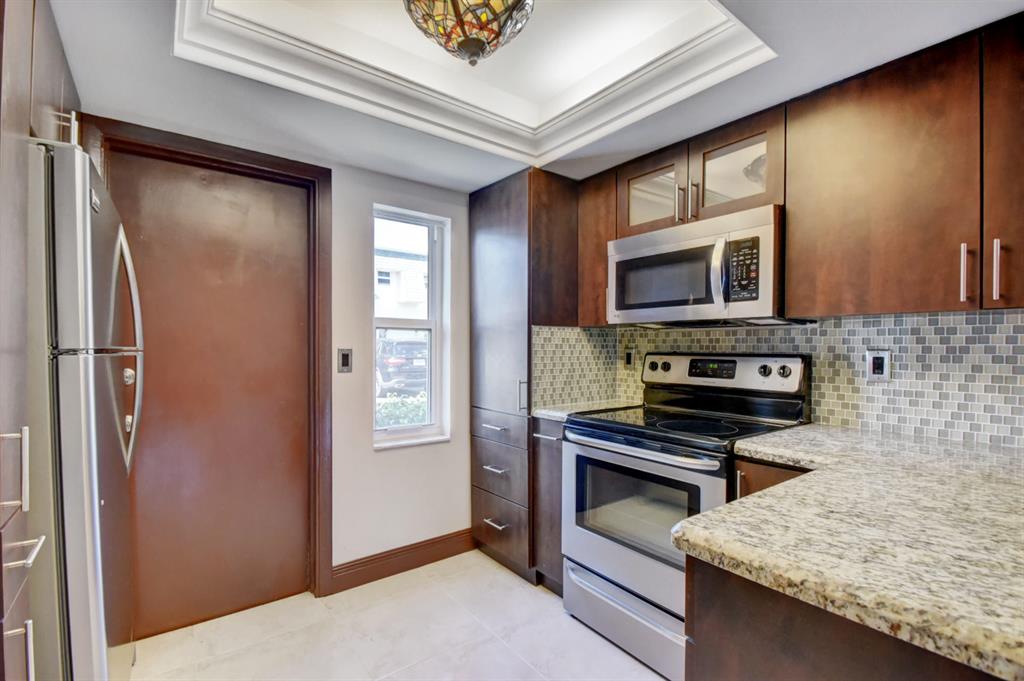 Lovely 3 bedroom 3 bath townhome in Boca Raton east of 95, close to great schools. This 2 story unit's floor plan has one bedroom/bath downstairs and two master suites upstairs. As you enter the home, the living space is open, with a cherry wood floor molding throughout the downstairs living space. The living room, dining room and kitchen all have Tiffany lamps that accentuate each of the rooms. The kitchen has been remodeled with modern cabinets that have plenty of storage, and shelving for decorations, as well as granite countertops and a tile splash back that ties it all together! All appliances were installed in 2017. To make laundry much easier, the washer and dryer are also on the first floor in a separate hallway.