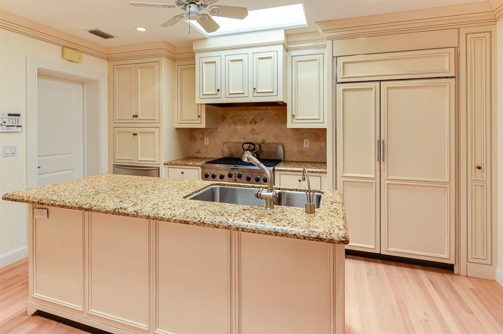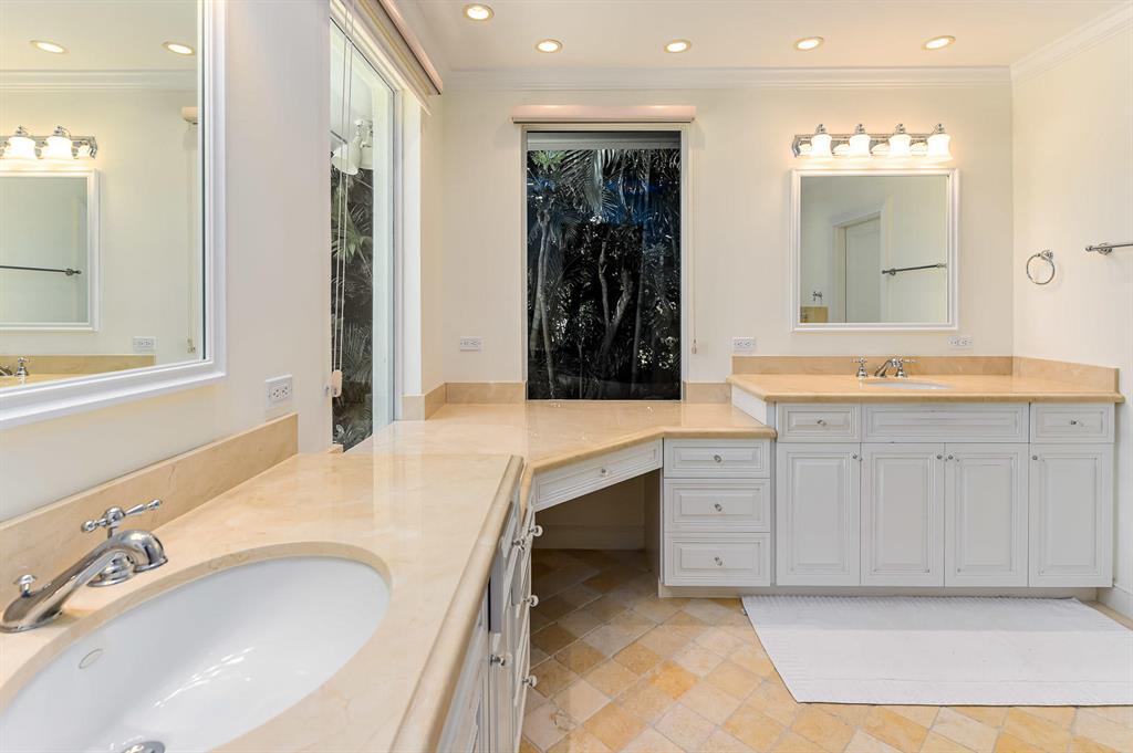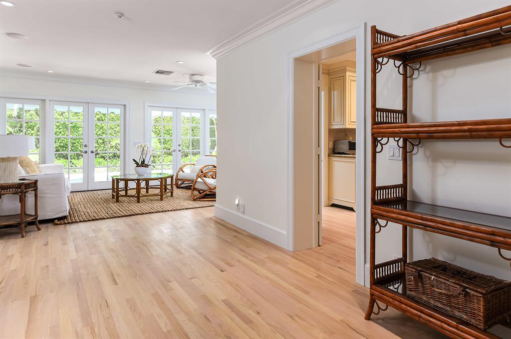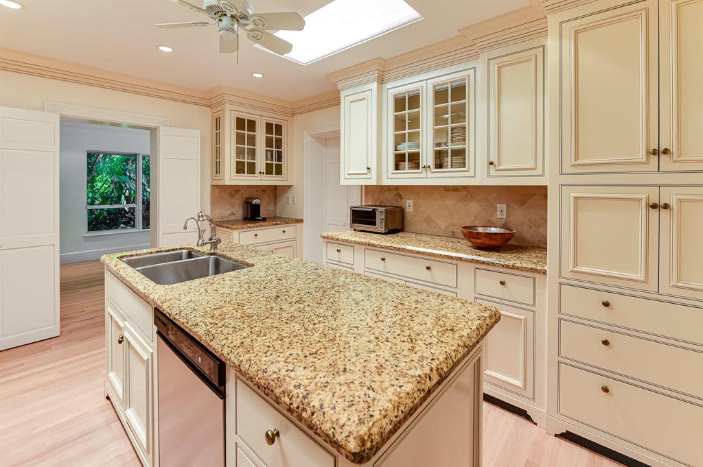 Elegantly casual one-story Regency Style house, featuring an open floor plan and lovely entertaining rooms with attractive pool and garden areas. Spacious master bedroom suite. Many upgrades and details. Desirable location with easy access to the beach.