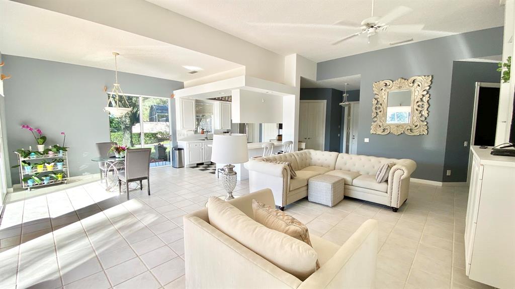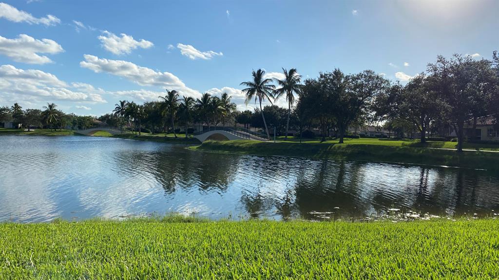 LOCATION, LOCATION, LOCATION!!!Situated on the cul de sac on one of the ''point'' lots, this property is surrounded by lakes, beautiful bridges and grassy banks. Fantastic views of the sunsets, stroll over the bridges to the Town Center, water views from every room. This stunning wide lot is a rare find in this community. Tiled flooring in the main areas, laminate in the master bedroom and guest room. Built in entertainment center in the Great Room, accordion storm shutters. 12 ft volume ceilings in the Great Room, 10ft ceilings elsewhere. The open plan concept is perfect for entertaining, a den off of the kitchen can service as an office, formal dining or reading room! The master suite has generous closets and a double bathroom arrangement with large walk in shower on one side and