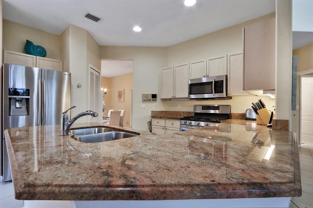 Lovely 2 story home with Master Bedroom on First Floor; large loft, 2 bedrooms and bath on second floor. Rear view of Heritage golf course; pool with spa under large screened lanai. Air conditioner and Roof replaced approximately two years ago; updated kitchen with granite counters and stainless steel appliances. Accordion shutters. Walk to Clubhouse.