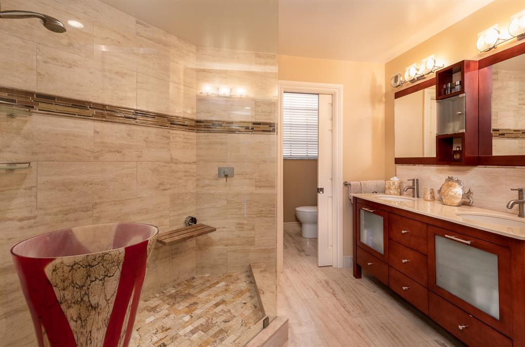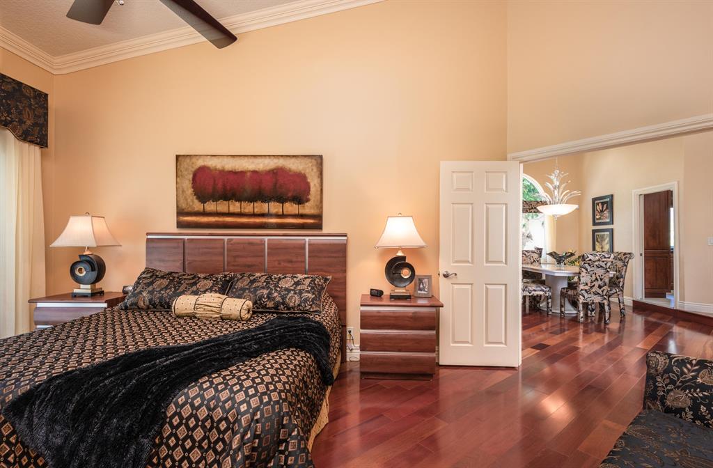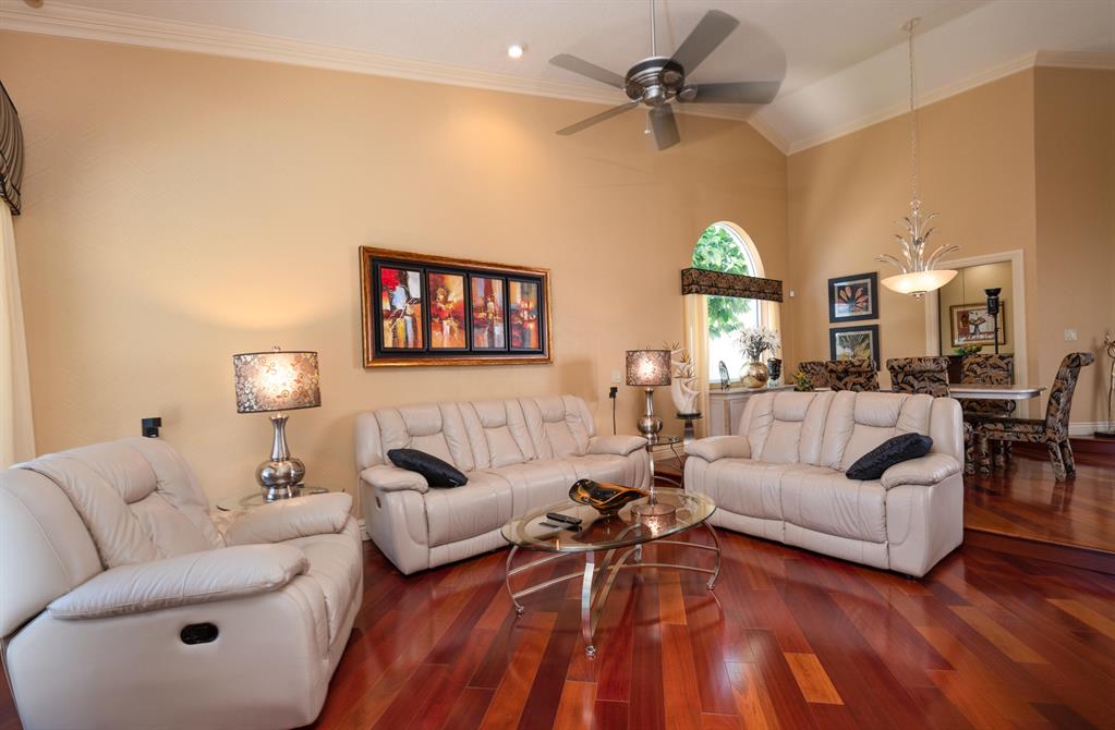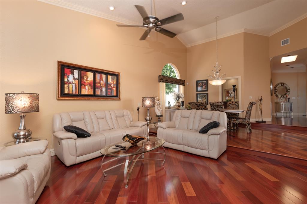 Villa Del Sol (IKA Villa Stel) is a lovely seclusive low density enclave of 90 homes or so. Highly desirable, properties are rarely available and this one is just simply ''lovely and ready-to-move-in''. This updated 3/2/pool features NEWER almost everything including roof, Impact windows, custom kitchen, wood floors, Water heater, luxurious master bath, pool with salt chlorinator heater, custom closets, tiled garage floor, custom garage cabinets - rolling blinds - cornices - decor mostly by Larue-. The floor plan separates guests wing from master, further affording privacy to all occupants. HOA fees are very reasonable, security 24/7, subdivision pet friendly.