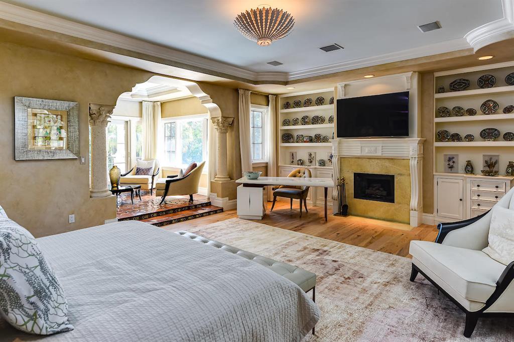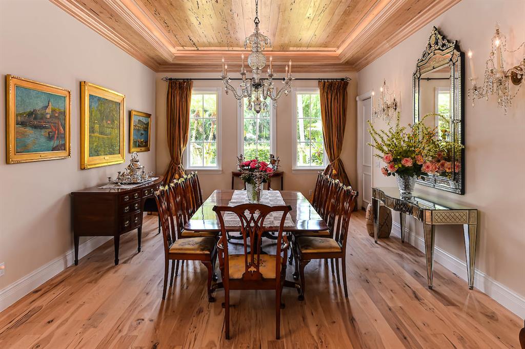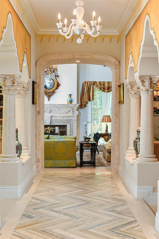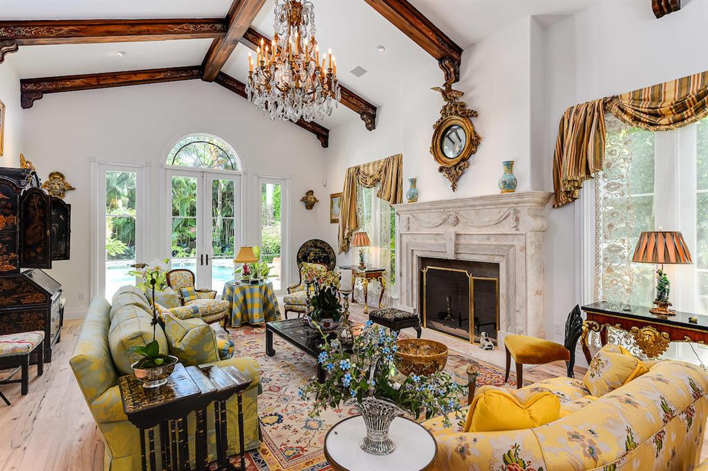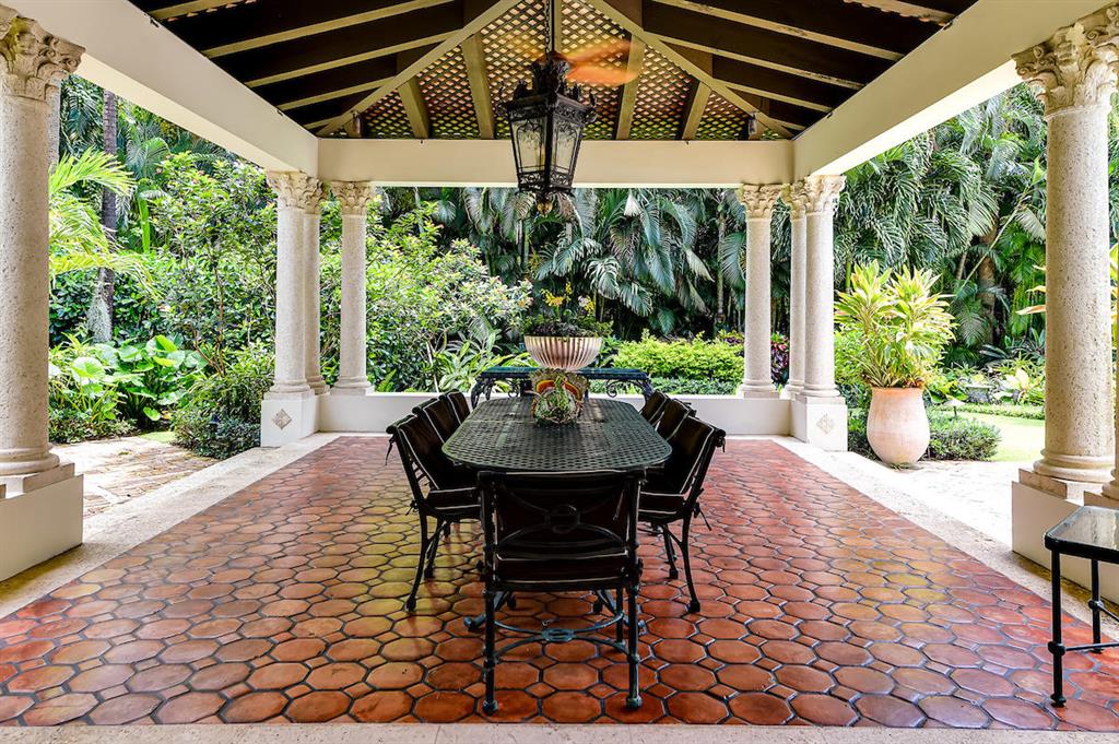 Elegant Mediterranean residence located in the exclusive Phipps Estate. Situated on a lush and tropical lot the house has five bedrooms, six bathrooms and three half baths with total square feet of 9,776+/-. Owner's suite includes two marble baths, two walk-in closets, a sitting area, office and a private terrace. The house has meticulous detail wood beams in the living room and French doors opening to the pool, pecky cypress ceiling in the dining room, pecky cypress library with French doors opening to a covered patio. A gourmet kitchen open to the family room and dining area with French doors out to a large loggia and covered dining loggia. Other features include a summer kitchen heated pool, elevator, fireplaces, fountains and three car garage.