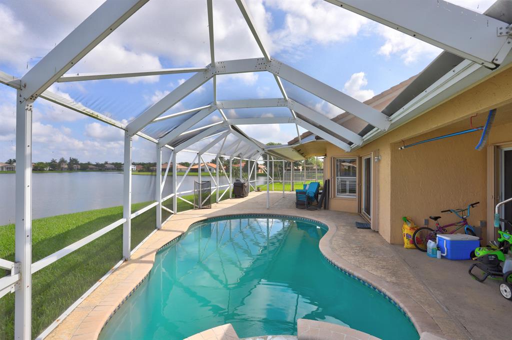 Veritable point lot, lakefront with pool & Spa. Excellent schools. Master bedroom & one bedroom downstairs. 1/4+ ACRE lot. Roof 2007. AC 2009, Dishwasher, microwave and fridge 2018, washer/dryer 2014. Tile and laminate downstairs, Berber carpet upstairs. Low HOA fees. Ungated community. Priced for some needed TLC. Tenant occupied but glad to accommodate your schedule. View this homes safely via MATTERPORT 3D NAVIGABLE TOUR LINK ABOVE.