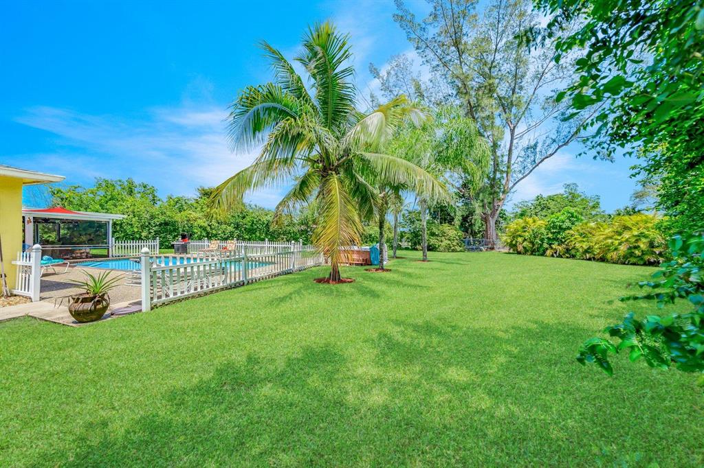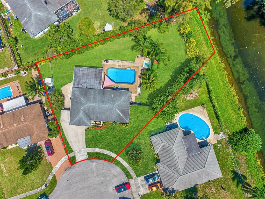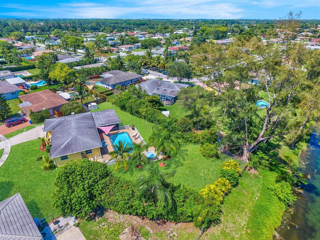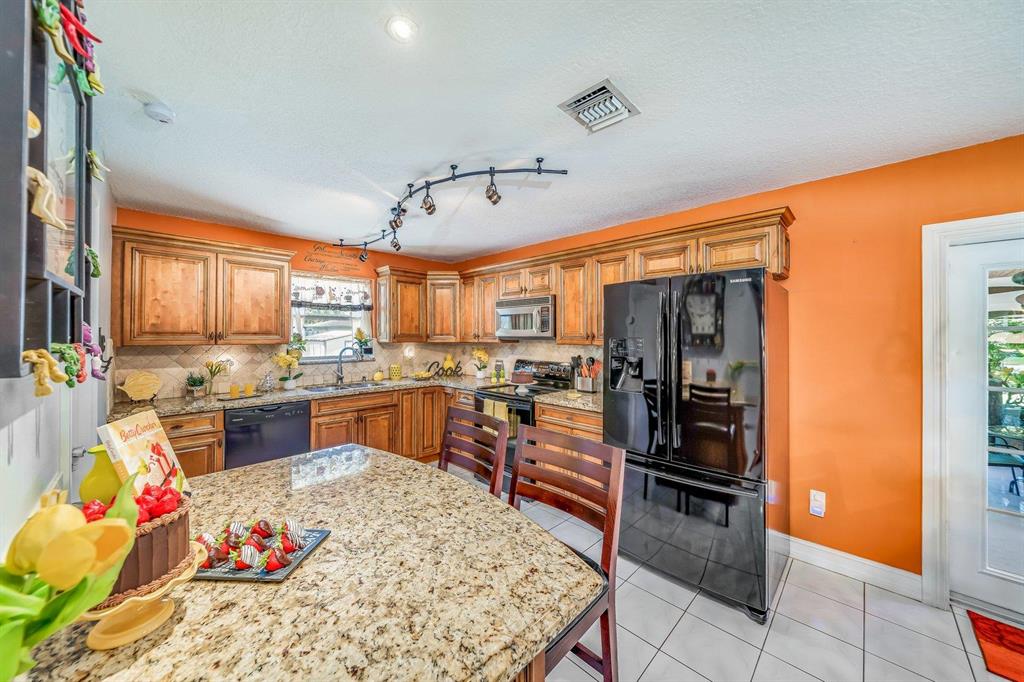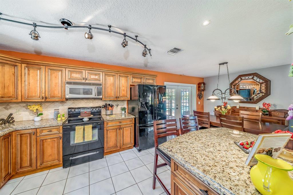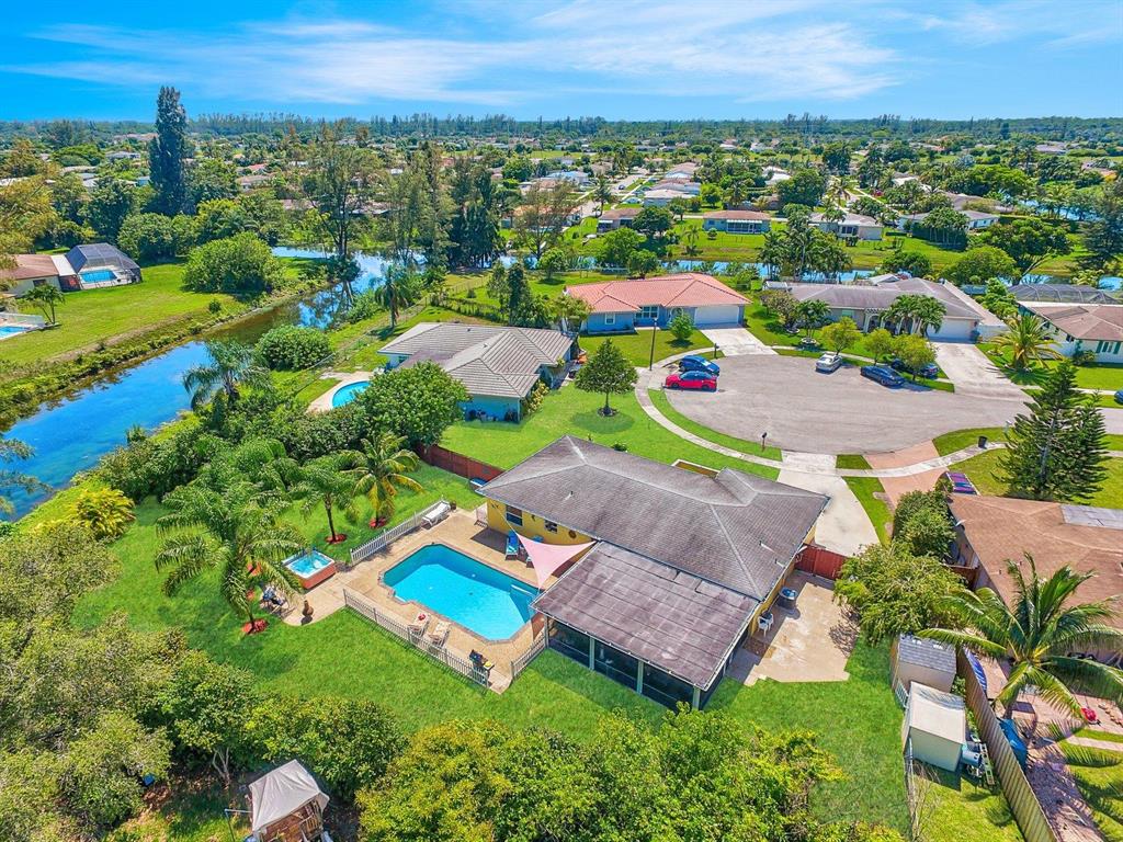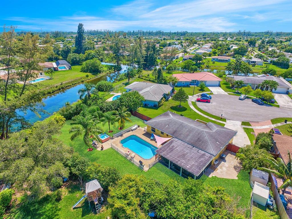 Spacious & open four bedroom/2bath/1car garage/2 car wide driveway Pool & Waterfront Home on one of the biggest lots in Palmetto Pines Plus on a cul-de-sac. The lot is 14,612 square feet! Impact Glass! Fabulous updated kitchen wood cabinets, granite countertops, tumbled marble backsplash, Newer appliances and more! Master suite and guest bath are both updated. Tile flooring throughout the entire house! Go out French doors to the huge screened in and covered patio(over 500 square feet) overlooks the amazing backyard. A tropical paradise awaits you outside featuring a huge backyard that has a beautiful pool plus tons of lush landscaping with both sides of the home featuring 2 double wide gated fence to Backyard/side yard where the driveway continues and 30 Amps(for RV).