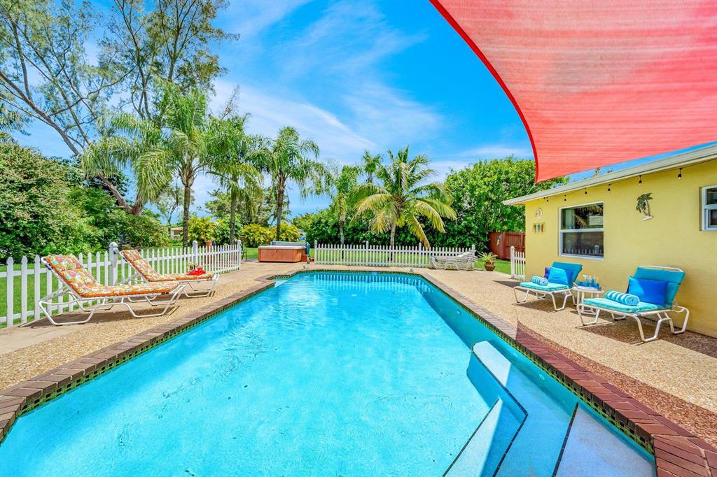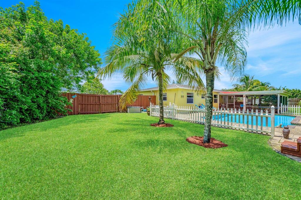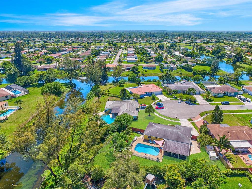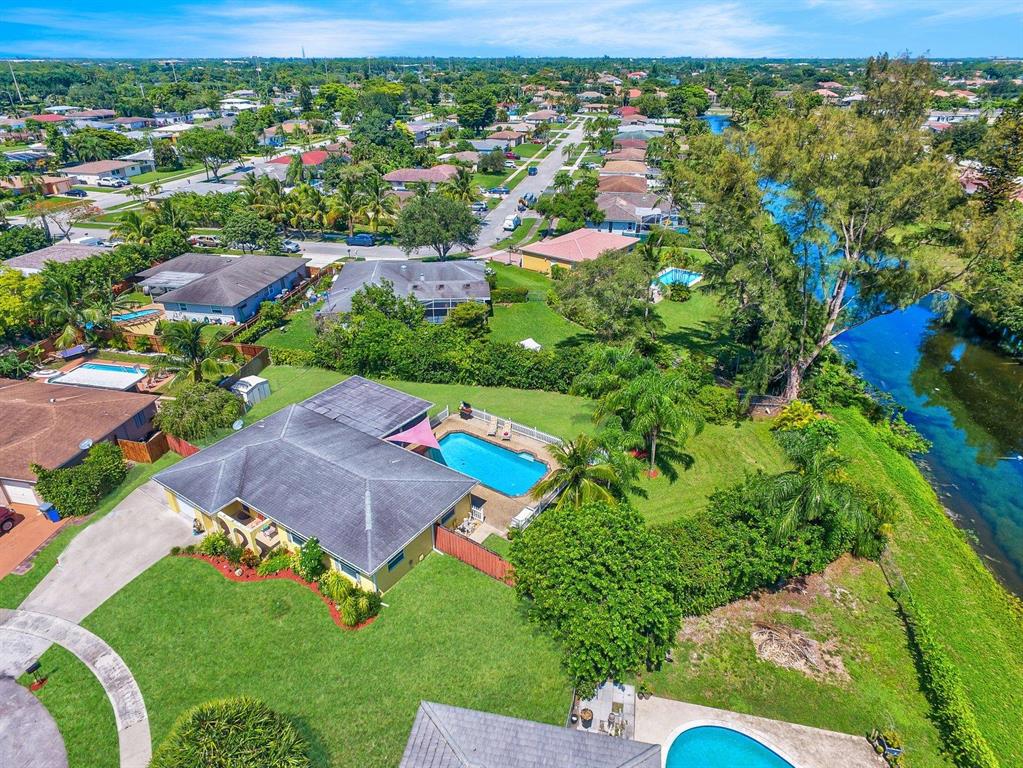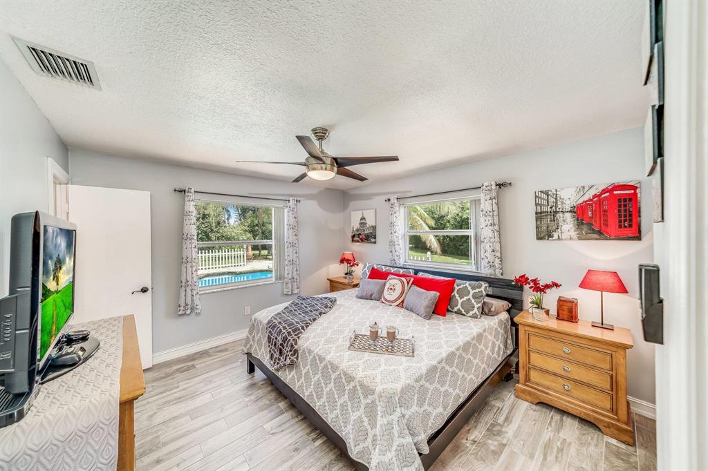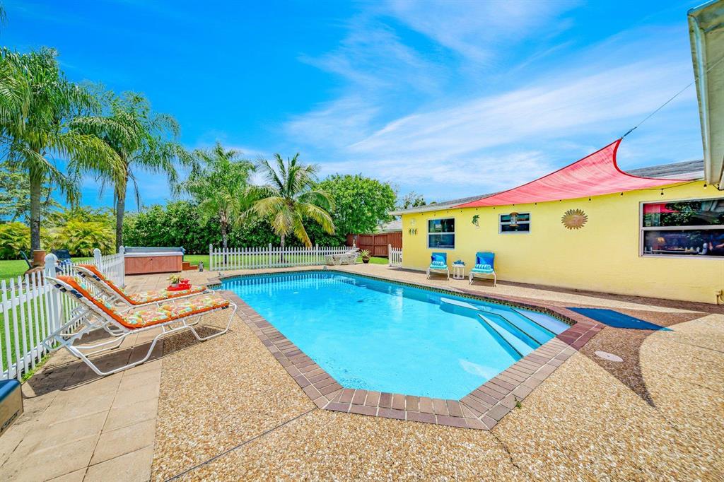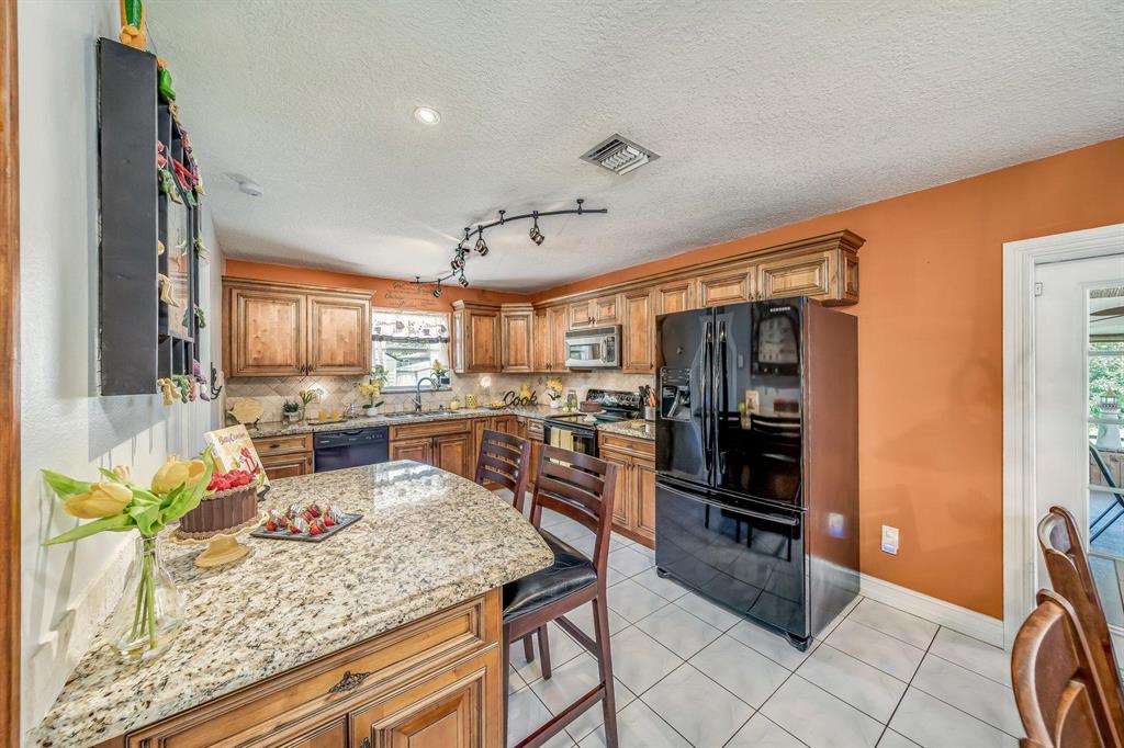 Spacious & open four bedroom/2bath/1car garage/2 car wide driveway Pool & Waterfront Home on one of the biggest lots in Palmetto Pines Plus on a cul-de-sac. The lot is 14,612 square feet! Impact Glass! Fabulous updated kitchen wood cabinets, granite countertops, tumbled marble backsplash, Newer appliances and more! Master suite and guest bath are both updated. Tile flooring throughout the entire house! Go out French doors to the huge screened in and covered patio(over 500 square feet) overlooks the amazing backyard. A tropical paradise awaits you outside featuring a huge backyard that has a beautiful pool plus tons of lush landscaping with both sides of the home featuring 2 double wide gated fence to Backyard/side yard where the driveway continues and 30 Amps(for RV).