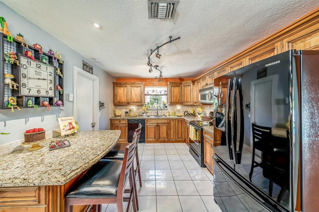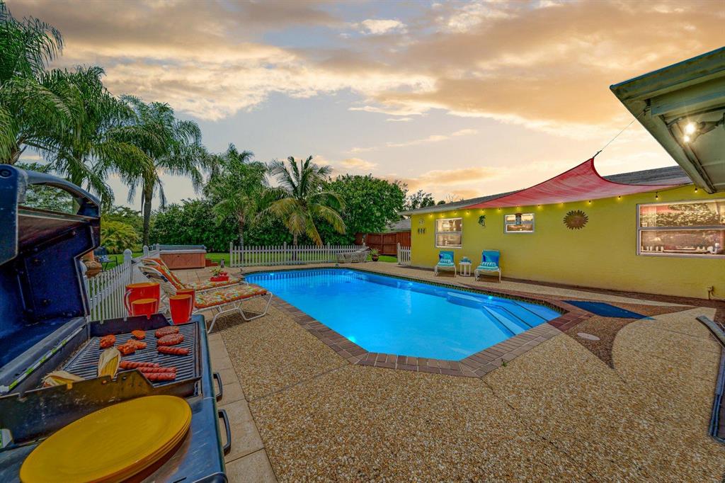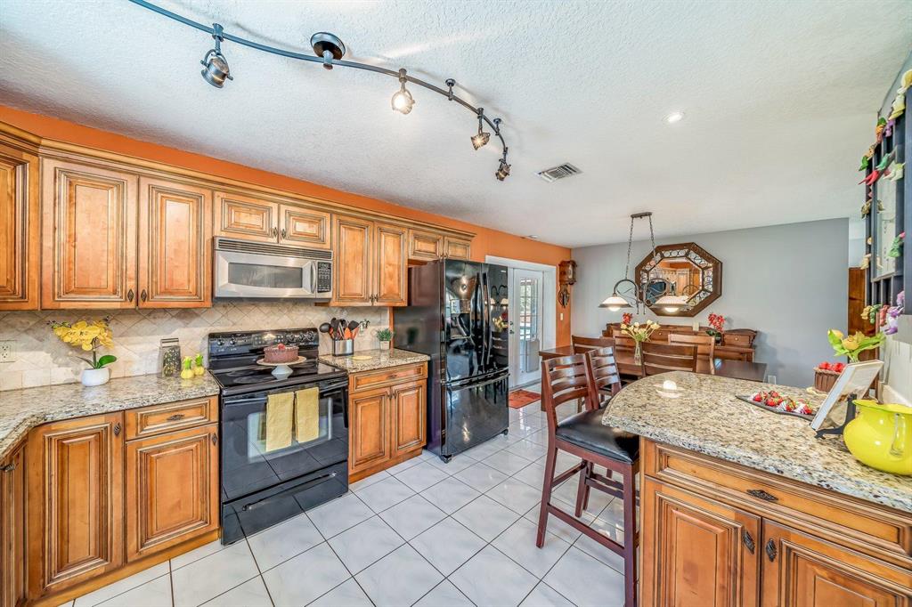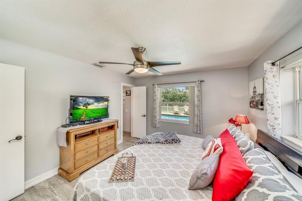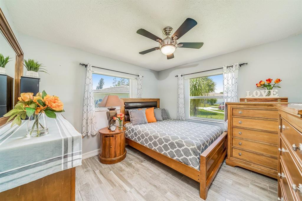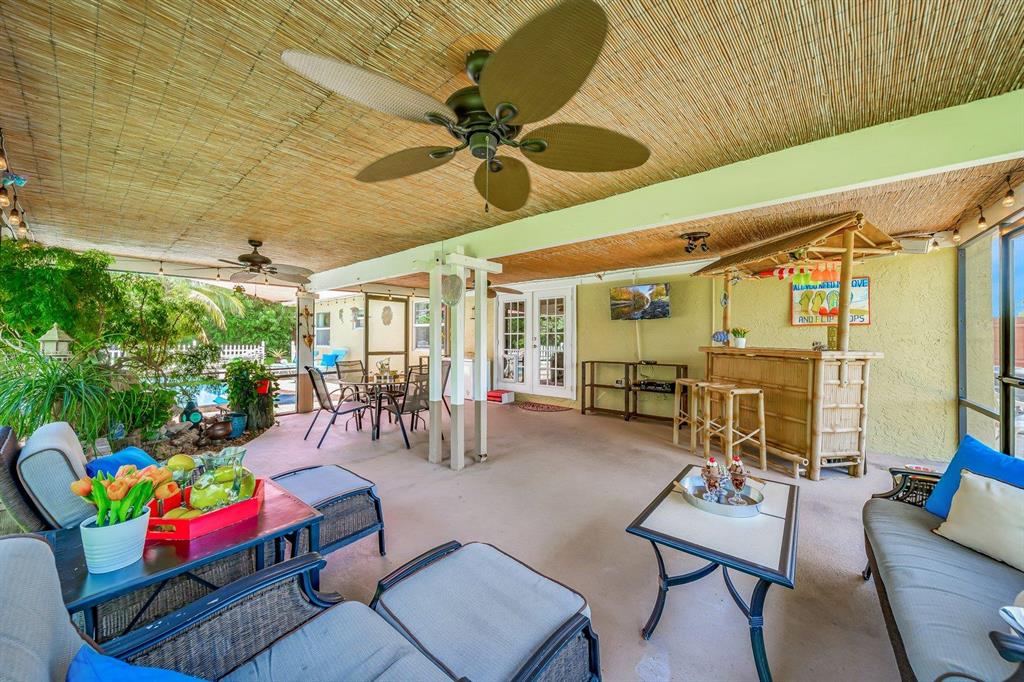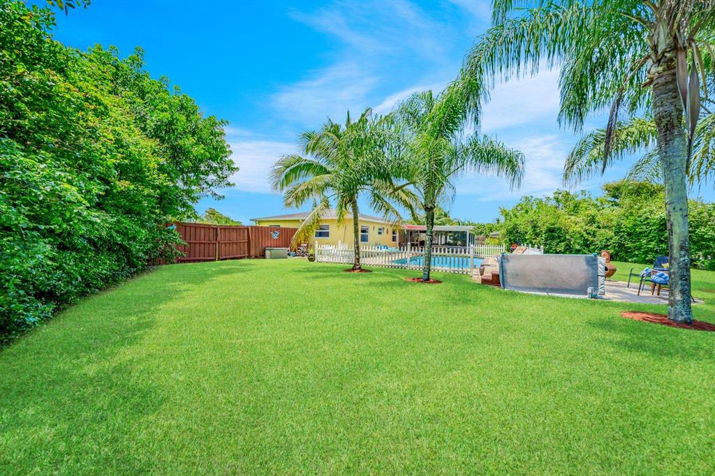 Spacious & open four bedroom/2bath/1car garage/2 car wide driveway Pool & Waterfront Home on one of the biggest lots in Palmetto Pines Plus on a cul-de-sac. The lot is 14,612 square feet! Impact Glass! Fabulous updated kitchen wood cabinets, granite countertops, tumbled marble backsplash, Newer appliances and more! Master suite and guest bath are both updated. Tile flooring throughout the entire house! Go out French doors to the huge screened in and covered patio(over 500 square feet) overlooks the amazing backyard. A tropical paradise awaits you outside featuring a huge backyard that has a beautiful pool plus tons of lush landscaping with both sides of the home featuring 2 double wide gated fence to Backyard/side yard where the driveway continues and 30 Amps(for RV).