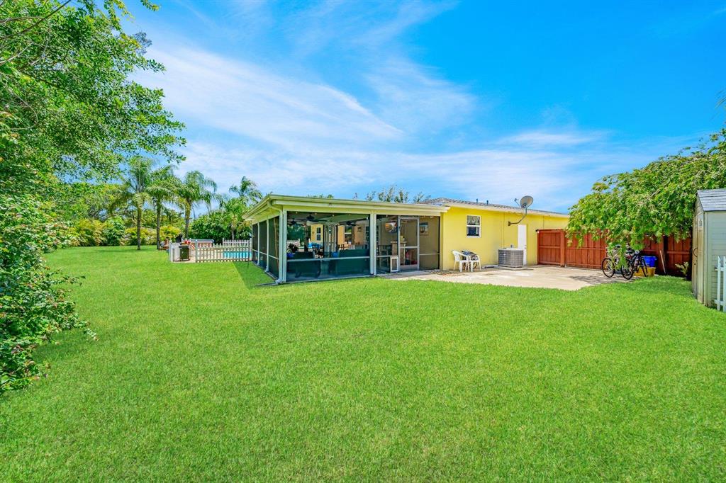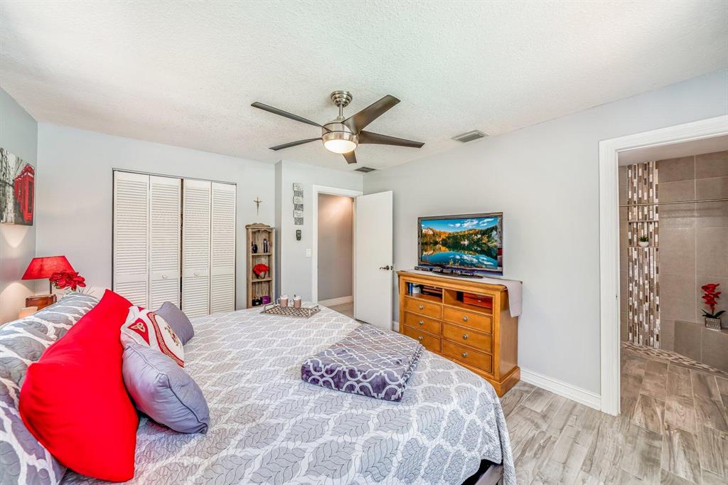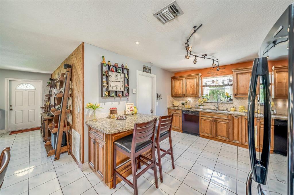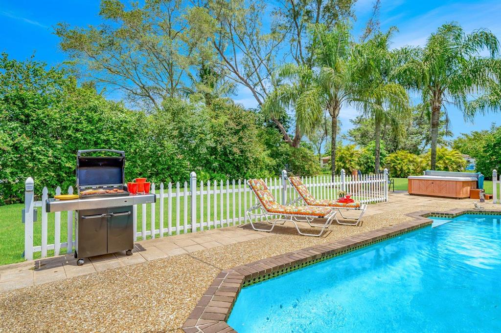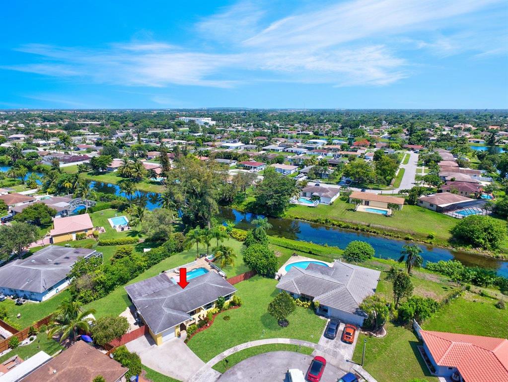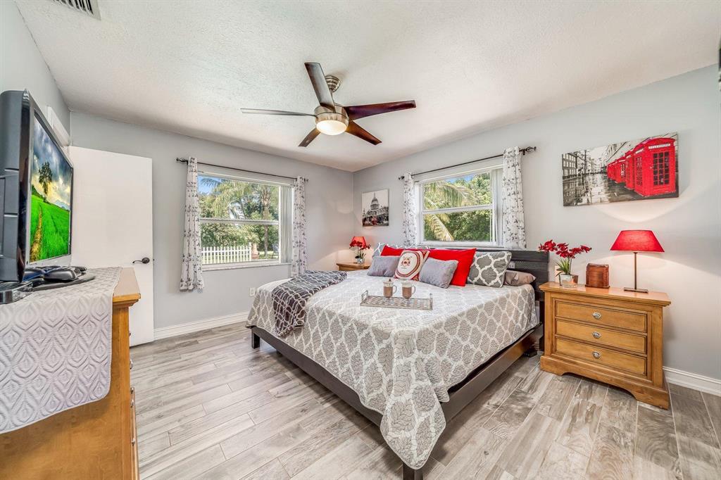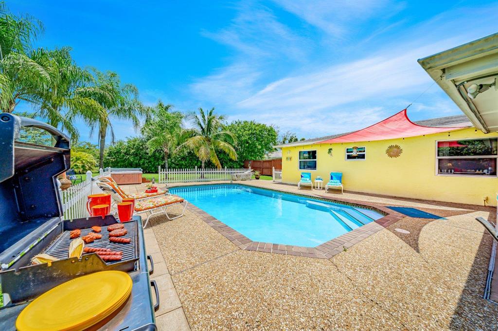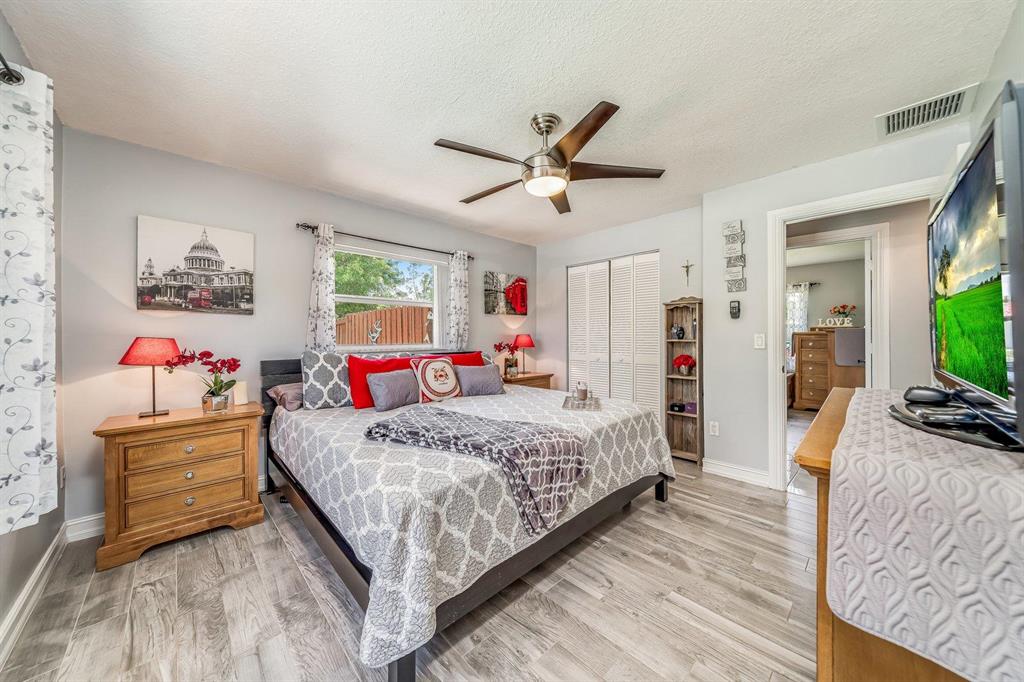 Spacious & open four bedroom/2bath/1car garage/2 car wide driveway Pool & Waterfront Home on one of the biggest lots in Palmetto Pines Plus on a cul-de-sac. The lot is 14,612 square feet! Impact Glass! Fabulous updated kitchen wood cabinets, granite countertops, tumbled marble backsplash, Newer appliances and more! Master suite and guest bath are both updated. Tile flooring throughout the entire house! Go out French doors to the huge screened in and covered patio(over 500 square feet) overlooks the amazing backyard. A tropical paradise awaits you outside featuring a huge backyard that has a beautiful pool plus tons of lush landscaping with both sides of the home featuring 2 double wide gated fence to Backyard/side yard where the driveway continues and 30 Amps(for RV).