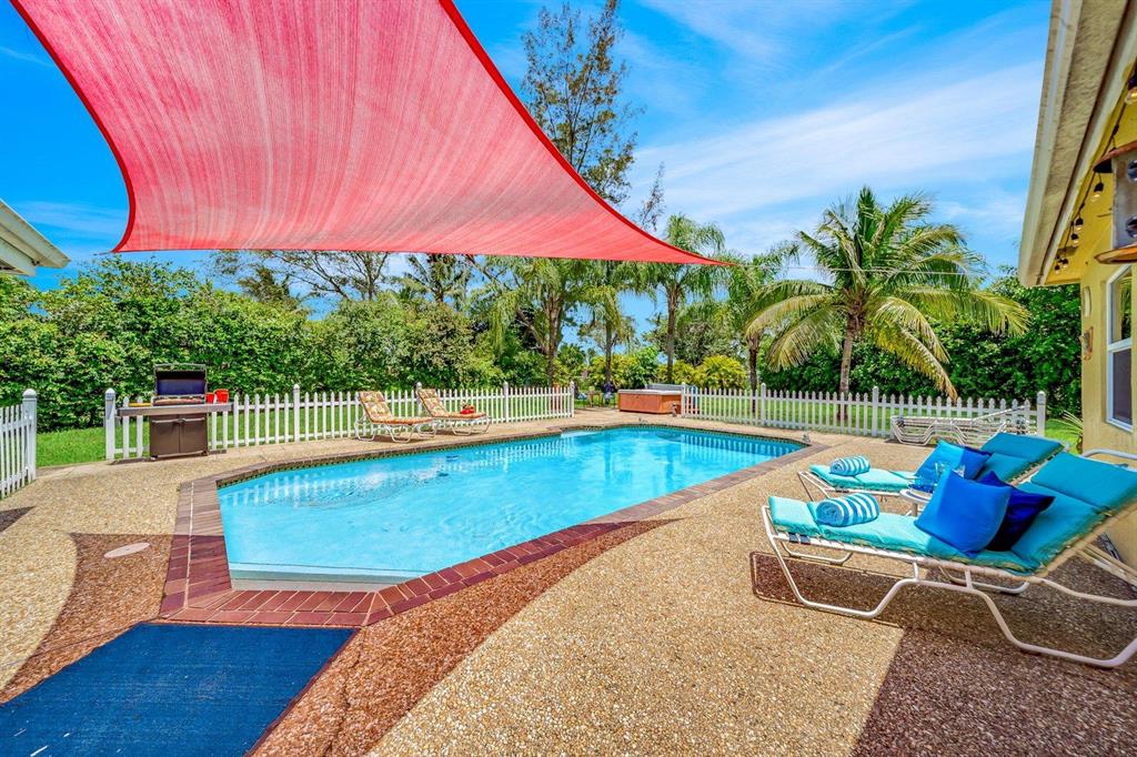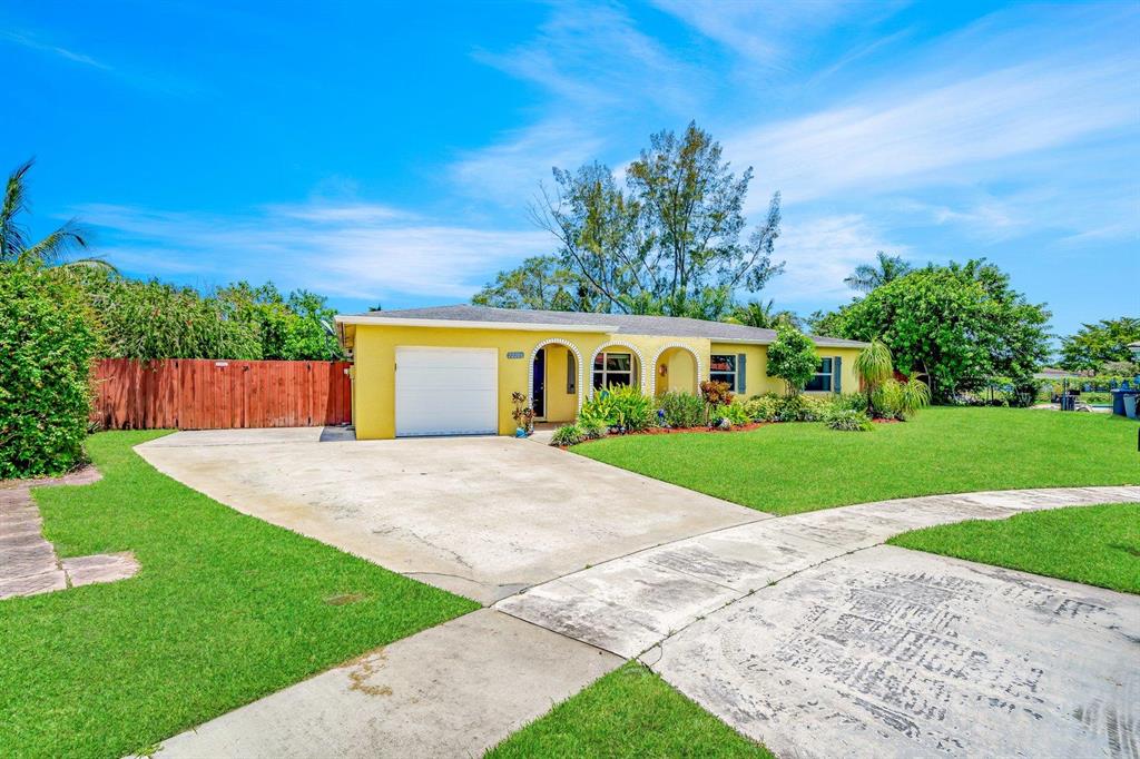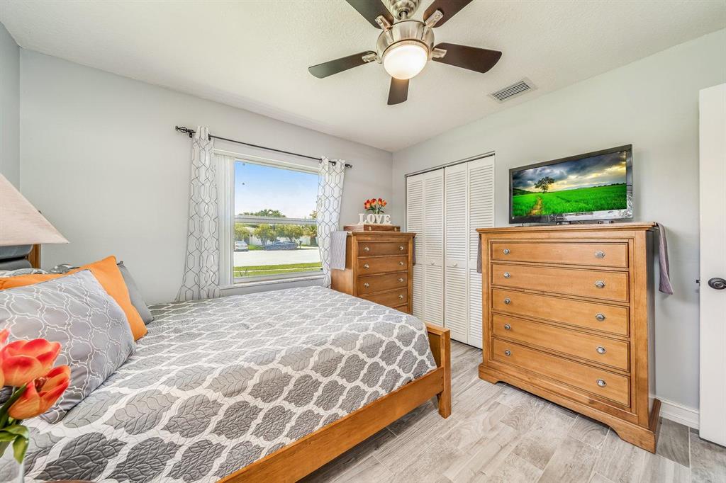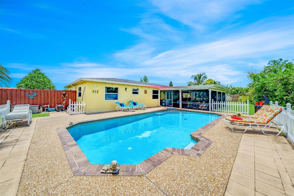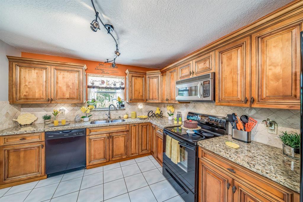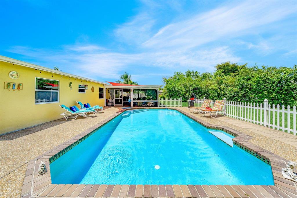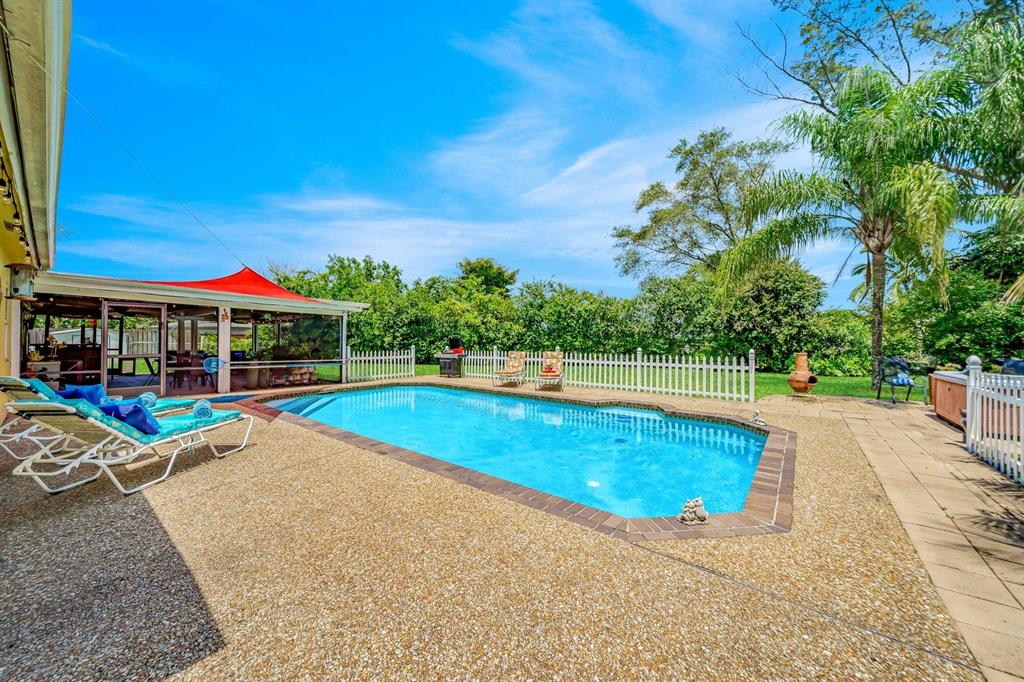 Spacious & open four bedroom/2bath/1car garage/2 car wide driveway Pool & Waterfront Home on one of the biggest lots in Palmetto Pines Plus on a cul-de-sac. The lot is 14,612 square feet! Impact Glass! Fabulous updated kitchen wood cabinets, granite countertops, tumbled marble backsplash, Newer appliances and more! Master suite and guest bath are both updated. Tile flooring throughout the entire house! Go out French doors to the huge screened in and covered patio(over 500 square feet) overlooks the amazing backyard. A tropical paradise awaits you outside featuring a huge backyard that has a beautiful pool plus tons of lush landscaping with both sides of the home featuring 2 double wide gated fence to Backyard/side yard where the driveway continues and 30 Amps(for RV).