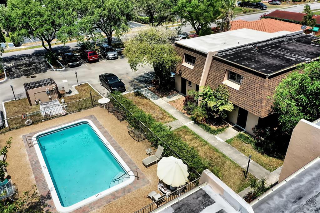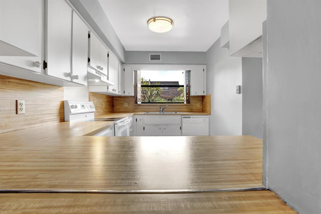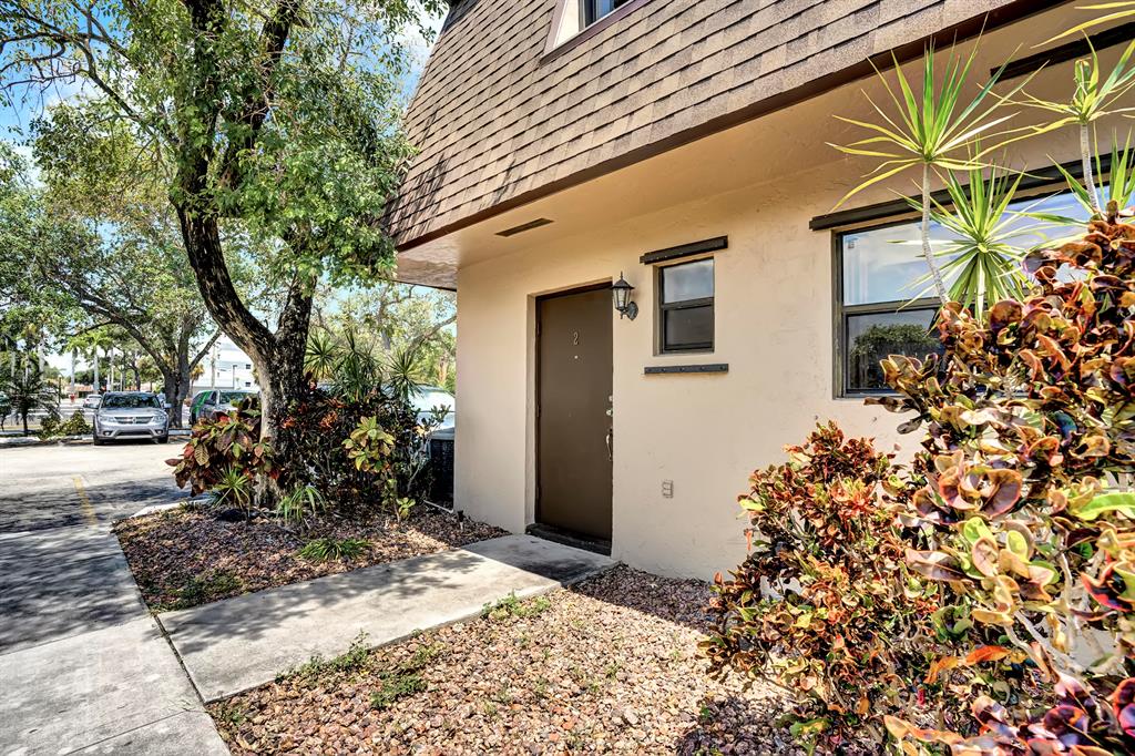 Immaculate 2 bedroom, 2.5 bath townhouse just minutes from downtown and the beach. Enjoy peace of mind with a seller-funded full home warranty. Remodel the kitchen to suit your distinctive style with a $4k seller credit. Ideal floorplan features a spacious living area flooded in natural light and a half bath on the first floor, and 2 bedrooms and 2 full baths on the second floor. Pass through the sliders in the living area to discover a screened-in patio with a garden view and a utility closet with full size washer/dryer and a 58 gallon GE water heater. The spacious main bedroom boasts sliding glass doors leading to your private balcony, a large walk-in closet and an en-suite bath. Roof was re-coated 2 years ago, new carpet, fresh paint and plenty of storage. Pool is just steps away.