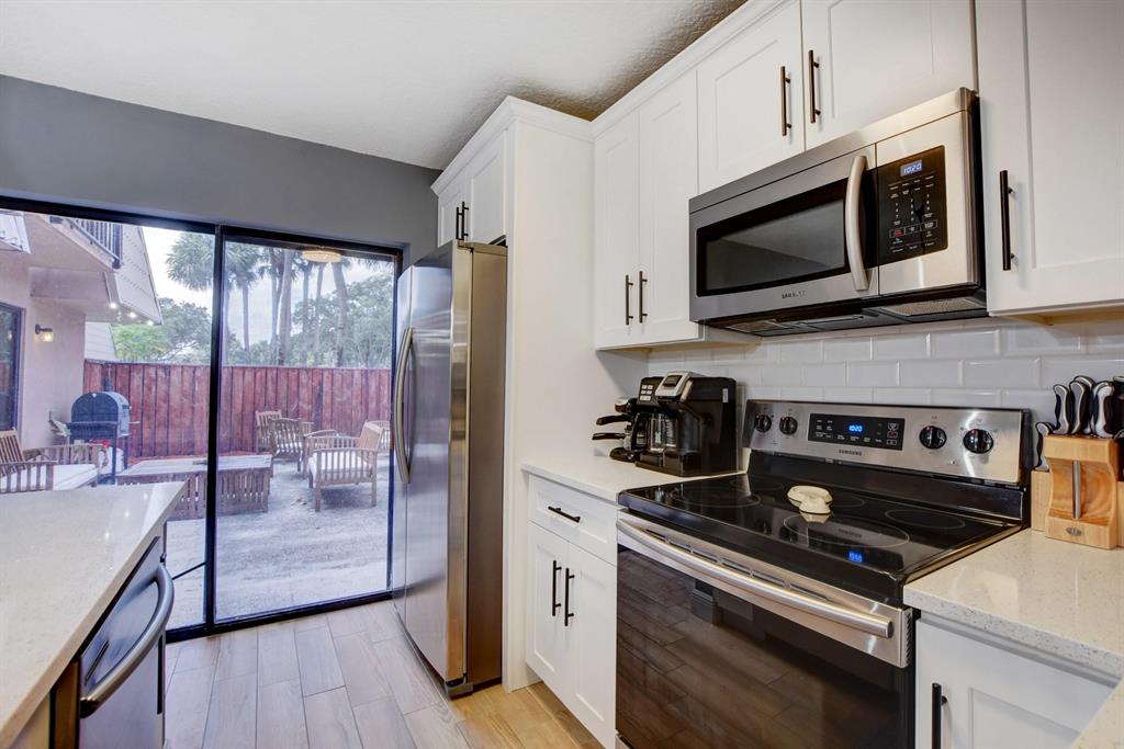 Extremely modern updated townhouse located in the community of Sandlewood Townhomes. Quartz counter tops with a backsplash of subway tiling, New Stainless Steel Samsung appliances, and pendant lighting to complete the kitchen. The down stairs living area into the bath and storage have a beautiful tiling with a wood plank finish. The staircase and upstairs boasts beautiful wood flooring. The master bathroom has been completely remodeled with a oversized shower. Feel like you are at the spa with amazing floors, custom tiled walls, shiplap wall, and a custom vanity with new light fixtures. New A/C in 2019. All you have to do is move in your clothes and call this your new home. The HOA fee includes water, cable, and exterior/