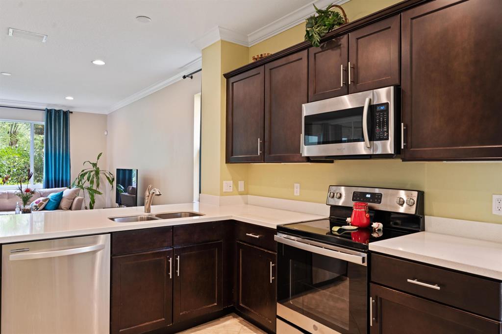 MUST SEE! This Mediterranean-style, end unit, luxury townhome has been beautifully-maintained and features an open floorplan with a loft AND 3 spacious bedrooms. Enjoy plenty of natural light and several builder upgrades including quartz countertops, impact windows and doors, decorative crown molding throughout the first floor and master suite, 18'' diagonal ceramic tile throughout the first floor, volume ceilings and recessed lighting, an open concept kitchen with granite countertops, stainless steel appliances and a breakfast area, a spacious master suite with a tray ceiling, and a screened-in patio leading to the fenced yard. Located off of Okeechobee Blvd., convenient to the Florida Turnpike, Oakton Preserve is a small, private, gated community.