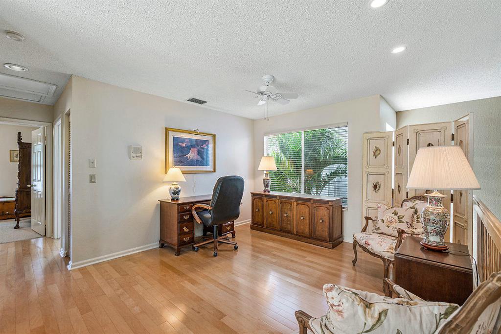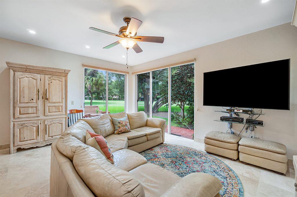 Amazing views of the impeccable Boca Country Club golf course directly on the 18th fairway! This very spacious 3/2.5 plus loft home boasts beautiful new travertine floors throughout the entire lower level, an updated kitchen with modern appliances including a breakfast area and bar, a screened-in patio with an additional open patio overlooking the golf course, a master bedroom with bonus sitting room/office/gym, plus two walk-in closets and a huge master bathroom, a loft that could be converted into a fourth bedroom, and a 2 car garage! All ideally located just minutes from the best of both Boca Raton, Delray Beach, and A-rated schools. Boca Country Club is a NO MANDATORY MEMBERSHIP community, however fantastic memberships are available for golf, tennis, and the renowned Beach Club.