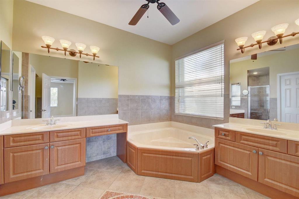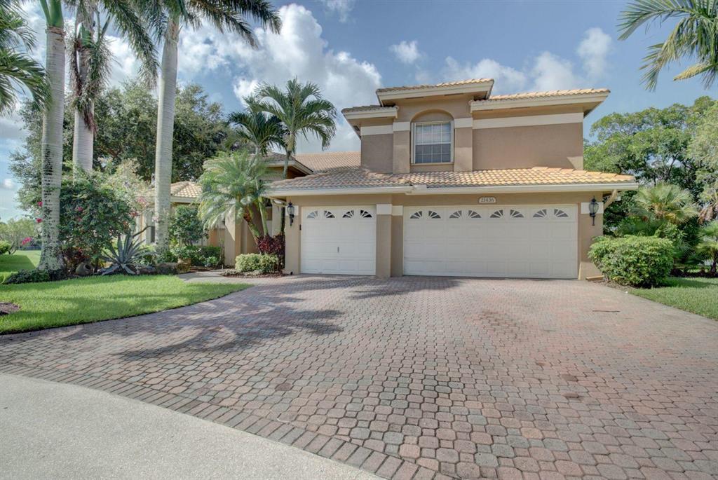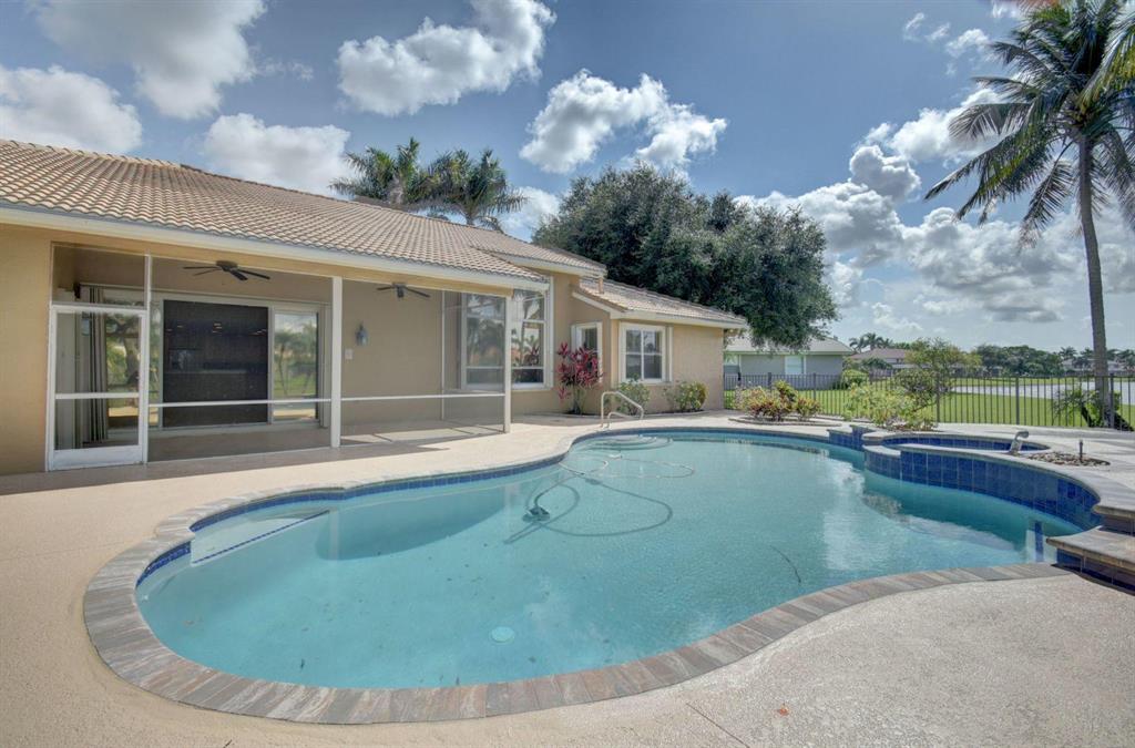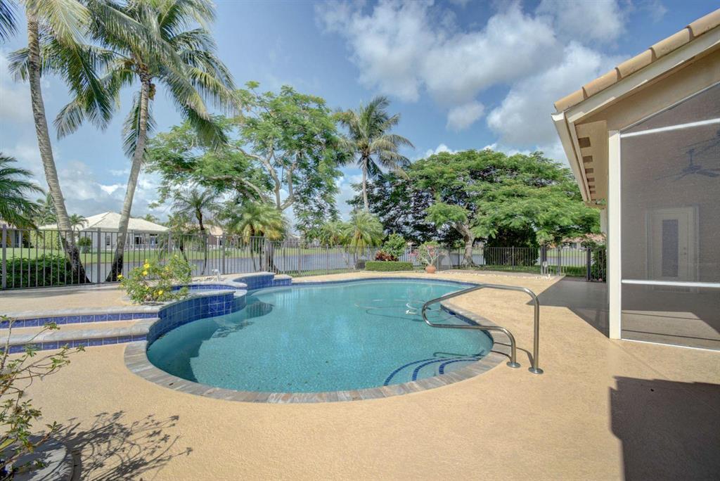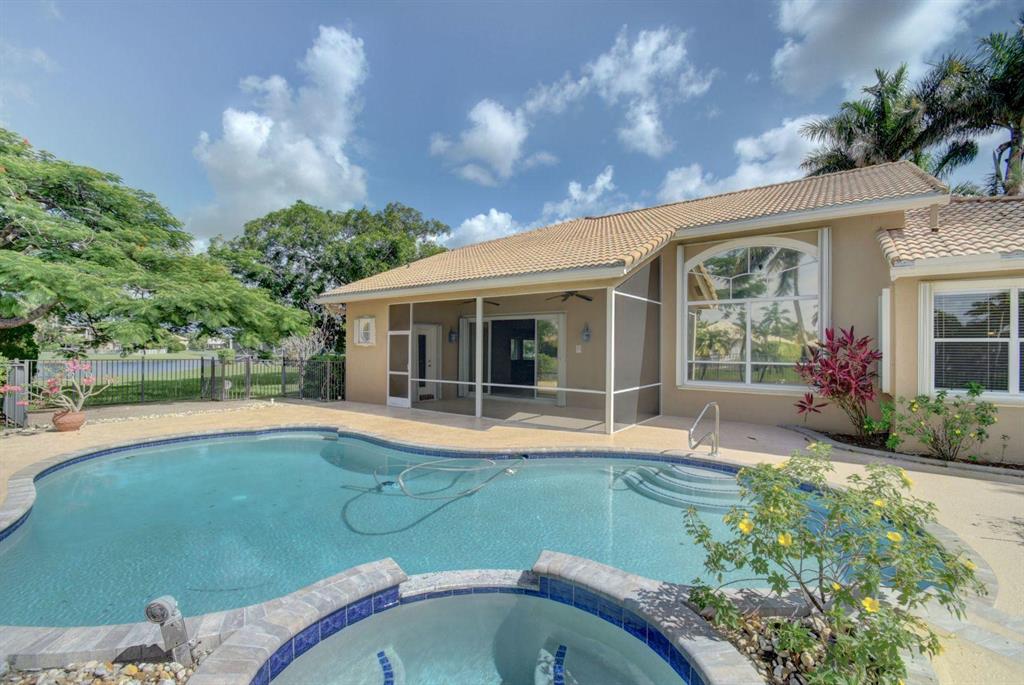 Beautiful estate home with three car garage at the end of a cul-de-sac in the gated community of Boca Falls! Enormous waterfront lot has breathtaking lake views, fenced in yard, heated pool with waterfall Jacuzzi, and a covered screened in patio. The master is on the ground floor, and it has a large en-suite with two vanities, a roman tub, and a separate walk-in shower. The second bedroom, on ground floor, can be used as office space. Home has a full cabana bathroom and another half-bathroom downstairs. Upstairs has three bedrooms with two full bathrooms. There are two A/C units, and accordion hurricane shutters. Enjoy the open concept and natural light. ''A'' rated schools, and community amenities include a fitness center, basketball, tennis, and more! Home is close to South County Park!