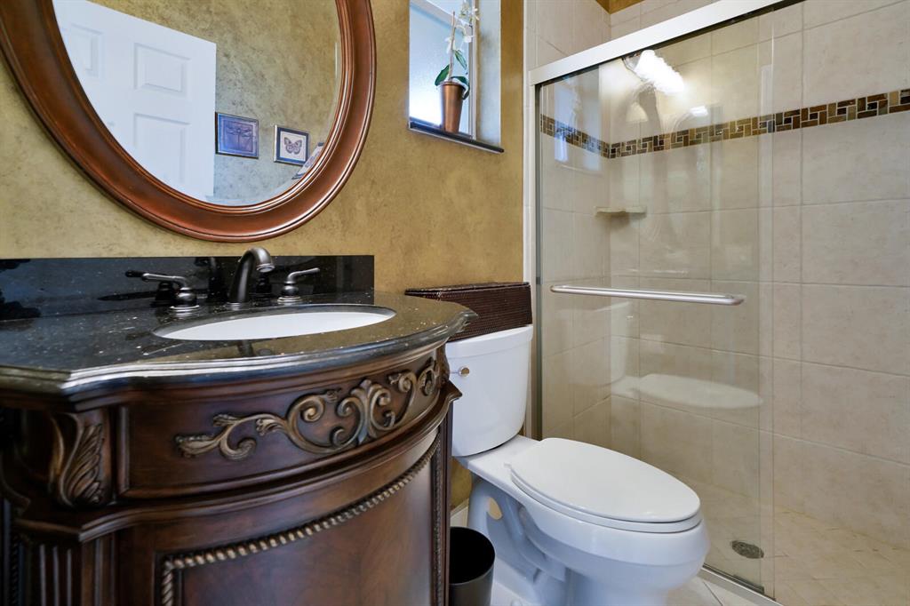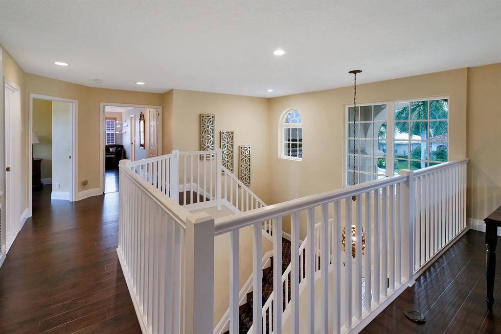 LOCATION, LOCATION, LOCATION! Rare and immaculate Aruba model within Mystic Bay, Boca Falls! This beautiful home boast 5 bedrooms, three bathrooms, loft, three car garage with a travertine marble deck, heated free-form pool and spa with salt chlorination and automation along with an expansive lake view on one of the best lots in Boca Falls! The interior has been tastefully remodeled with porcelain floors throughout the ground floor with wood flooring on the staircase and entire second floor including bedrooms. The kitchen has upgraded wood cabinetry, quartz counters with marble back-splash, oversized center island and seating within the bay window area. Remodeled bathrooms (ground floor bath has wood cabinetry, granite counter and frameless glass shower door;