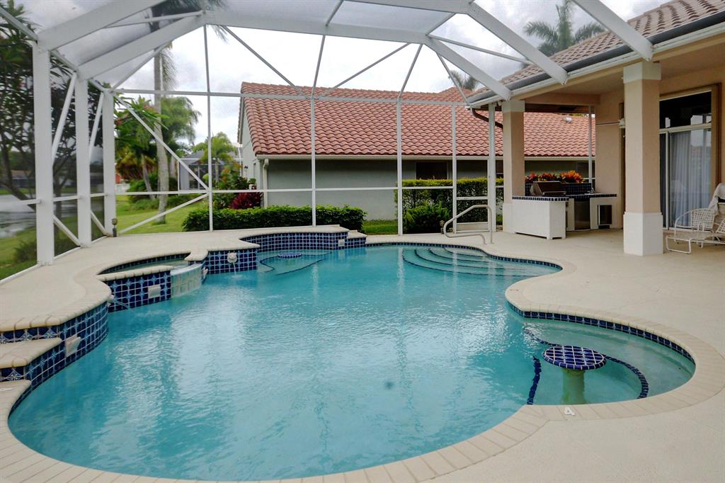 Beautifully maintained Grand Cayman model one expansive lake lot. Totally renovated kitchen with stainless steel Bosch appliances. Full summer kitchen with running water, fridge and built in grill. Fourth bedroom used as an office den. Full hurricane protection. Great location, schools and community clubhouse with tennis, fitness center and heated pool. HOA fee includes cable and internet package.