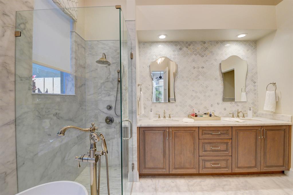 Welcome to one of the very few COMPLETELY REMODELED homes in the award-winning club of Broken Sound - it will take your breath away! Step into this bright unit with high ceilings, tons of natural light, and the most gorgeous contemporary kitchen! Complete with quartz countertops, fabulous waterfall breakfast bar, oversized stainless sink, custom tile backsplash, and double ovens, the kitchen opens up to the entire living area. Beautiful large 24'' cream marble floors in the main living areas guide you to the incredibly impressive master bedroom. Luxury awaits with 2 fitted walk-in closets, wood floors, master bathroom with free standing marble tub, frameless shower, marble bathroom floors, and