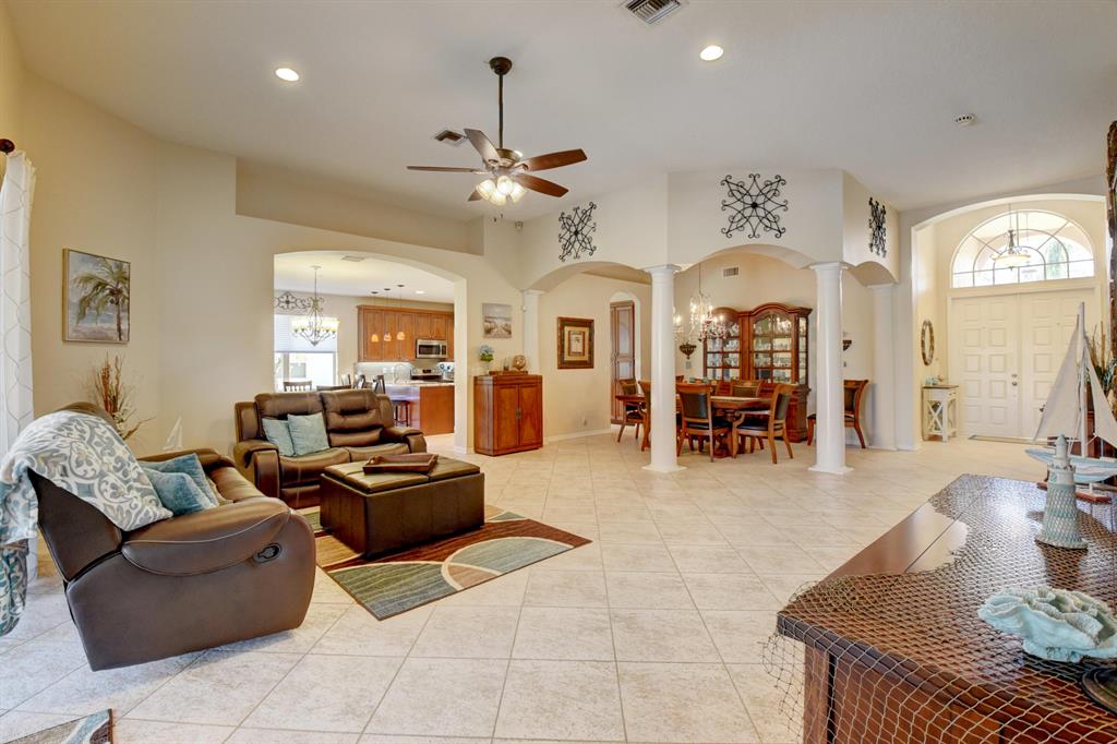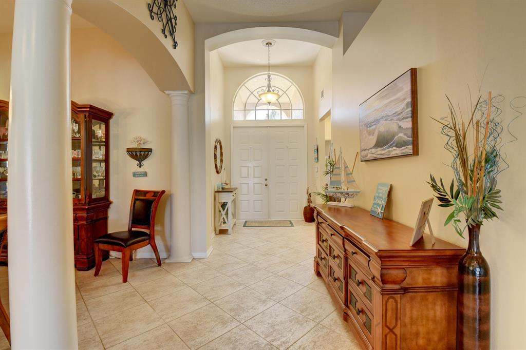 Lakefront, updated and move in ready! This sprawling ranch offers 4 bedrooms with a 3 way split adding extra privacy and No Stairs! Remodeled kitchen with raised panel wood cabinets, beautiful granite offers counter seating and stainless appliances just a few years old. Neutral stone look tile throughout the living area. Interior laundry room with newer front load washer and dryer. Luxurious master bath was gutted and redesigned offering Marble flooring and frameless shower,doors. Upscale wood cabinets and granite with 2 sinks, a separate charming make up vanity and a water closet for toilet. Also built in closets for organization. AC unit 2016 Enjoy spectacular sunsets from the oversized screened in patio. Lots of storge in attic,storm shuttersand 3 car garge. Recently painted in and out