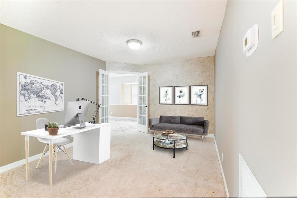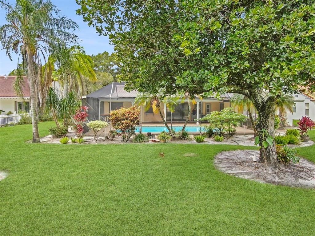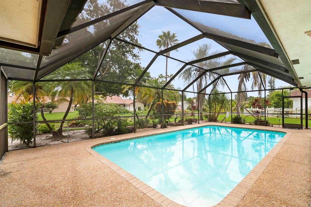 Peace and tranquility abound in this tropical oasis with 4 bedrooms and 2 baths water front home with NO HOA. Entertain in style with a living room, dining area and a patio. The dream kitchen features tiled backsplash, a double oven, center island and a breakfast nook. The main retreat boasts a slider to the patio, a walk in closet, double sinks, soaking tub and a walk-in shower. Enjoy your own tropical paradise in the large private yard with a covered patio, a screen enclosed pool and a serene lake view. Neutral flooring, vaulted ceilings, high hat lighting and an abundance of natural light are just a few of many highlights in this stunning home. Located close to shopping, dining, entertainment, schools and major highways.