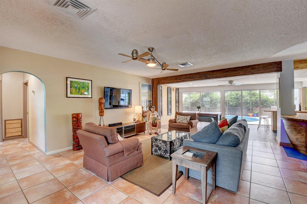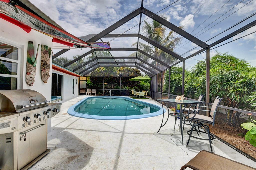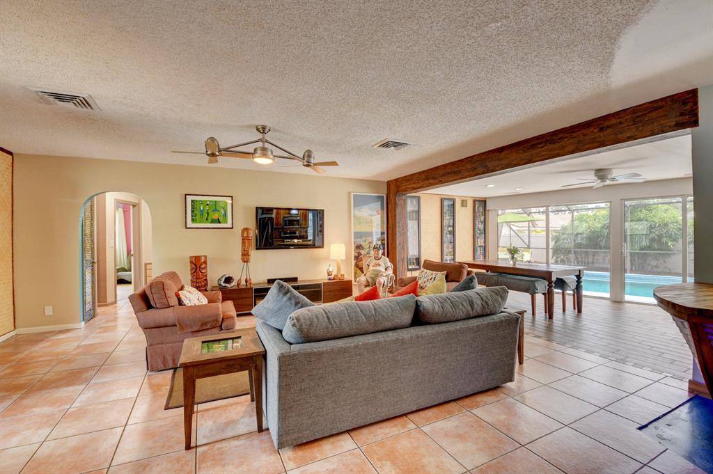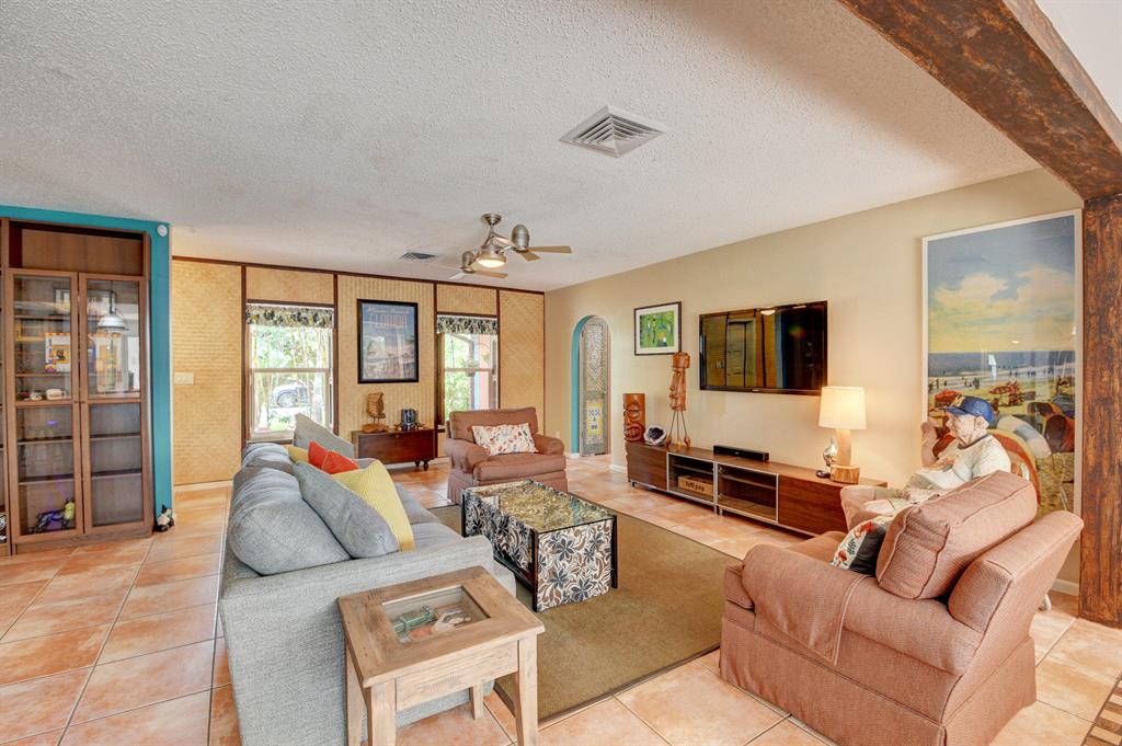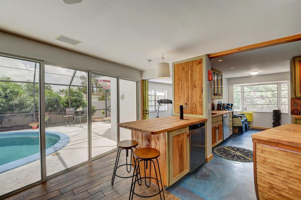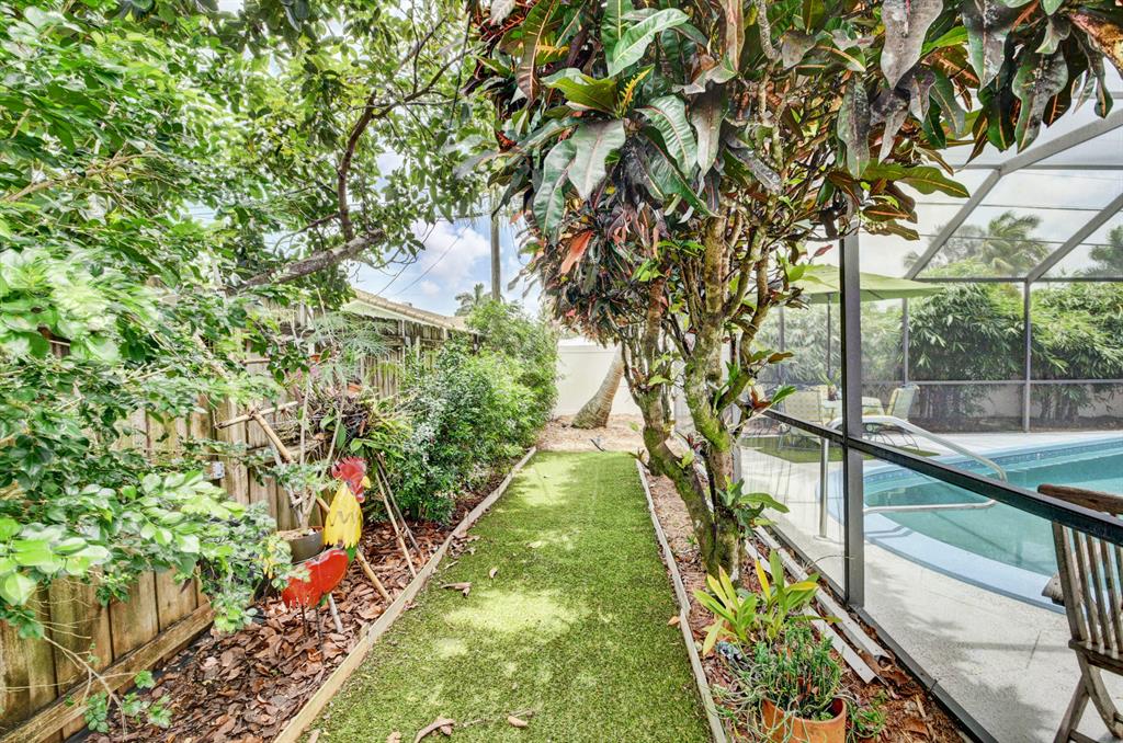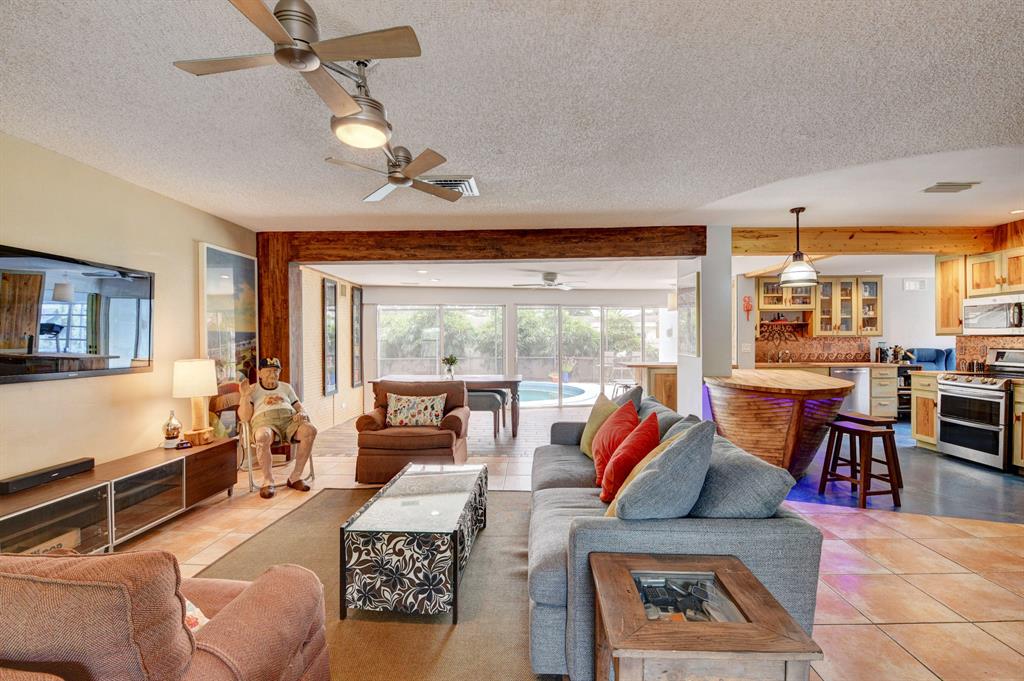 Enjoy the tropical tiki life in this one of a kind 2/2 plus den, 2 car garage, pool home. Features include impact windows, 1 yr old AC, large laundry room, LED lighting, tankless hot water, custom built kitchen including an island made in the shape of a bow of a boat and mozaic backsplash made from pennies. Both bathrooms have been updated. Minutes away from Town Center Shops and easy access to I-95 in the quiet neighborhood of Paradise Palms.