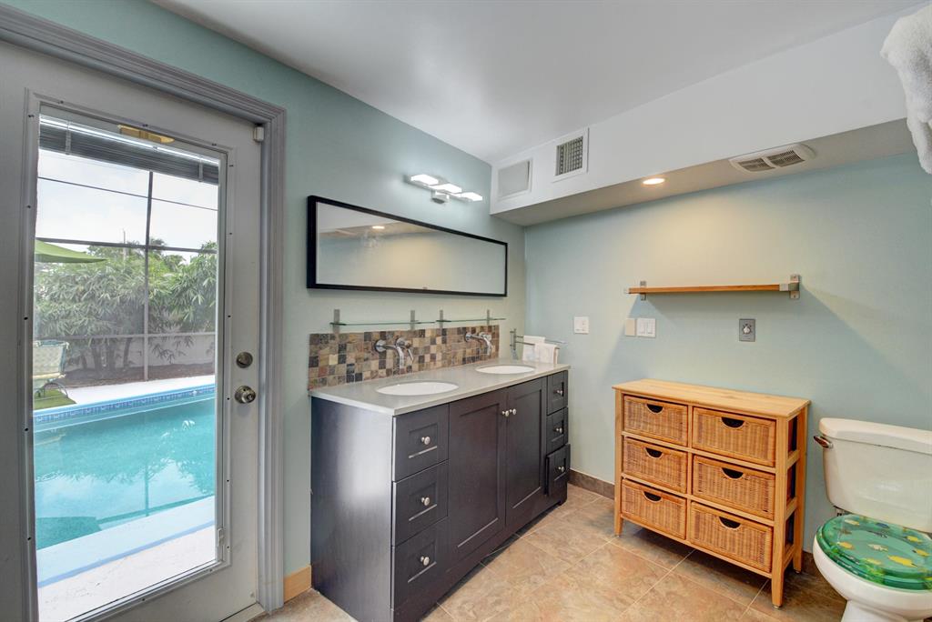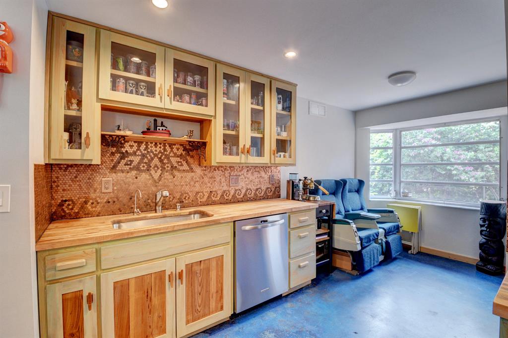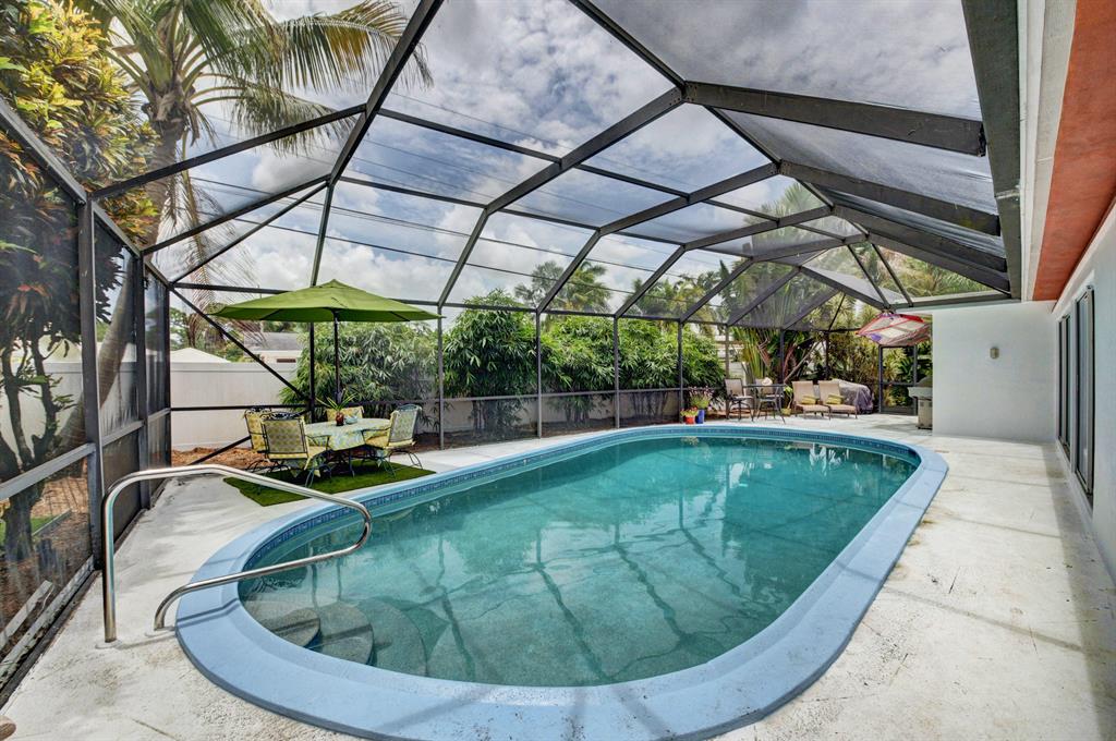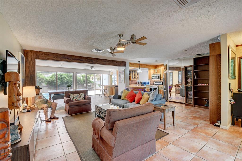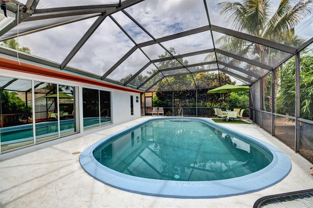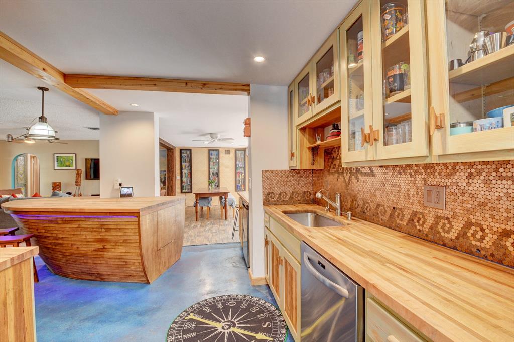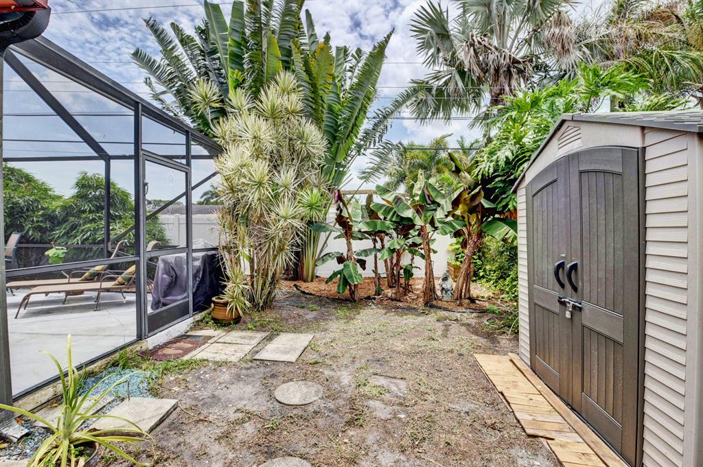 Enjoy the tropical tiki life in this one of a kind 2/2 plus den, 2 car garage, pool home. Features include impact windows, 1 yr old AC, large laundry room, LED lighting, tankless hot water, custom built kitchen including an island made in the shape of a bow of a boat and mozaic backsplash made from pennies. Both bathrooms have been updated. Minutes away from Town Center Shops and easy access to I-95 in the quiet neighborhood of Paradise Palms.