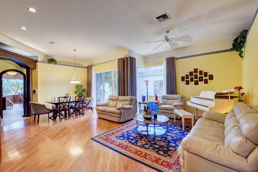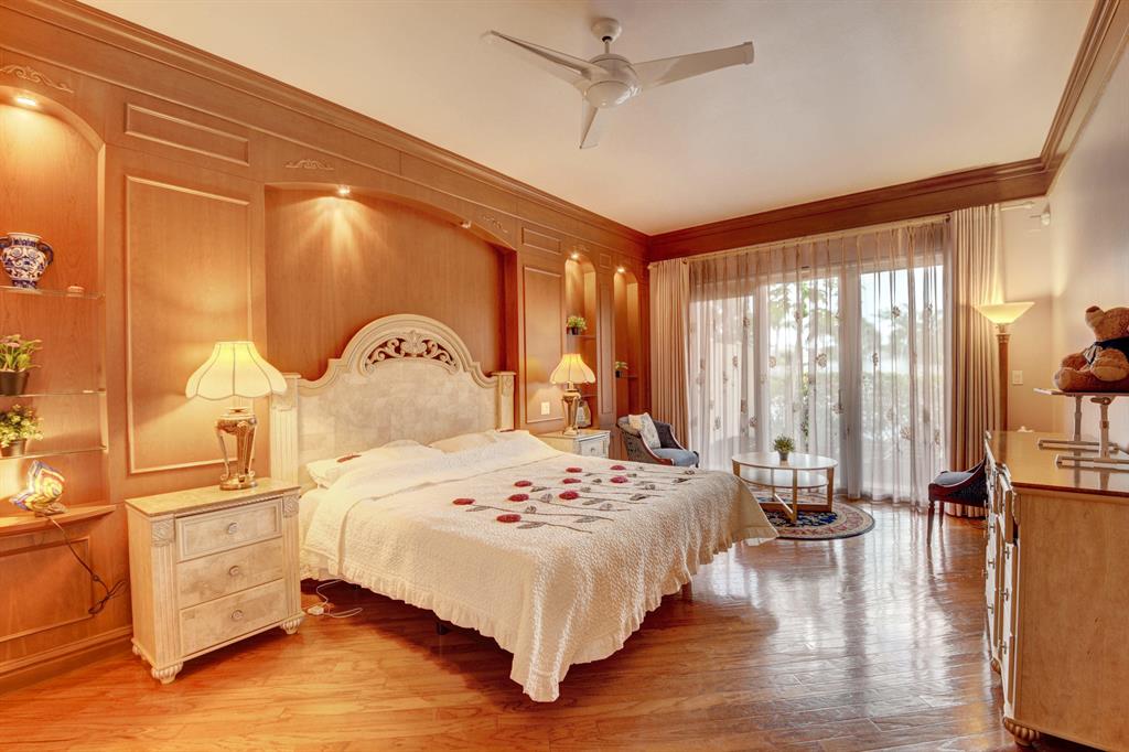 RARE OPPORTUNITY SENSATIONAL AND SOPHISTICATED 3 BEDROOM 2 BATH TOTALLY UPGRADED THROUGHOUT. THIS GORGEOUS WATERFRONT PROPERTY AFFORDS THE MOST BREATHTAKING LAKE VIEWS IN ALL OF OXFORD ESTATES. STAINED GLASS, MAHOGANY DOORS, CUSTOM COLUMNS AND CROWN MOLDINGS TELL YOU THIS HOME IS TRULY SPECIAL. GENUINE HIGH QUALITY HARDWOOD FLOORING, MAHOGANY CUSTOM BUILT-INS, TRAYED CEILINGS AND CUSTOM STONE/MOSAIC INLAYS PLEASE THE EYE. GOURMET KITCHEN WITH FLOOR TO CEILING CABINETRY AND APPLIANCES. MASTER BEDROOM BOASTS CUSTOM FULL WALL MAHOGANY BUILT-IN WITH LIGHTING. SPA/TUB AND ROSEWOOD CABINETRY IN MASTER BATH.THE FAMILY ROOM AFFORDS WALLS OF GLASS AND SPECTACULAR LAKE VIEWS. REAR PATIO W BUILT-IN BBQ. METICULOUSLY MAINTAINED, FURNITURE NEGOTIABLELONG LAKE VIEW WITH OUTDOOR SHOWER. EXTERIOR SECU