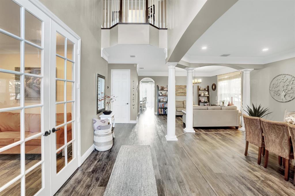 Luxury waterfront residence with 4 bedrooms, 3 baths, a loft on premium cul-de-sac lot within gated community. Culinary enthusiasts will fall in love with this dream kitchen with new dazzling quartz countertops, new tile backsplash, newly finished sparkling white cabinetry, updated stainless steel appliances. Over 3,400 square feet of gorgeous living space, this residence boasts a stunning long lake view. This home's grand entrance features a formal foyer opening up to a vast great room with volume ceilings and open concept floor plan. The serene master bedroom serves as a sanctuary, added with enormous walk-in closet, deluxe master bath showcasing dual-sink vanity, large soaking tub, superb glass-enclosed shower. SEE SUPPLEMENT.