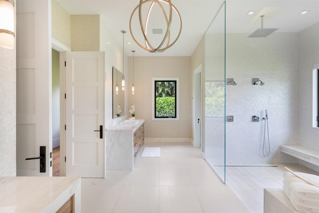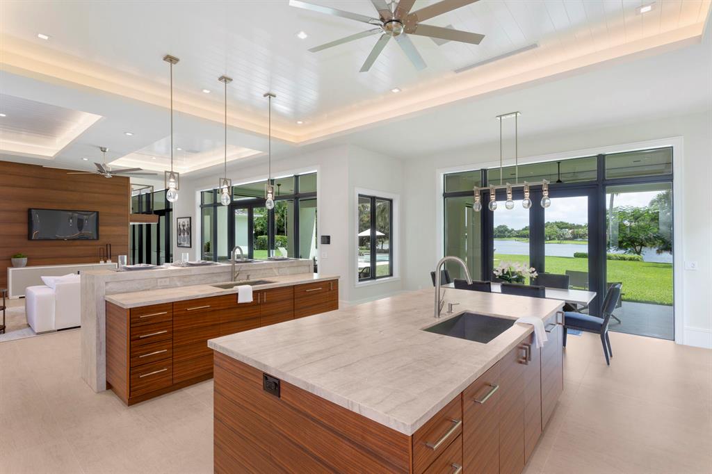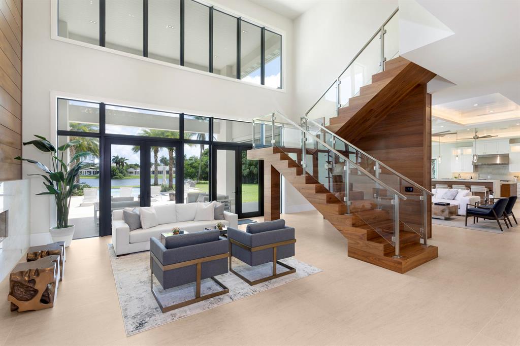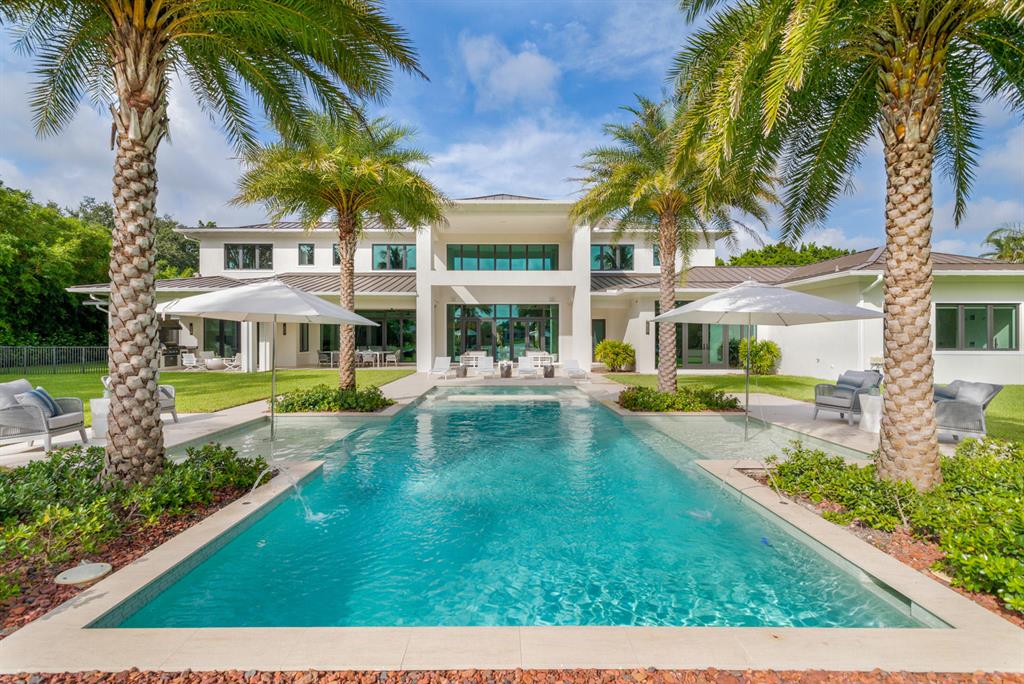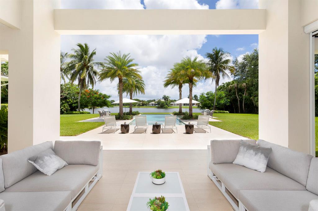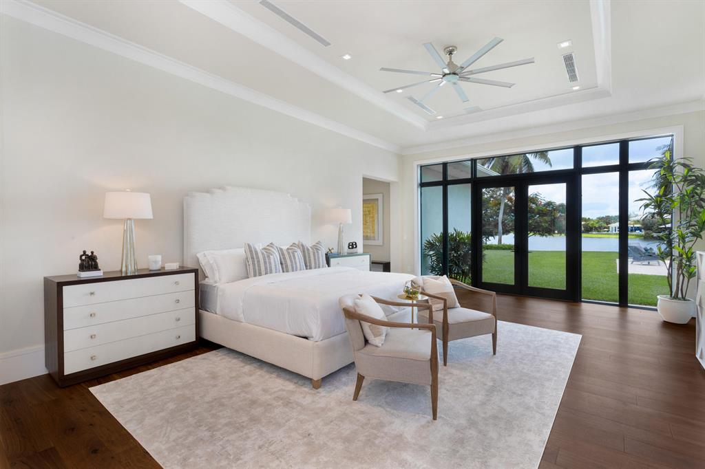 On manicured one-acre-plus grounds with an expansive lawn and towering mature trees, this custom new residence, perched on the shores of Twin Lake, features balconies overlooking garden and water views as well as a large loggia with a summer kitchen and barbecue. A spa-like pool, set within a stone patio, incorporates two sun shelves, fountain sprays, and a whirlpool spa.