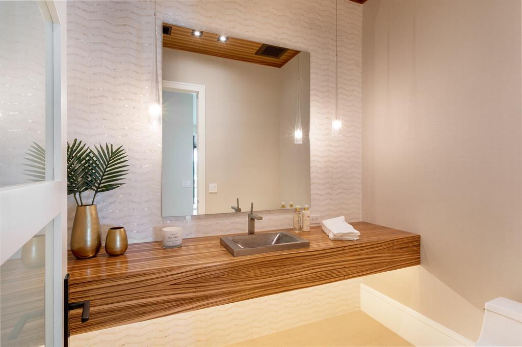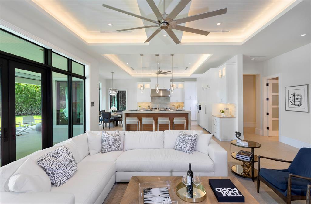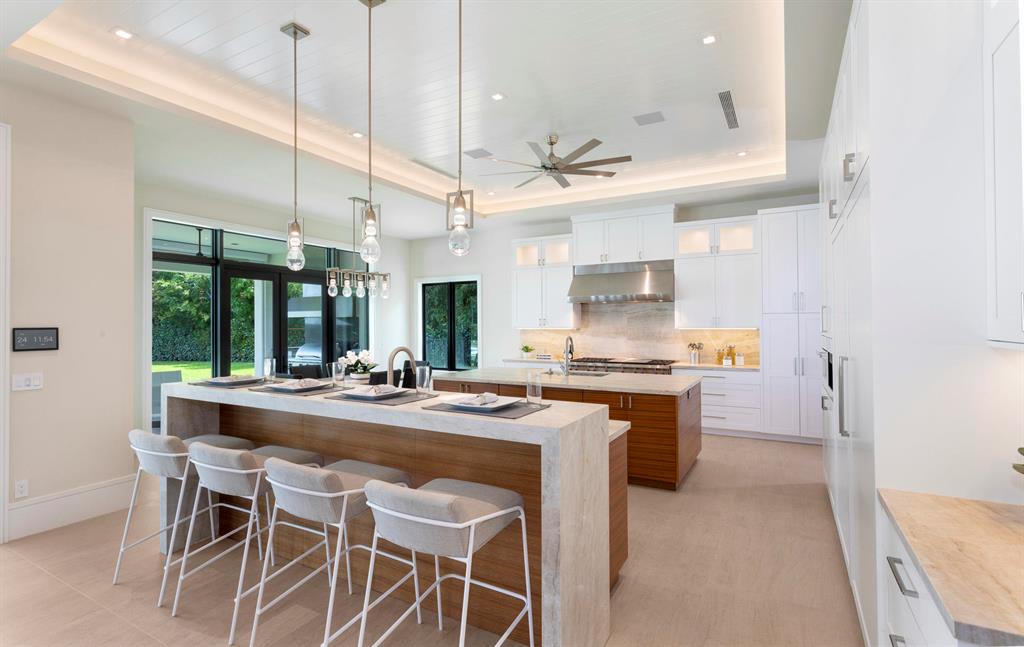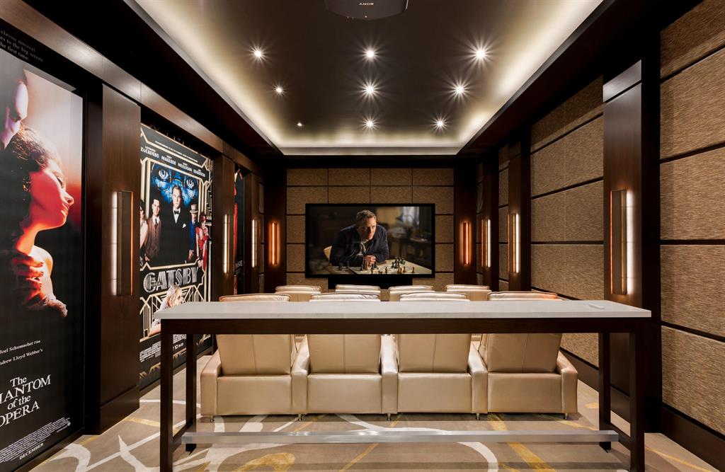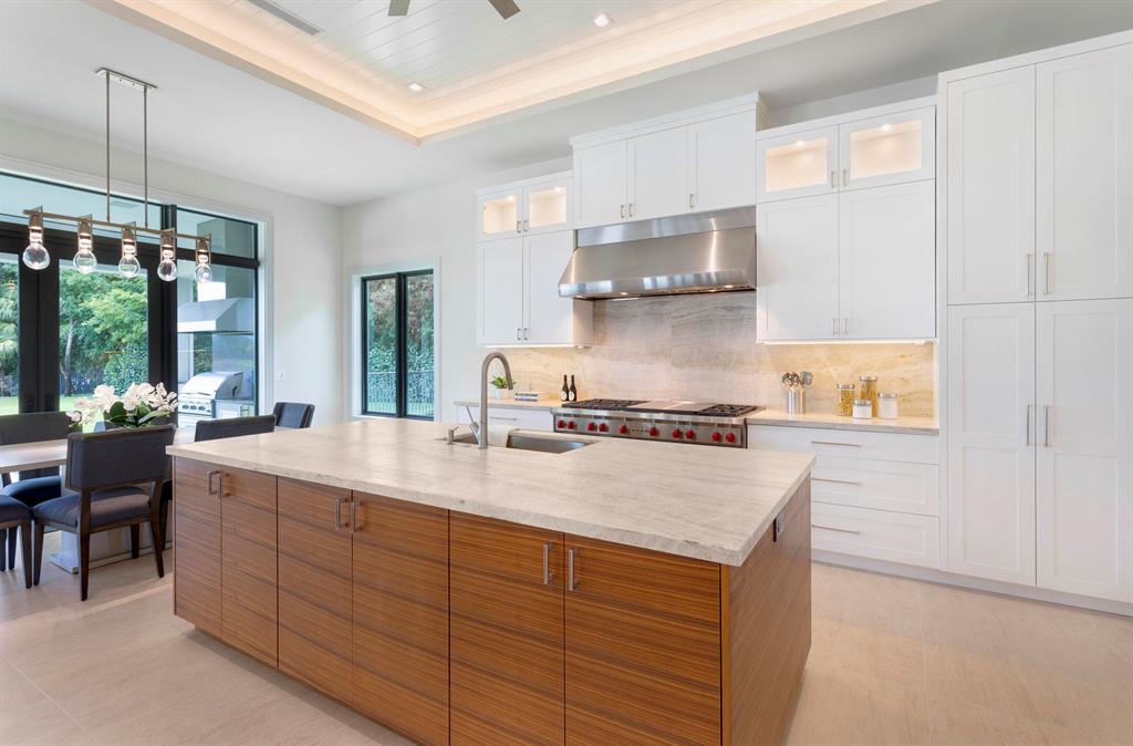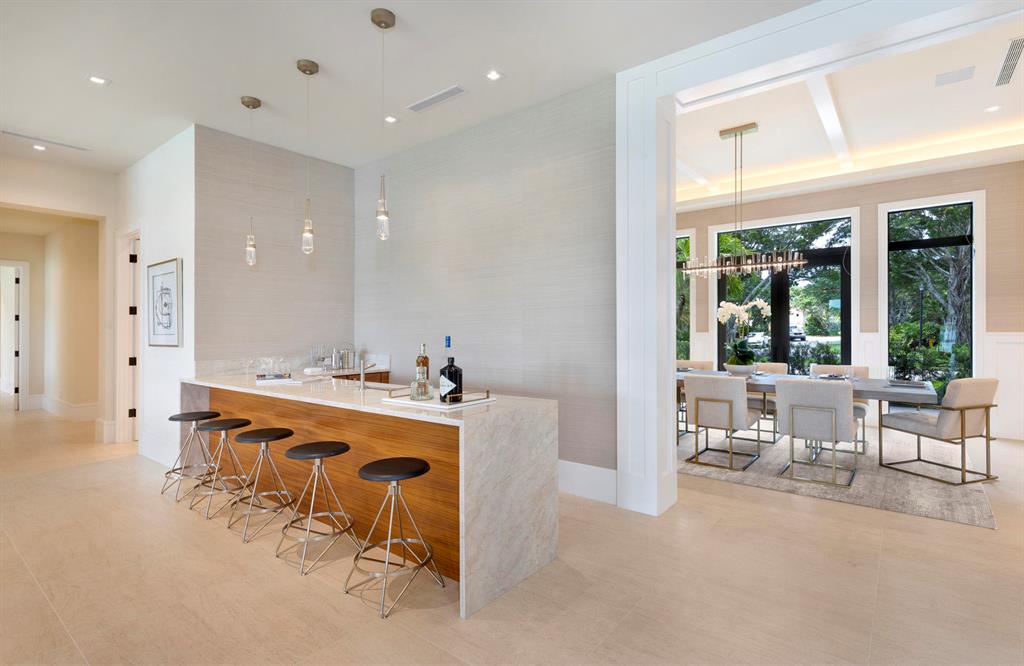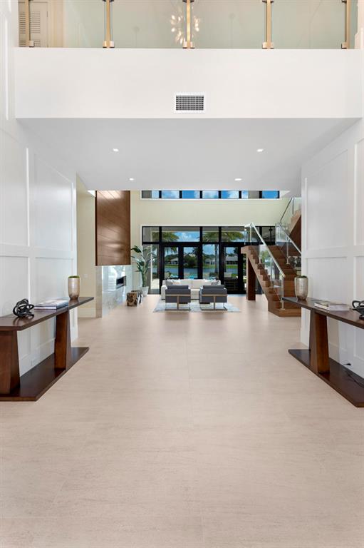 On manicured one-acre-plus grounds with an expansive lawn and towering mature trees, this custom new residence, perched on the shores of Twin Lake, features balconies overlooking garden and water views as well as a large loggia with a summer kitchen and barbecue. A spa-like pool, set within a stone patio, incorporates two sun shelves, fountain sprays, and a whirlpool spa.