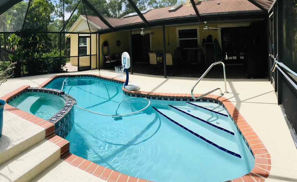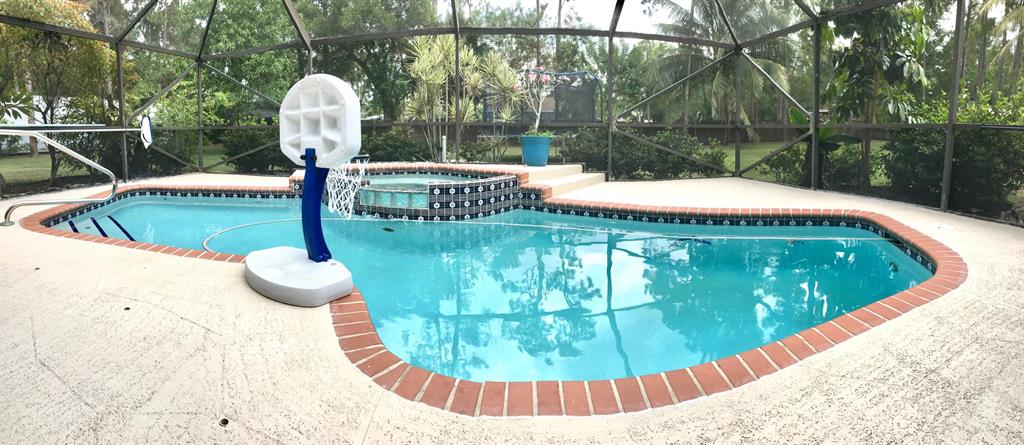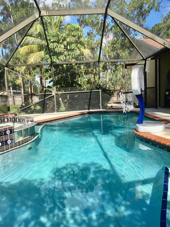 For the virtual tour please follow: https://video214.com/play/0nf1yfMYF5XXF0S0EpMHIg/s/darkSpacious with custom upgrades 4 bedroom 3 full bathrooms pool home in desirable acreage with plenty of land, on a quiet street with friendly neighbors! This one of the kind home features a screened patio with saltwater system pool and Jacuzzi fountain. Completely remodeled home with upgraded bathrooms, kitchen ( including granite countertops, wood cabinets & newer stainless steel appliances), porcelain floors throughout, fireplace, solar panel for water heating, with private entrance studio apartment (including separate bathroom and kitchenette), which many possibilities, hosting visitors through Airbnb, or short-term rent during the equestrian season. The studio suit offers hurricane impact glass,