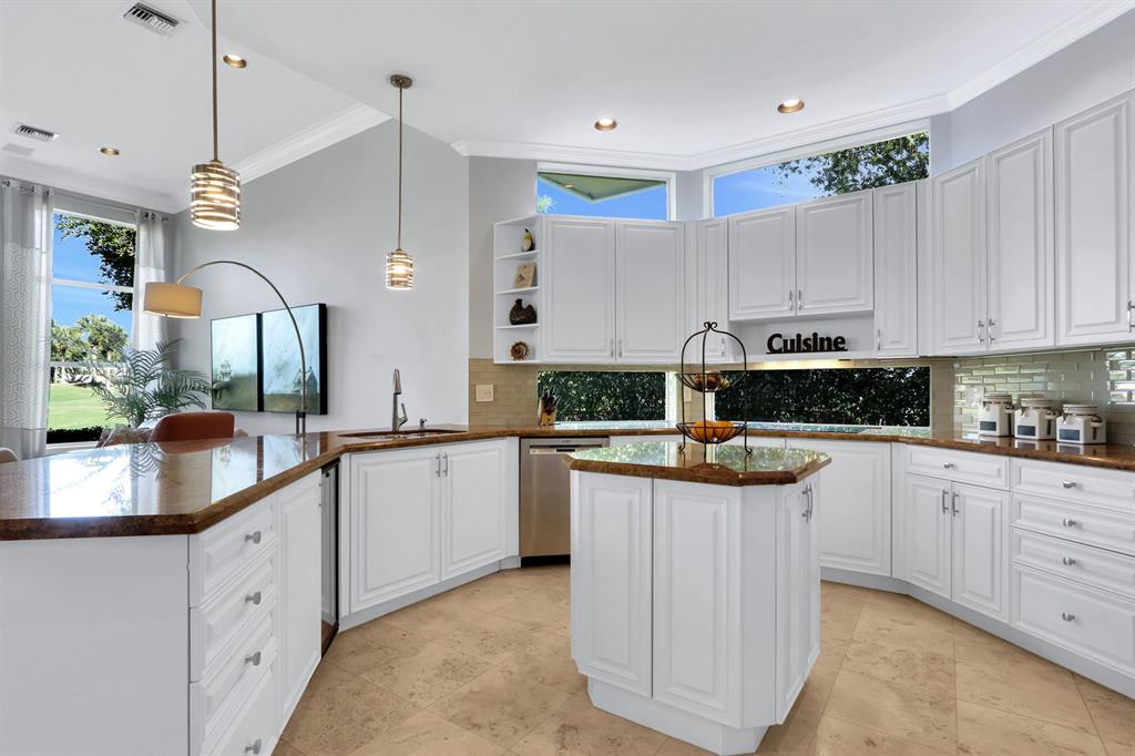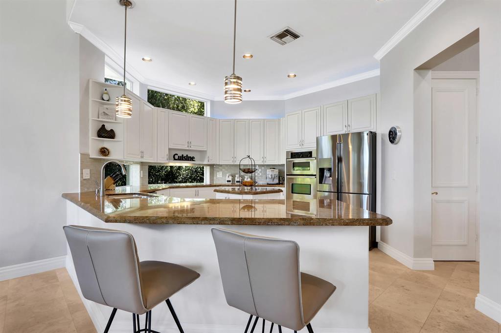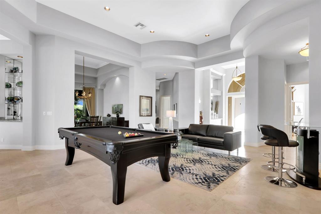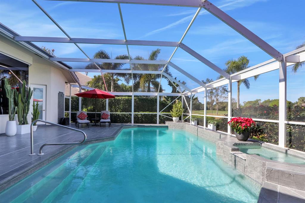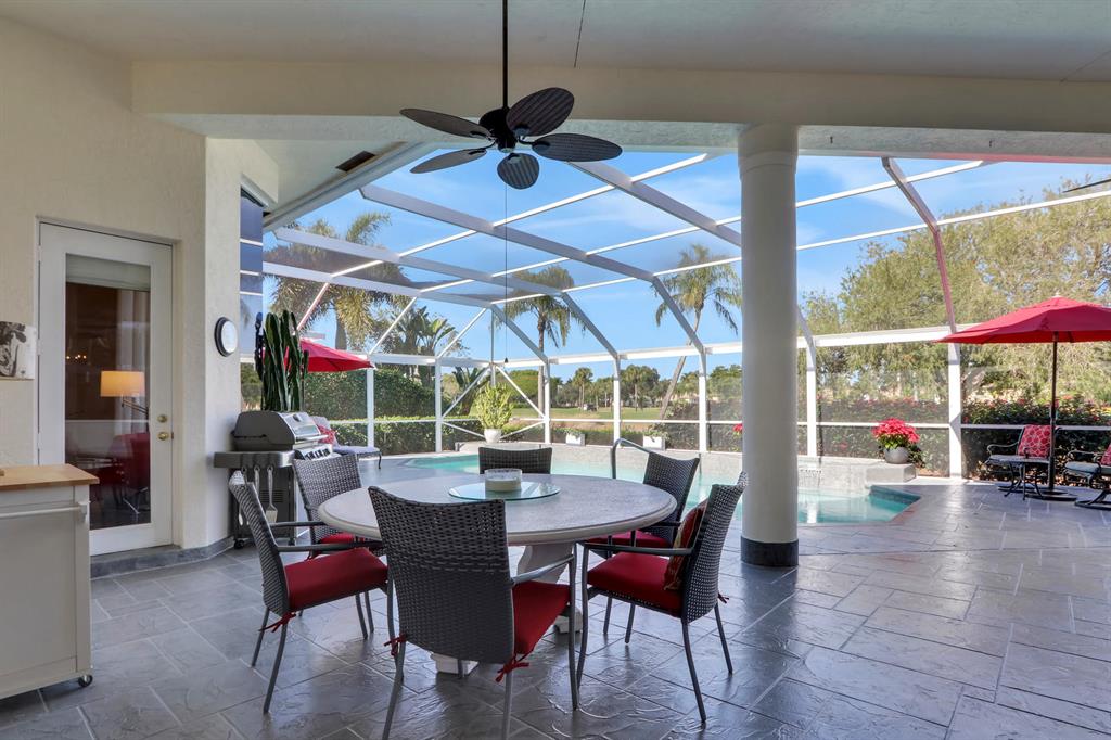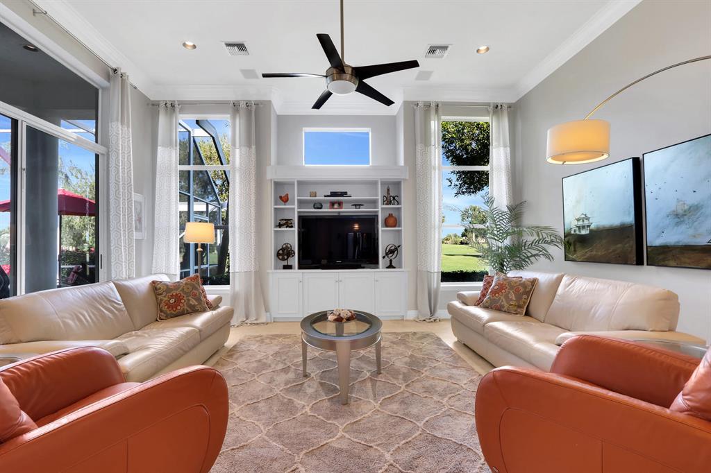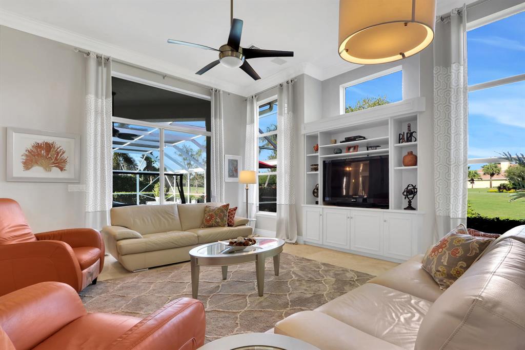 Fabulous former builder's model with incredible bones, over-sized rooms and generous upgrades. This 3BR/4.5 BA + Den (which could easily be a fourth bedroom.) Enjoy marble floors in the main areas and wood floors in the bedrooms. The large screened pool and spa features great entertaining space as well as a cabana bath. There is a side yard, perfect for a dog run, or garden.The living room features an impressive fireplace and excellent builder's craftsmanship is evidences in rounded corners, solid-core doors, and elegant moldings. Fabulous and wide sunset views of the Legend Course.