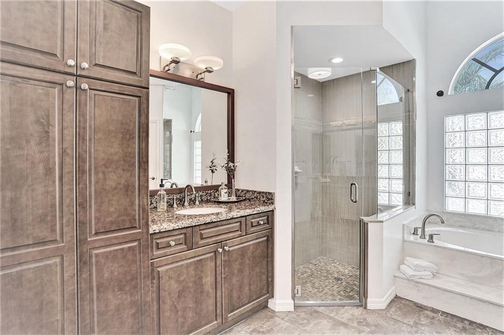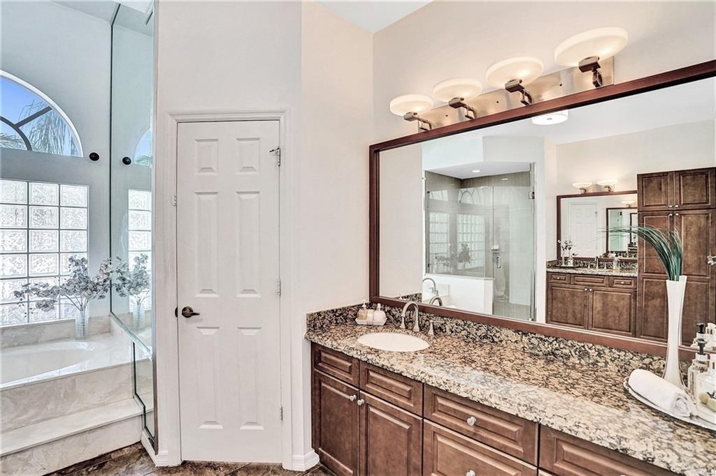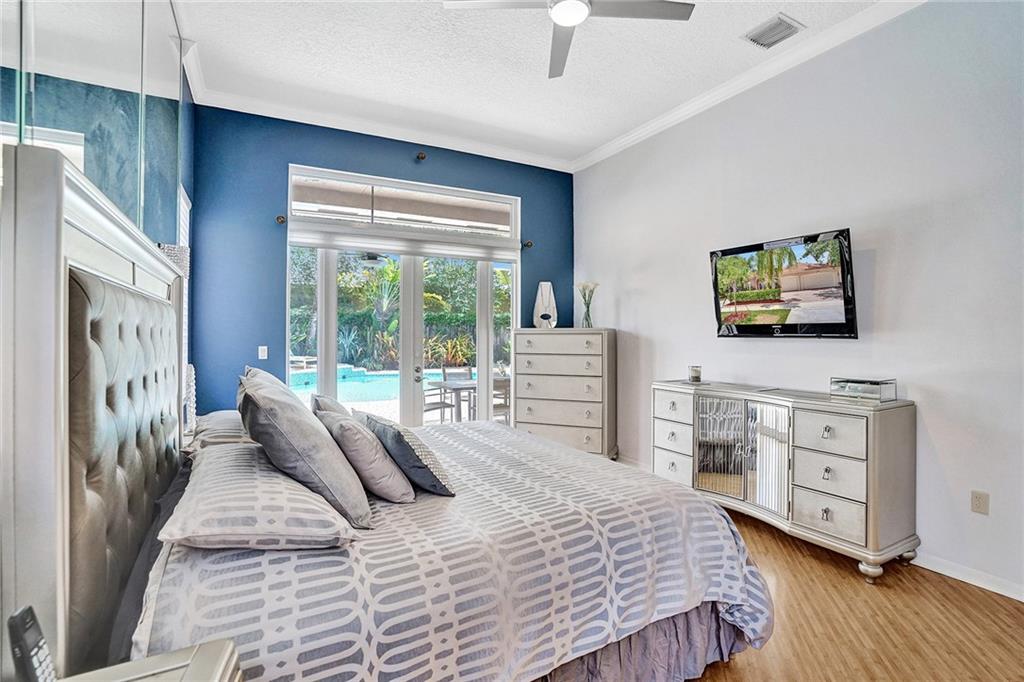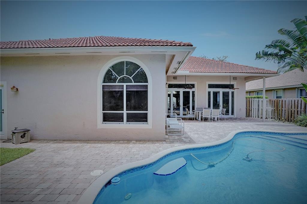 Stunning 4BD/3BA/3CG single story in prestigious guard-gated Pembroke Falls situated on oversized private fenced yard with HEATED POOL, raised sundeck, generous brick covered patio & plenty room to play! Light, bright Yale model w/WIDE BRICK CIRC DRIVEWAY, tropical landscape, spacious triple-split floorplan, volume ceilings, modern neutrals. All FRENCH DOORS & CABANA BATH door are IMPACT GLASS. Pool remodeled 2019, hot water heater 2018, AC 2yrs. Custom touches include modern chandeliers, custom mirror, crown molding, soft window treatments, silhouettes, WOOD LAM FLOORS in all bedrooms & much more! HOA incl basic cable/internet, treated water for lawn, monitored ADT alarm. Resort clubhouse w/state of art fitness center, tennis, pool & entertainment room. Welcome to the best of S. Florida!
