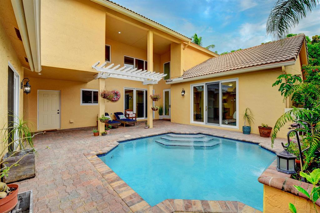 GORGEOUS FIVE BEDROOM COURTYARD POOL HOME WITH SOARING 18 FOOT CEILINGS, HIGHEST RATED IMPACT GLASS THROUGHOUT INCLUDING HURRICANE PROOF DOORS, AND TWO BRAND NEW LENNOX A/C'S. NEWER STAINLESS KITCHEN WITH NEWER GRANITE COUNTERTOPS, AND FRESHLY PAINTED THROUGHOUT (INTERIOR AND EXTERIOR.) BRAZILIAN CHERRY MASTER BEDROOM LEADS TO MARBLE MASTER BATH WITH DOUBLE VANITIES AND TWO WALK-IN MASTER CLOSETS. UPSTAIRS HAS THREE BEDROOMS WITH WATER RESISTANT BAMBOO FLOORING. COMES WITH VERY PRIVATE GUEST HOUSE WITH BED & BATH-PERFECT FOR A HOME OFFICE/GYM. BACK YARD IS A SPACIOUS TROPICAL OASIS THAT IS IN BLOOM YEAR-ROUND. PERFECT CENTRAL BOCA LOCATION IN CARRIAGE HOMES OF WOODFIELD HUNT CLUB WITH OPTIONAL BUT NOT MANDATORY COUTRY CLUB AVAILABLE AND NEARBY A-RATED SCHOOLS.